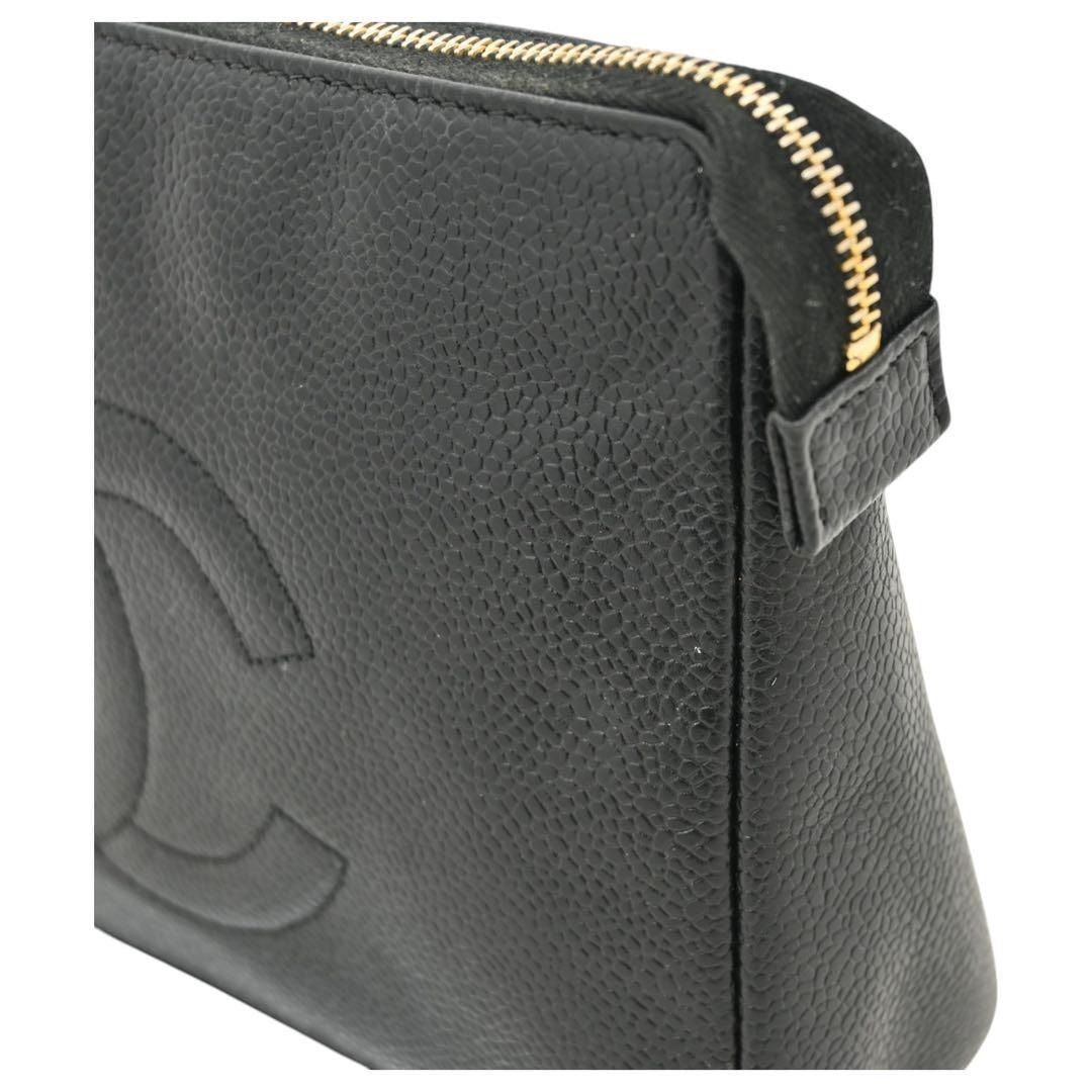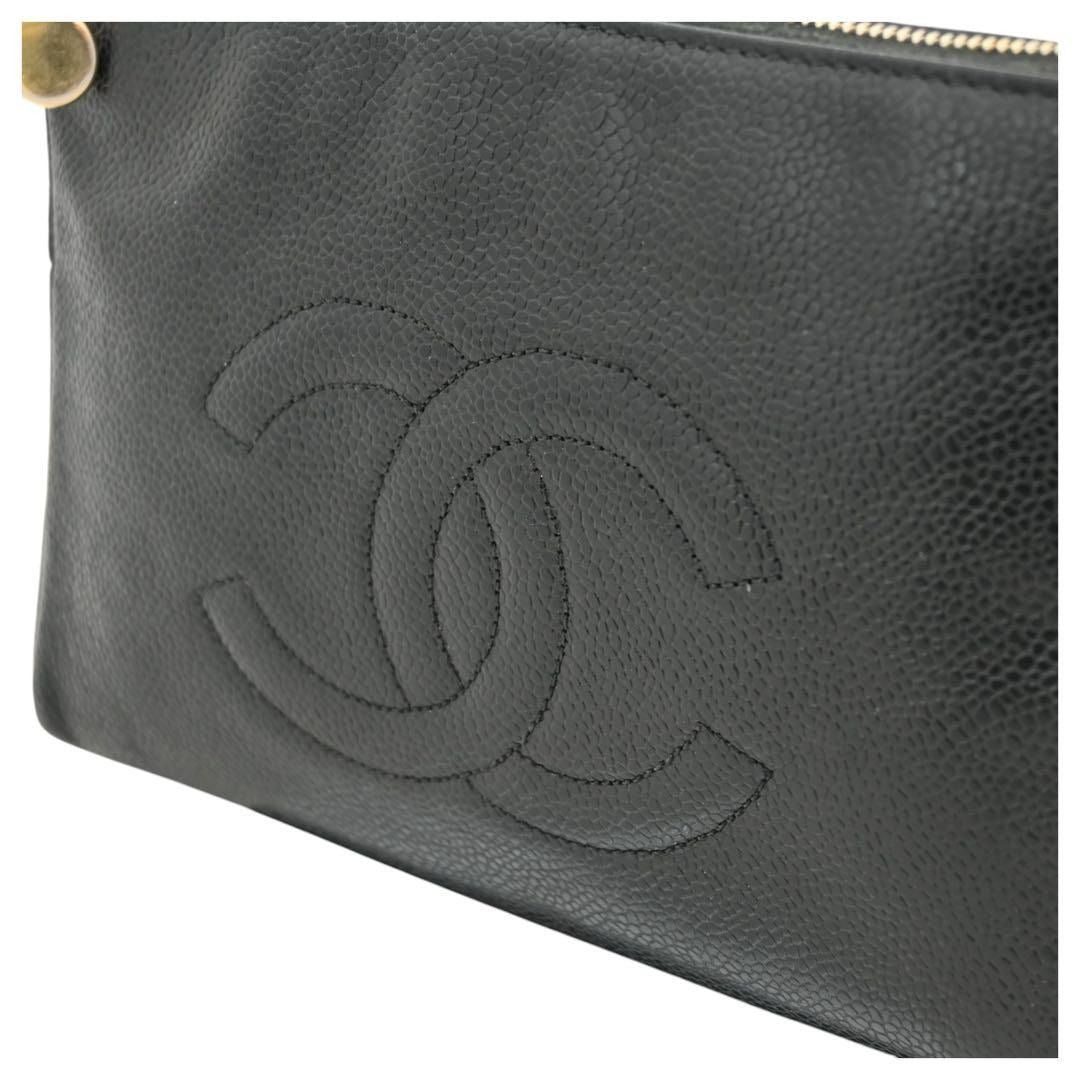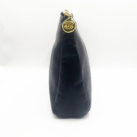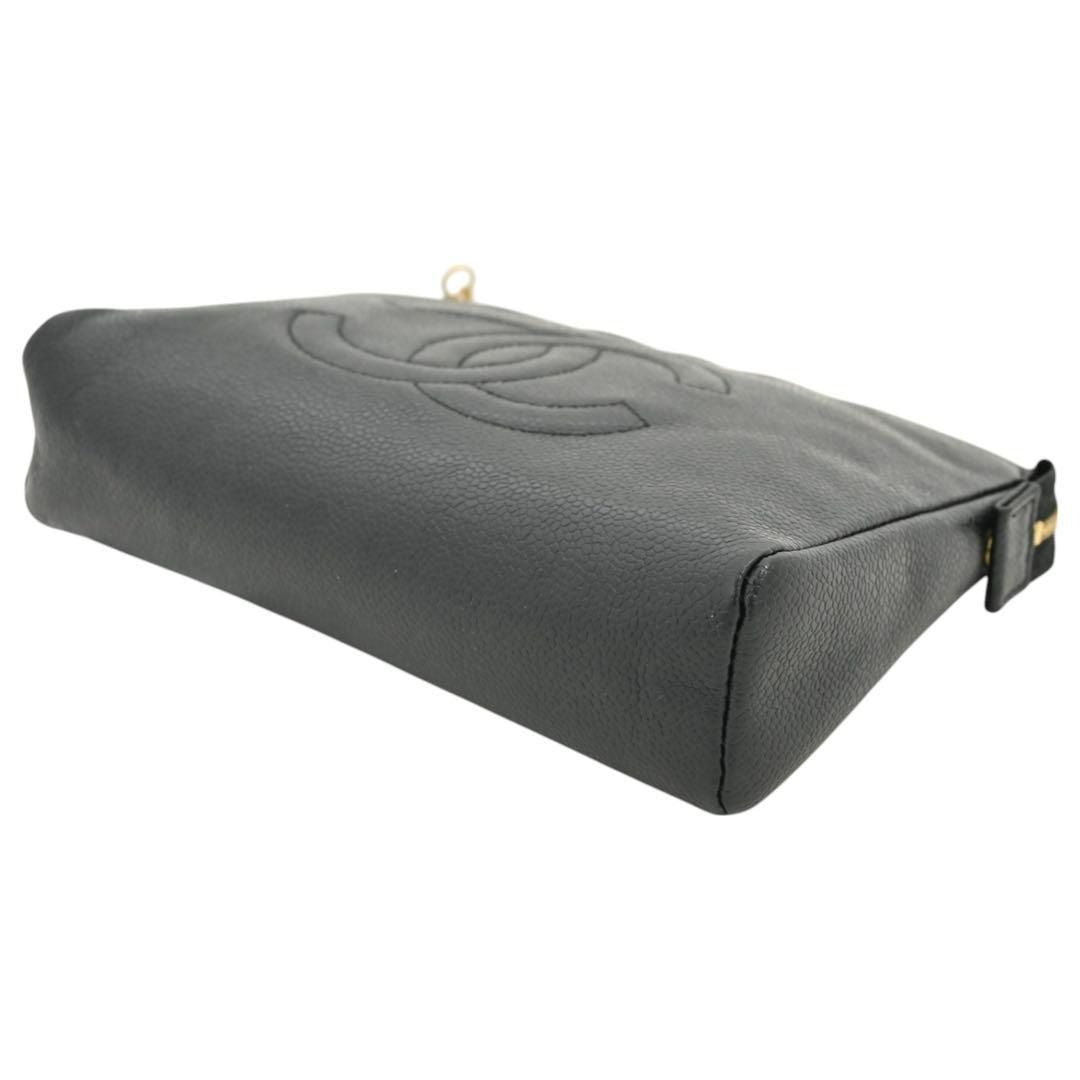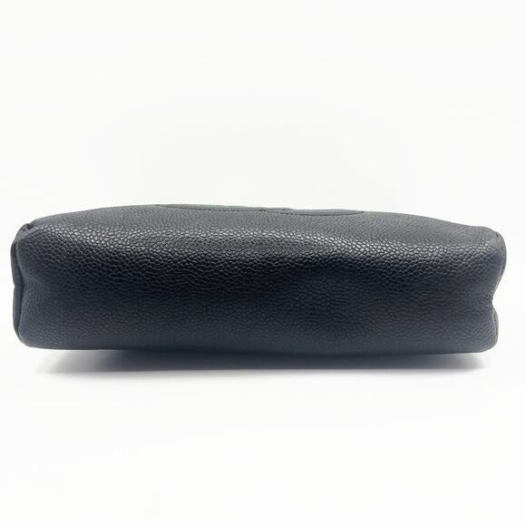 CHANEL CC Caviar Leather Clutch Vanity Cosmetic Makeup Pouch Black Bag