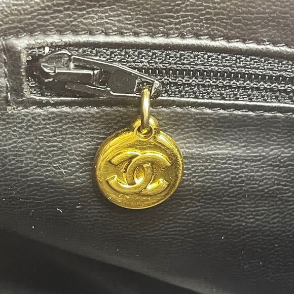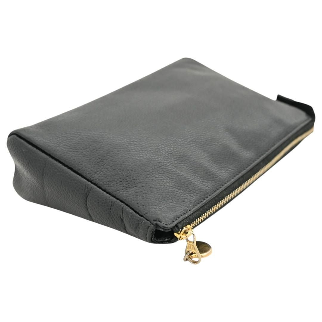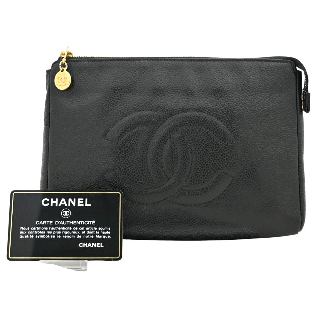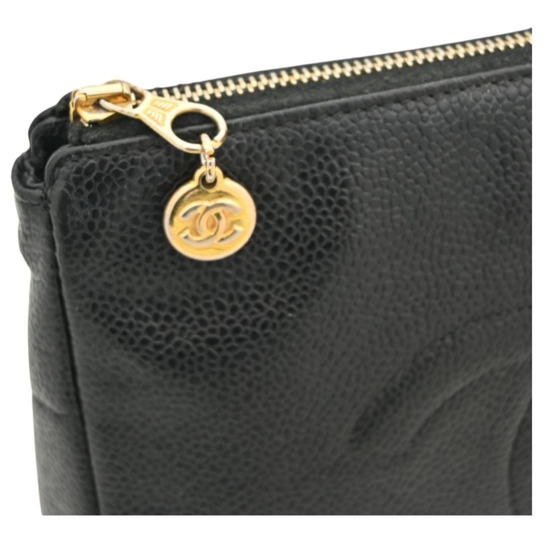CHANEL CC Caviar Leather Clutch Vanity Cosmetic Makeup Pouch Black Bag