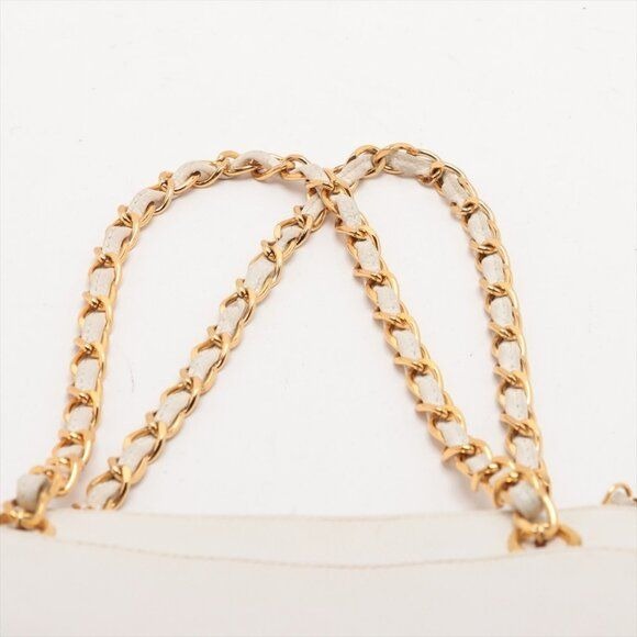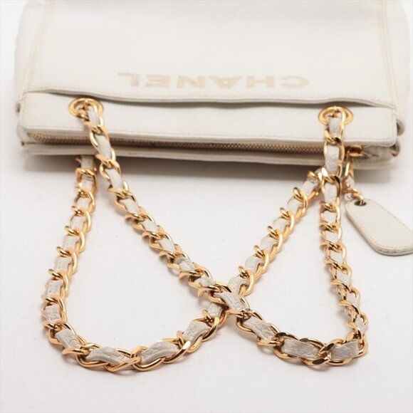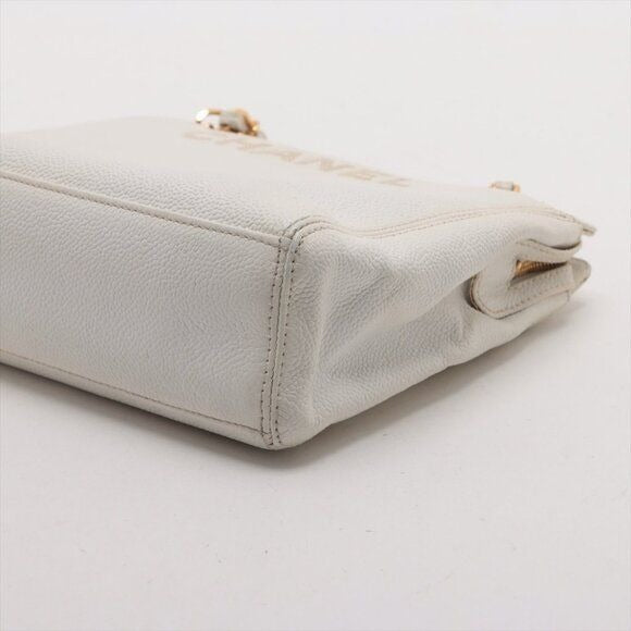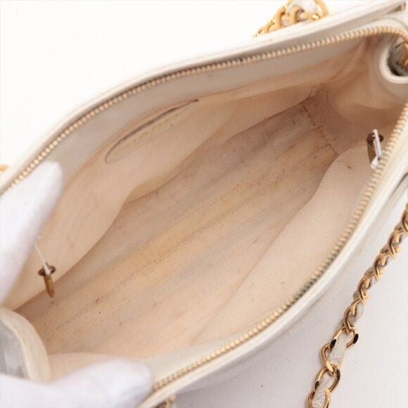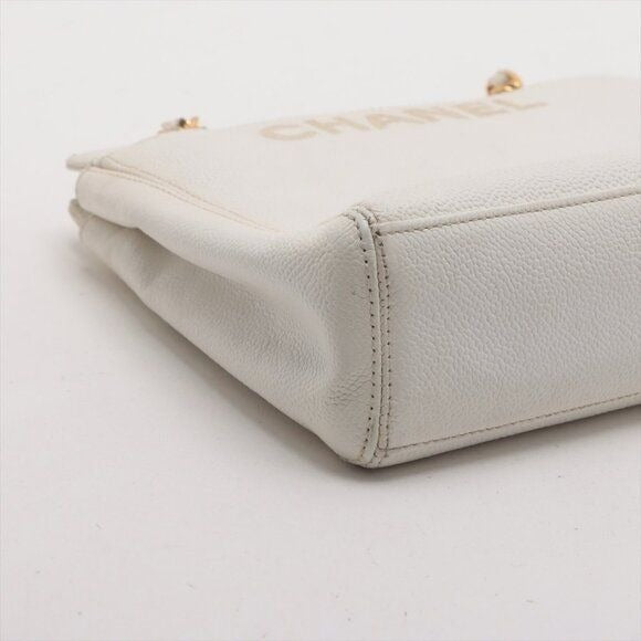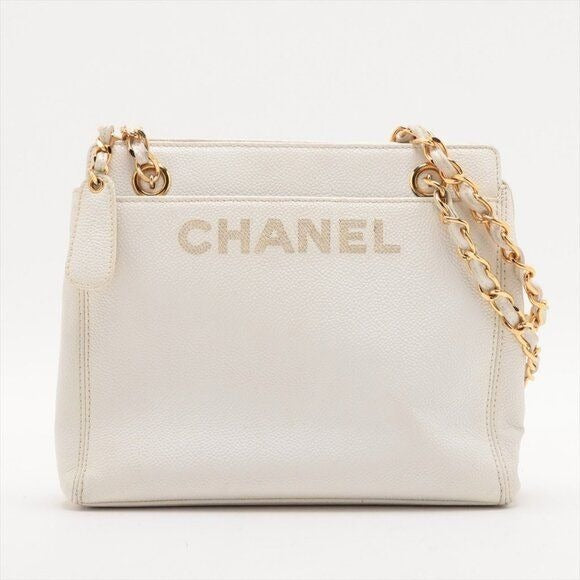 CHANEL CC Logo Tote Bag Caviar Leather Chain Shoulder Bag White Purse