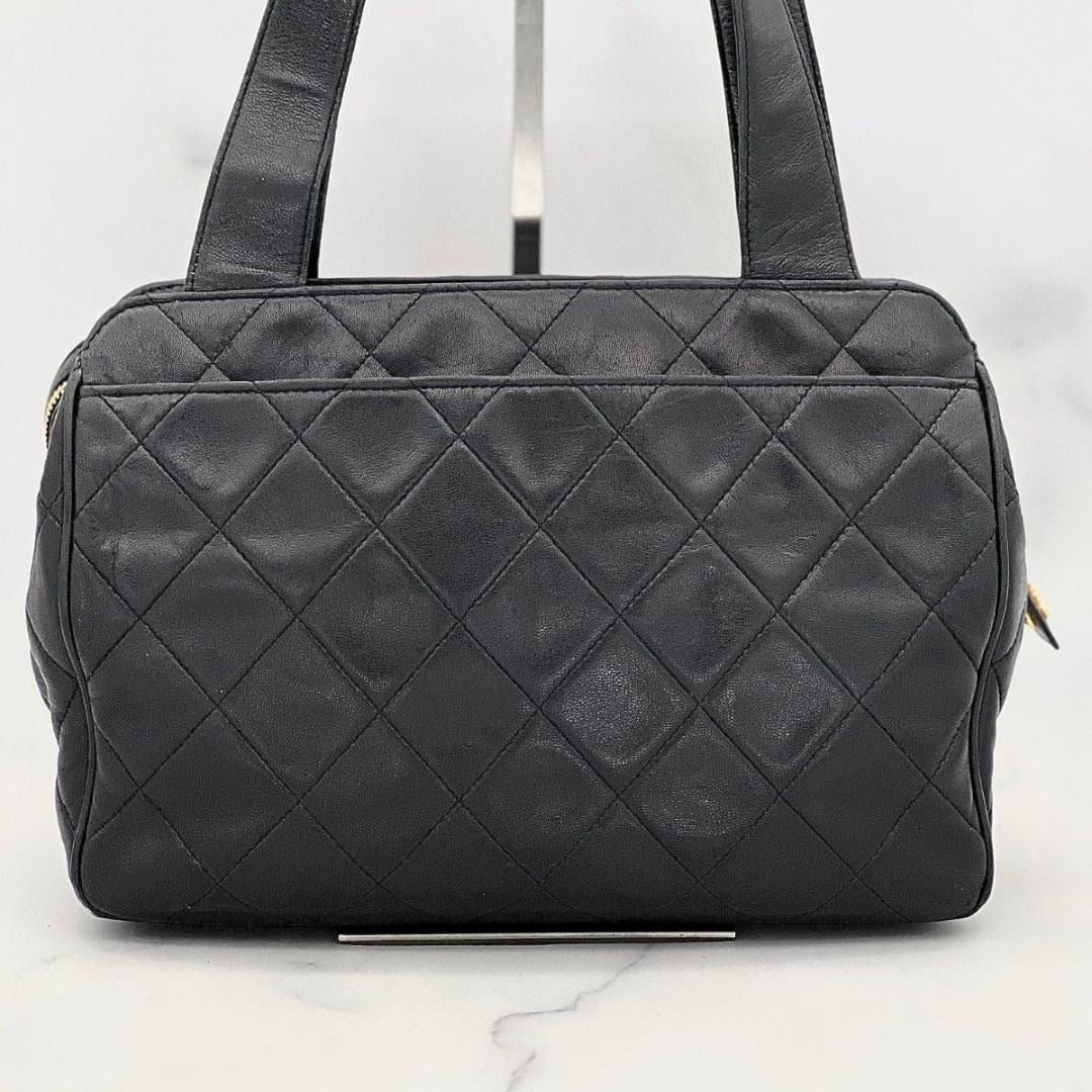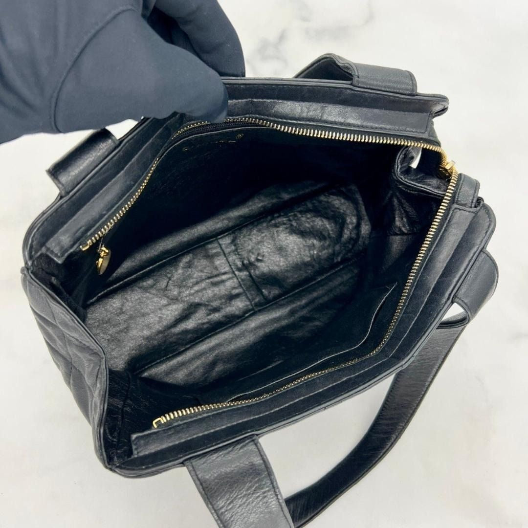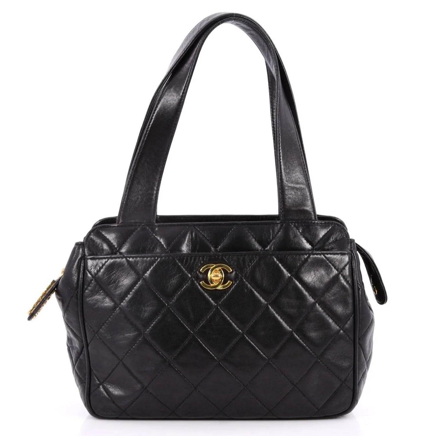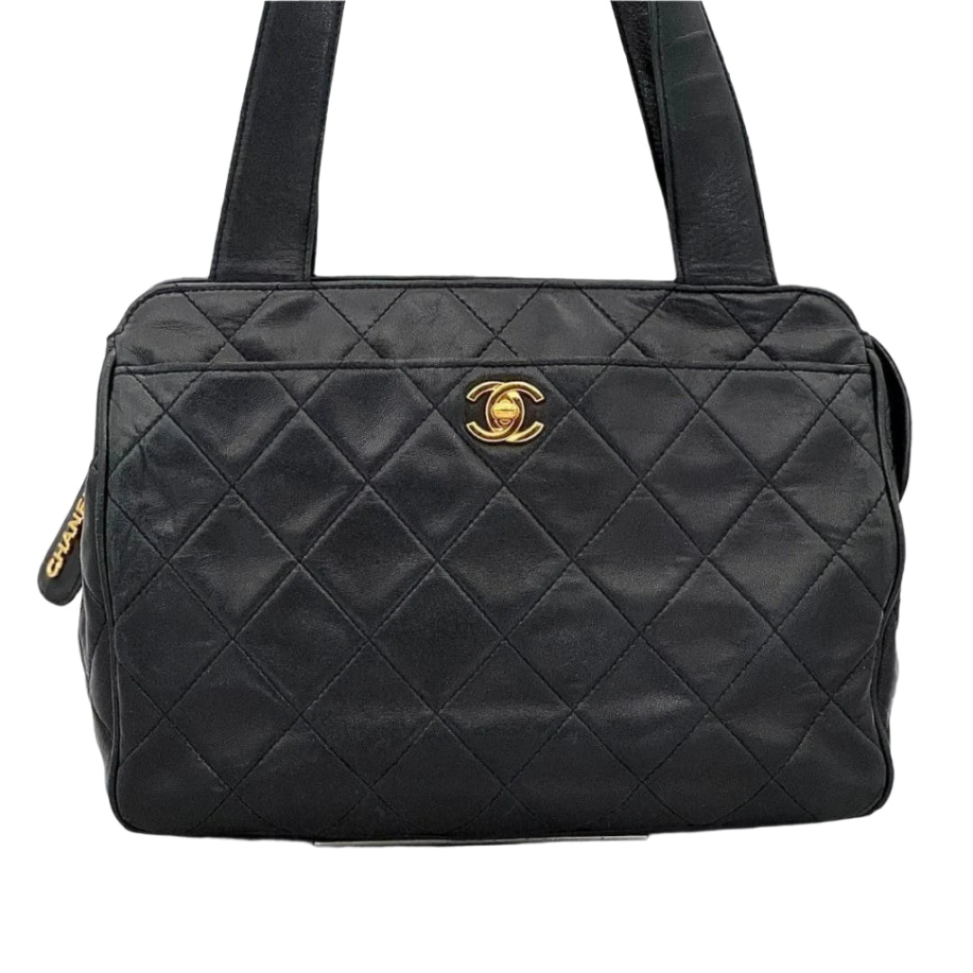 CHANEL CC Vintage Lambskin Black Gold Purse Bag Tote Chain Turnlock