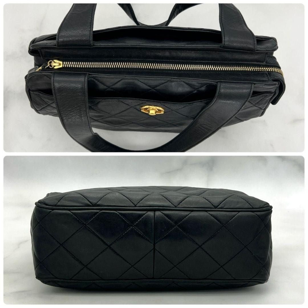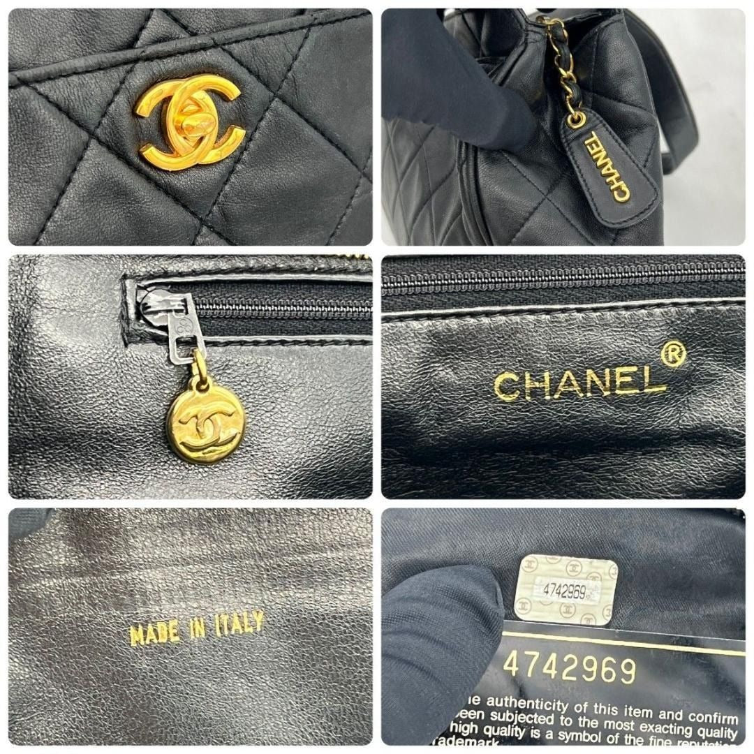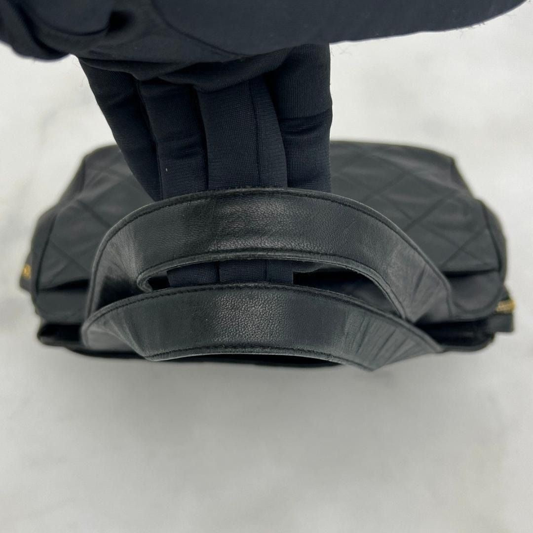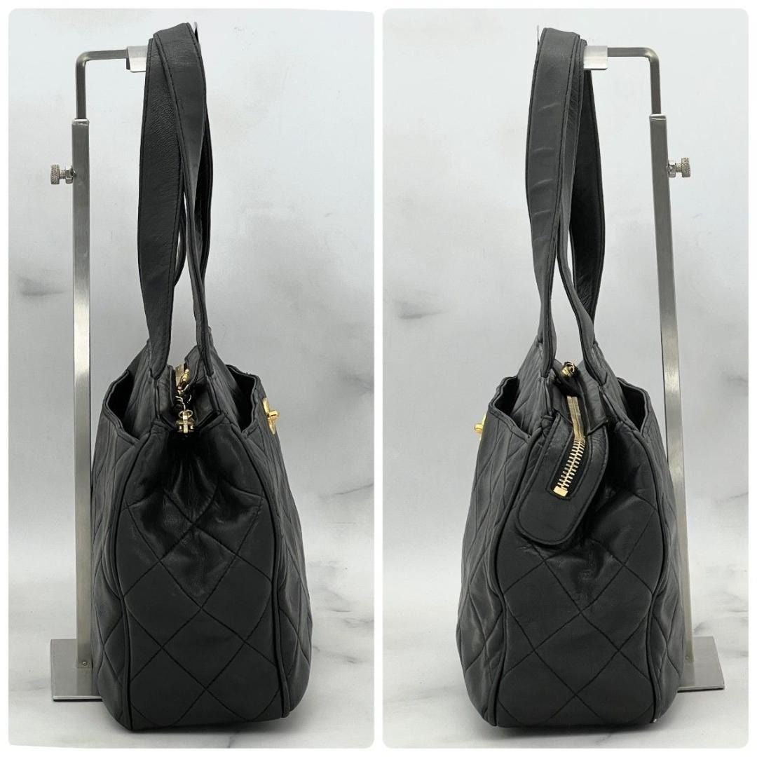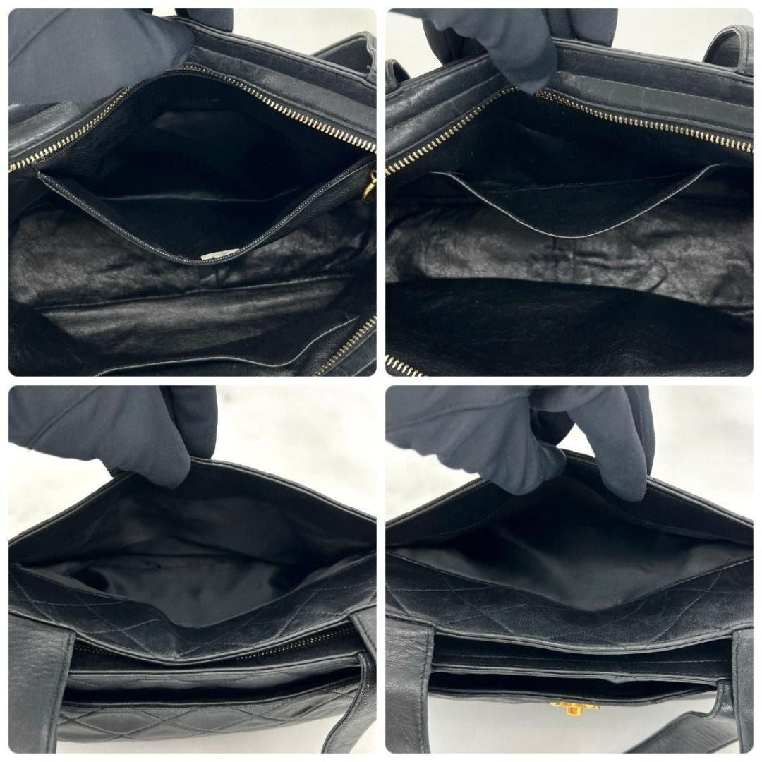 CHANEL CC Vintage Lambskin Black Gold Purse Bag Tote Chain Turnlock