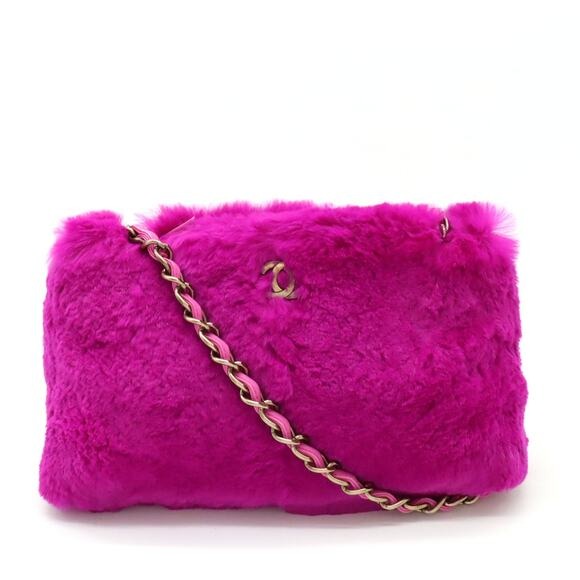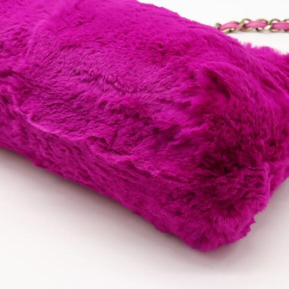 CHANEL CC Vintage Rabbit Fur Hot Pink Purse Chain Shoulder Bag Y2K