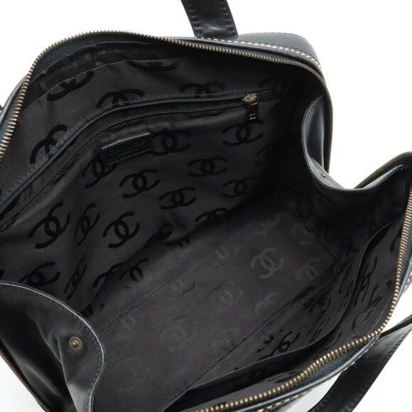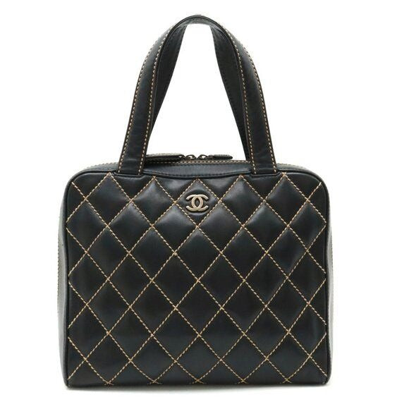 CHANEL CC Wild Stitch Vintage Quilted Shoulder Bag Tote Calfskin Black