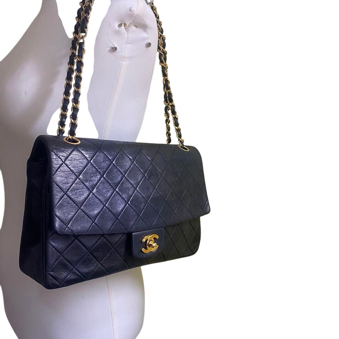 CHANEL Classic Vintage Timeless Lambskin Single Flap Bag Chain Black