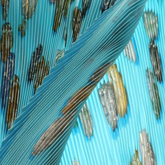 Hermes Pleated Carre Rocaille Seashell Blue Silk