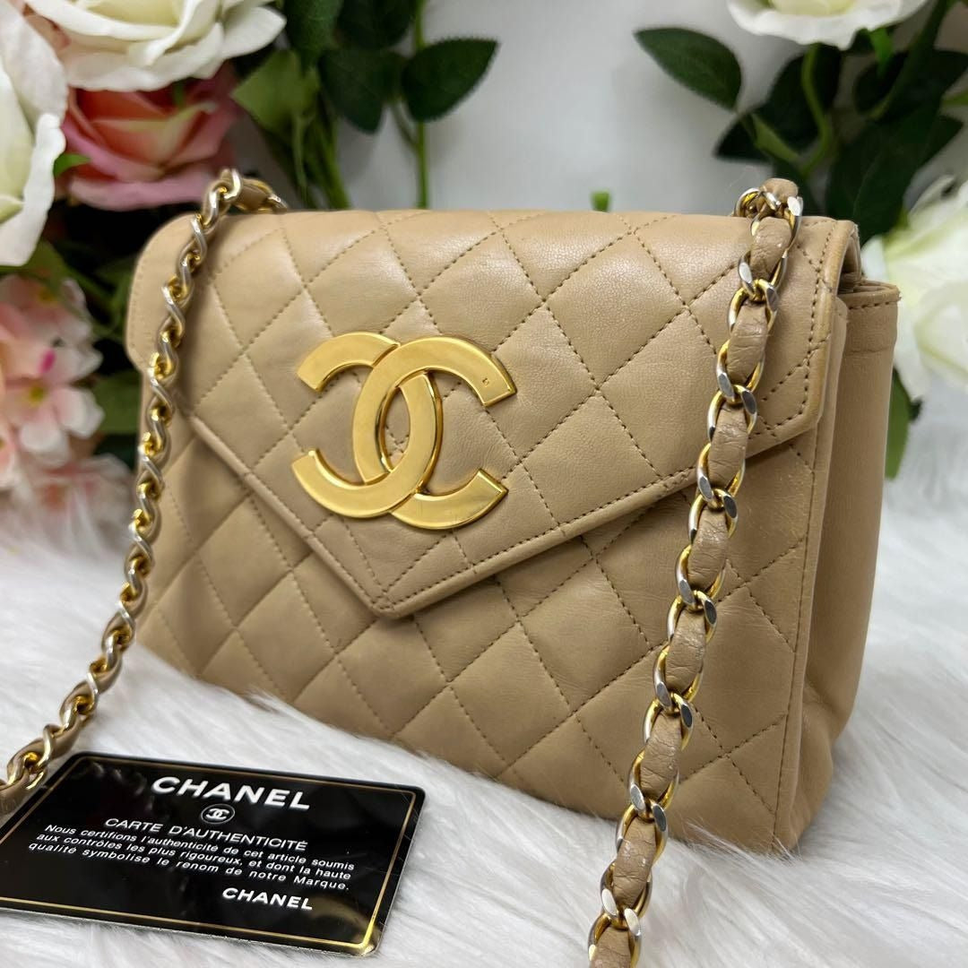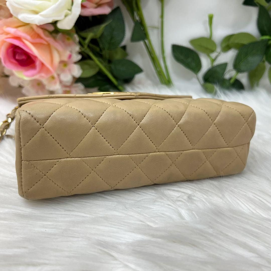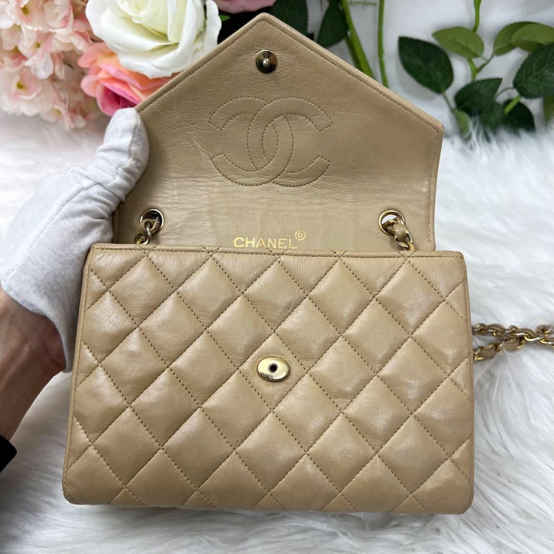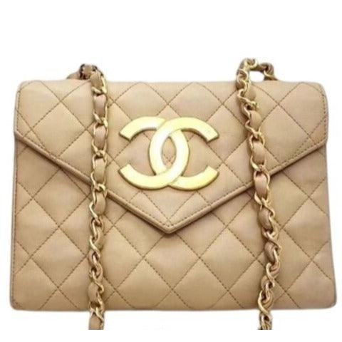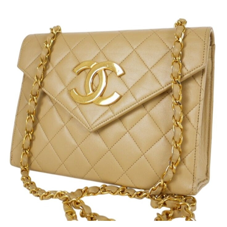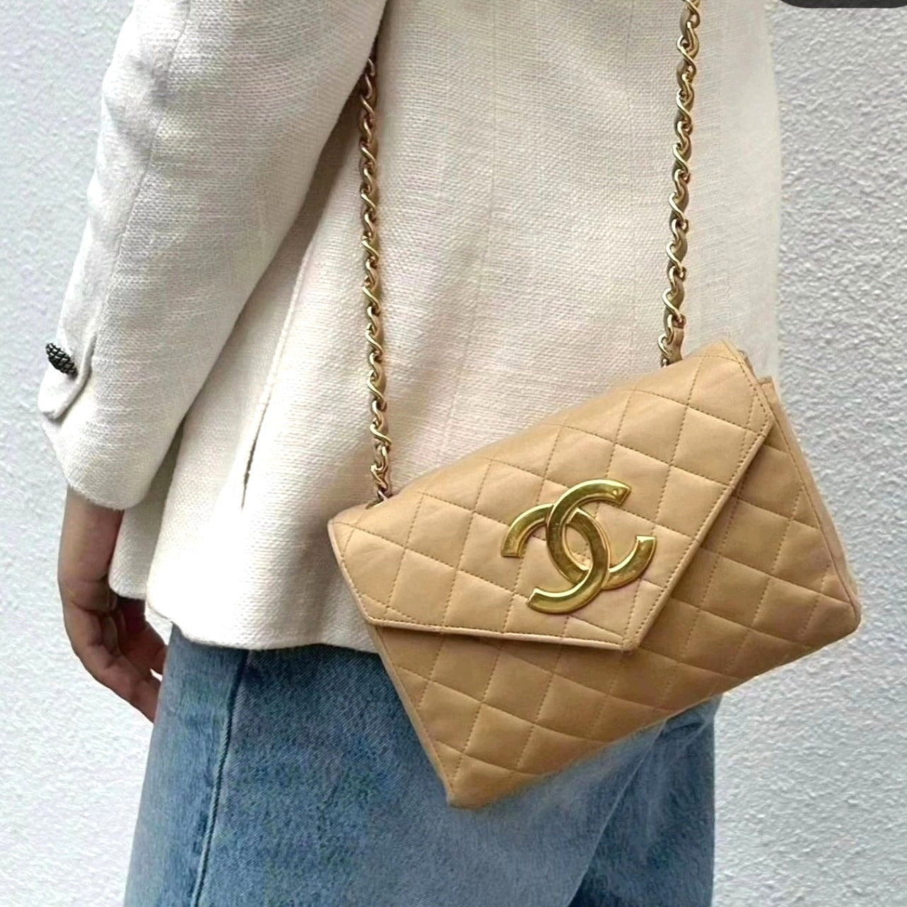 CHANEL Vintage Beige Lambskin Envelope Quilted Shoulder Bag Flap Chain