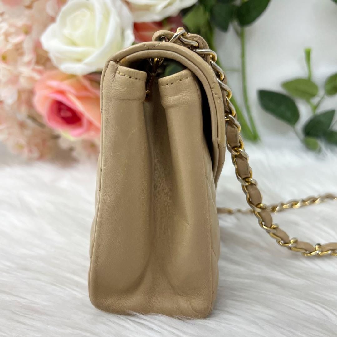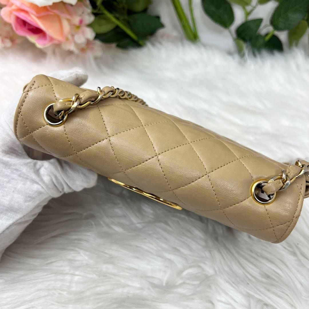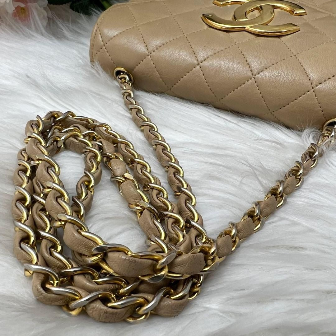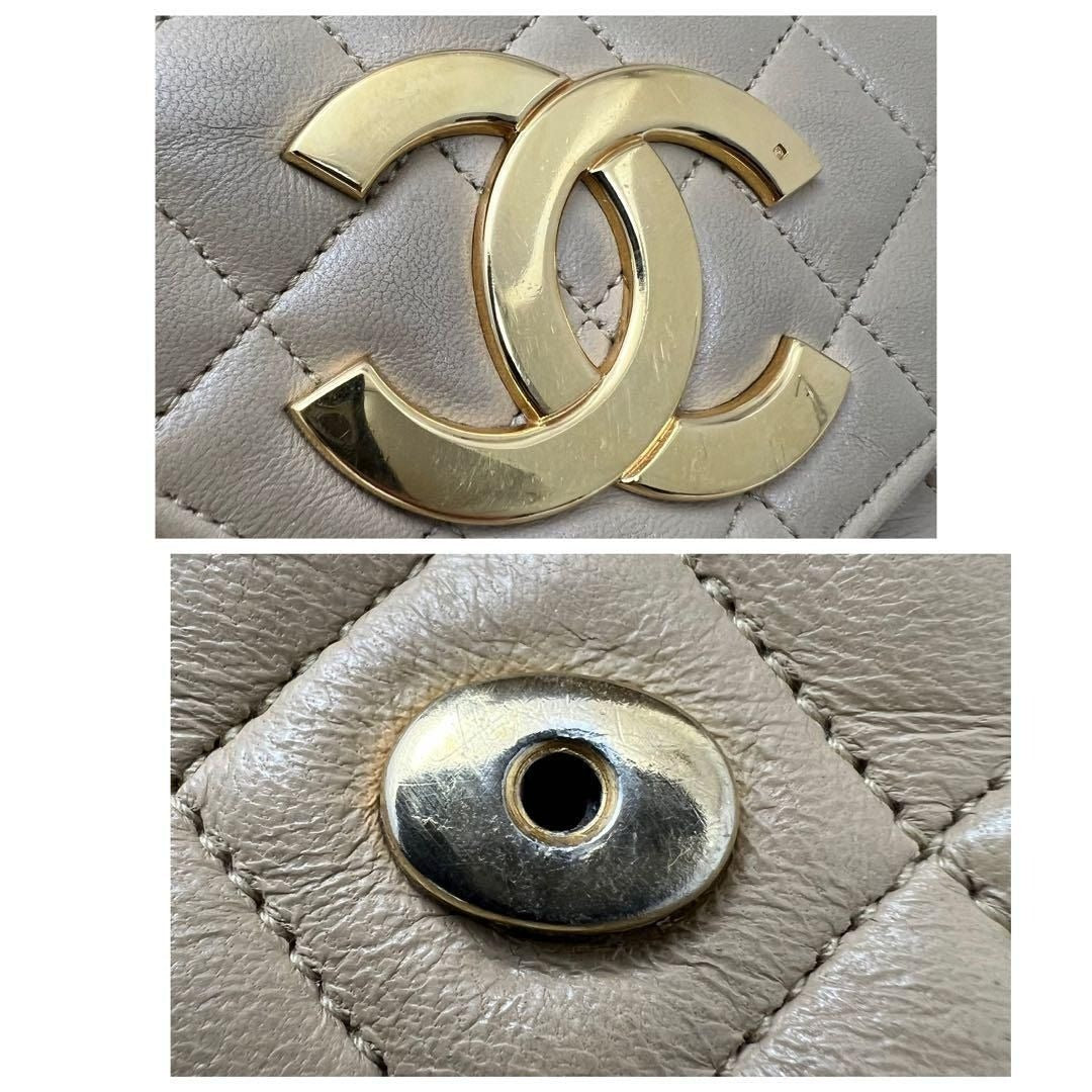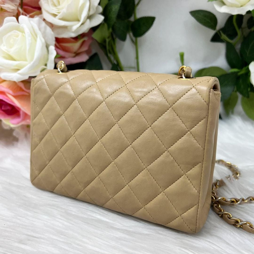 CHANEL Vintage Beige Lambskin Envelope Quilted Shoulder Bag Flap Chain