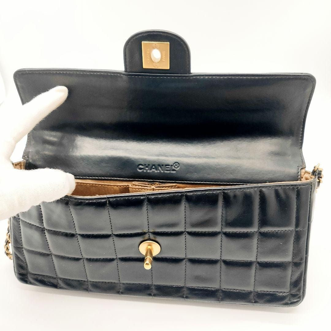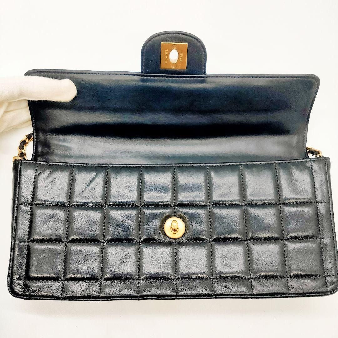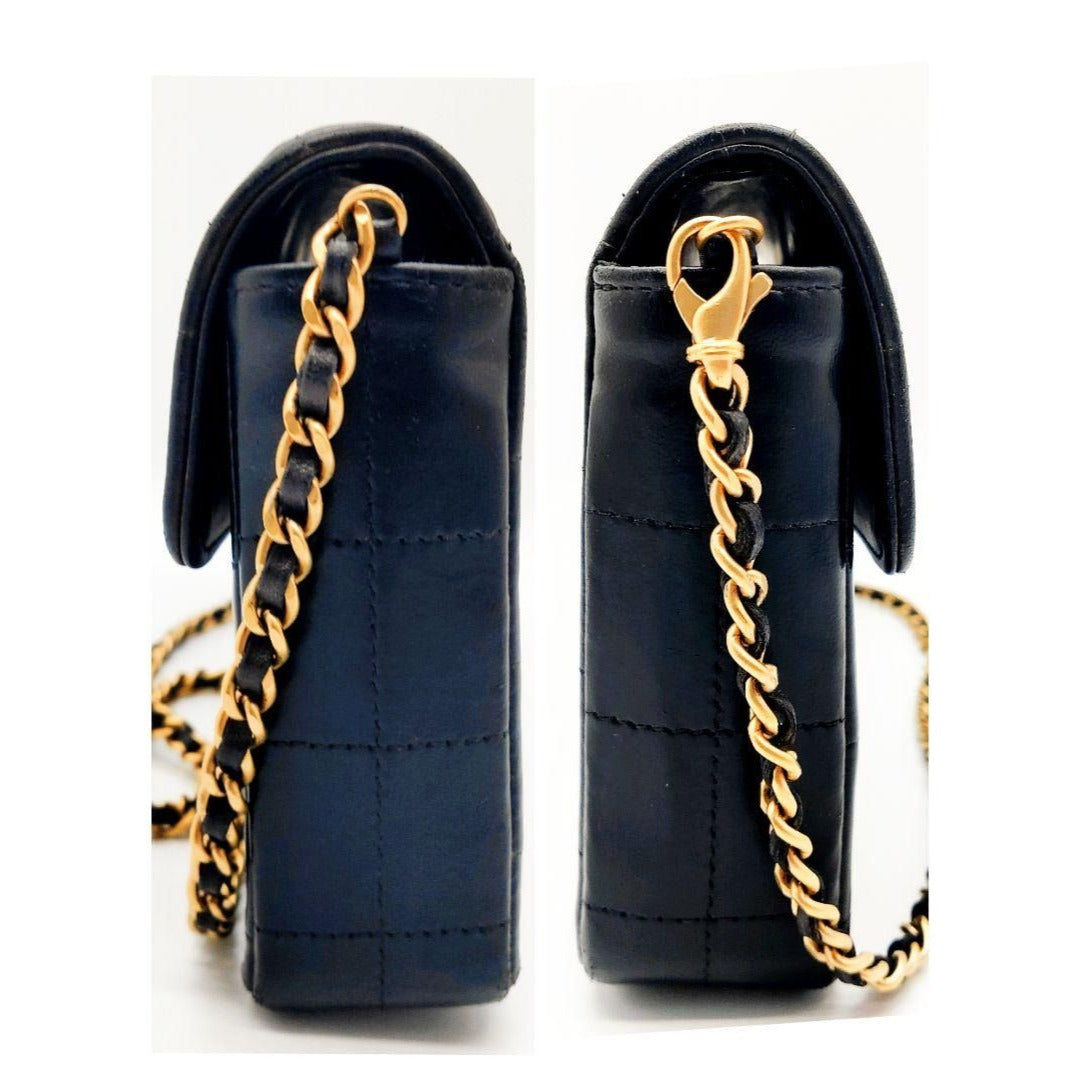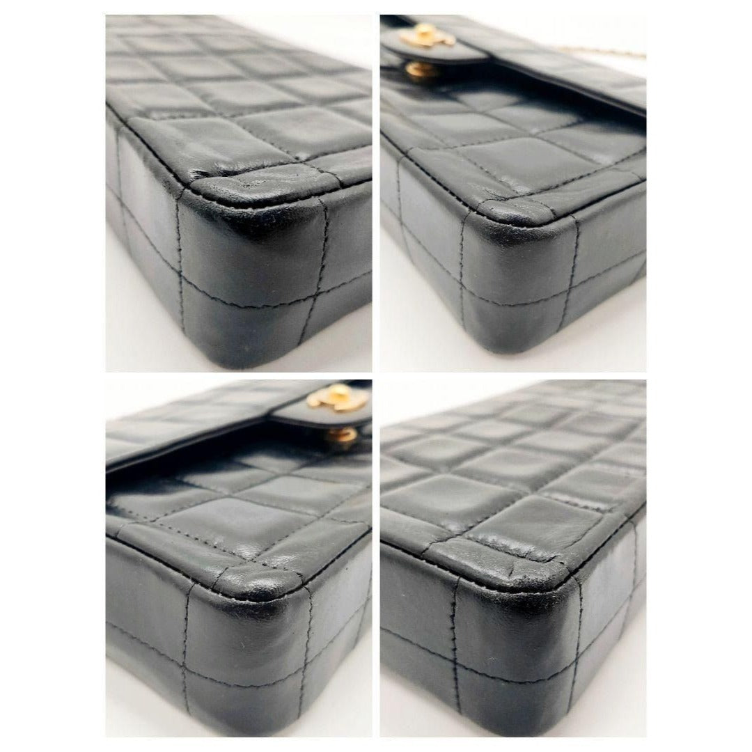 CHANEL Vintage Chocolate Bar Lambskin Leather Purse Bag Black Chain