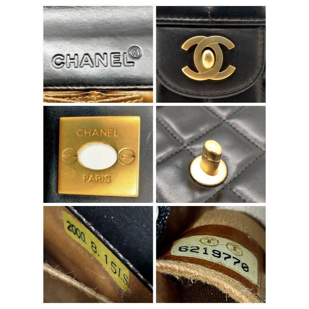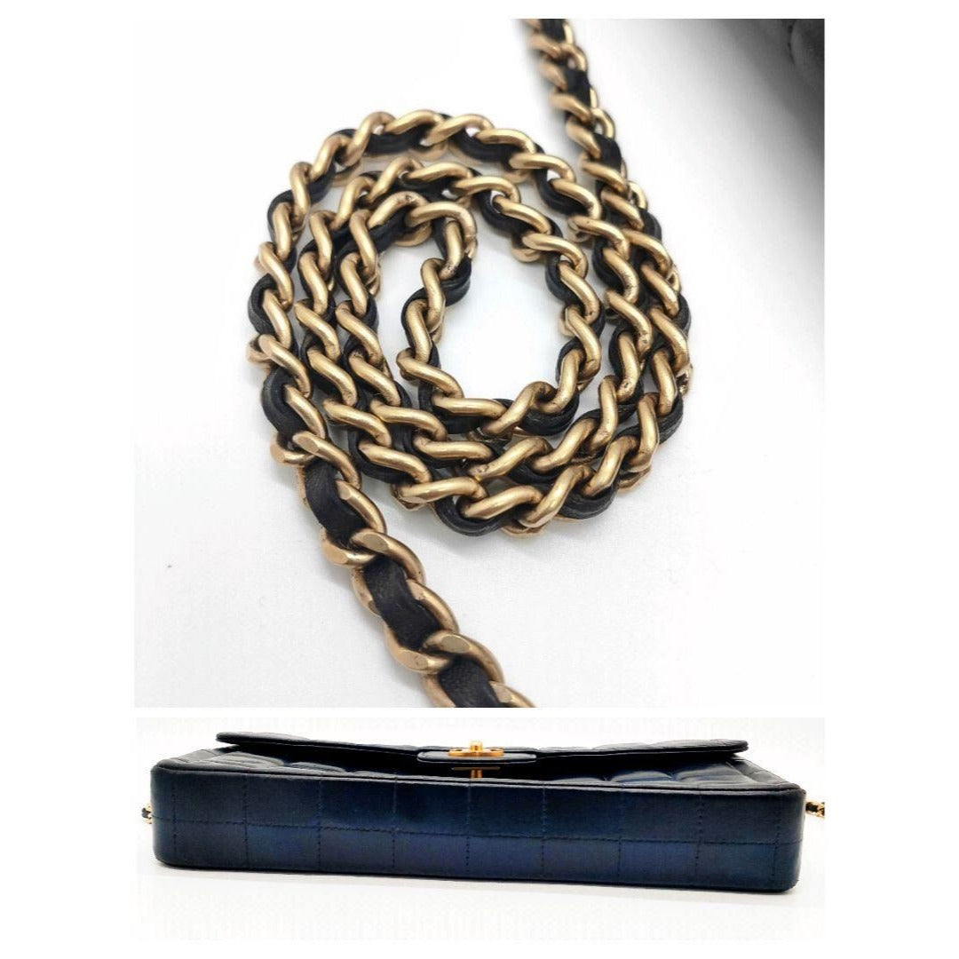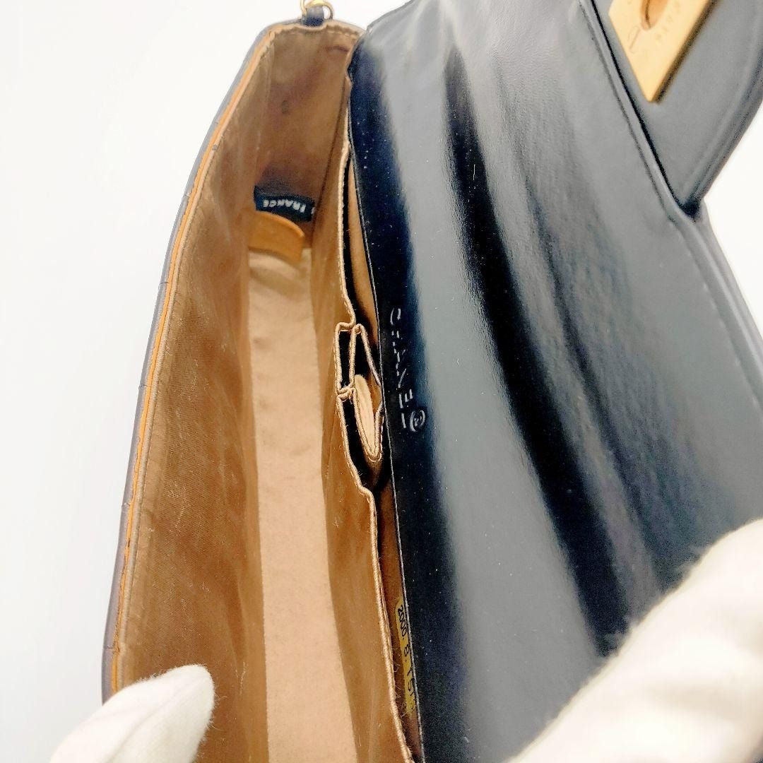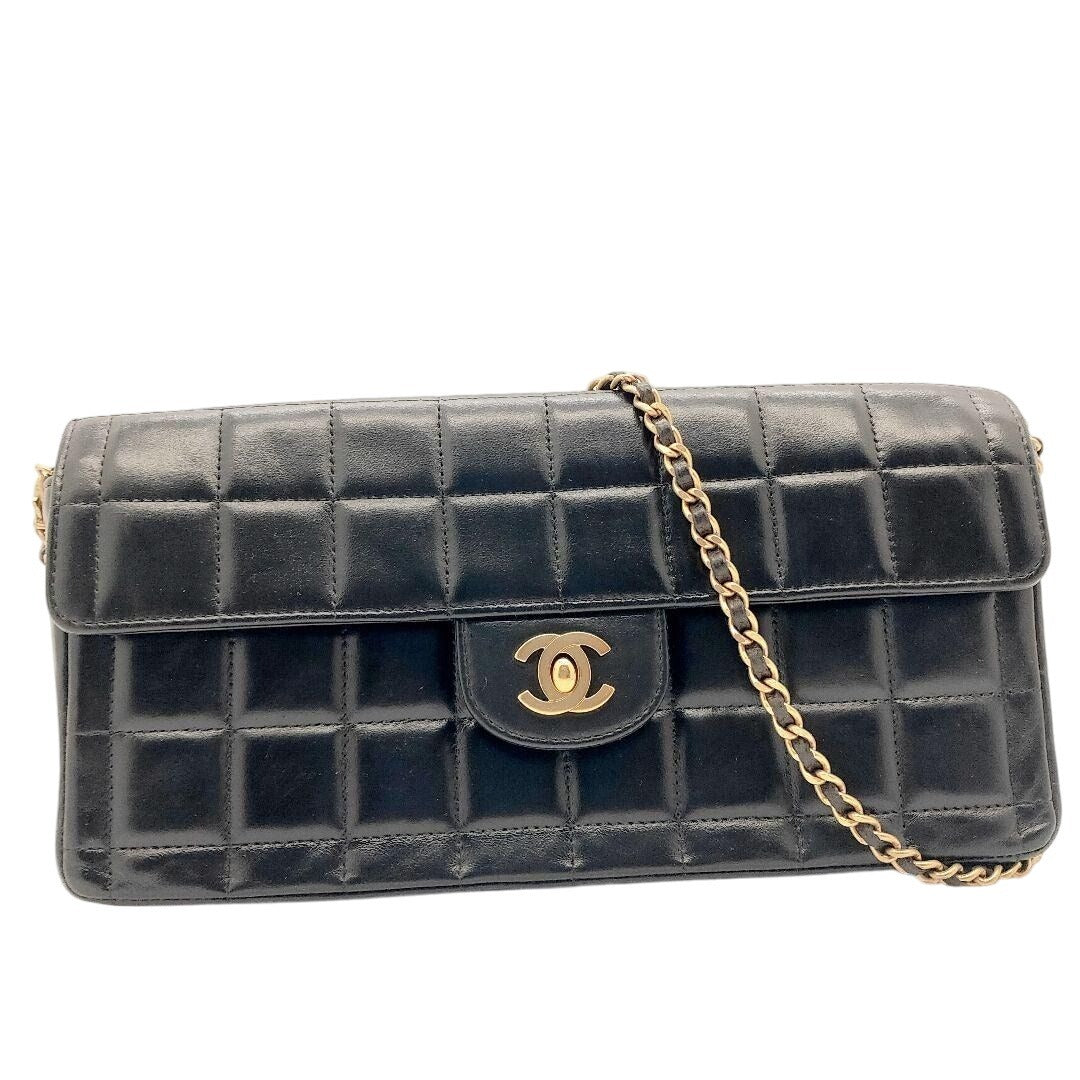 CHANEL Vintage Chocolate Bar Lambskin Leather Purse Bag Black Chain