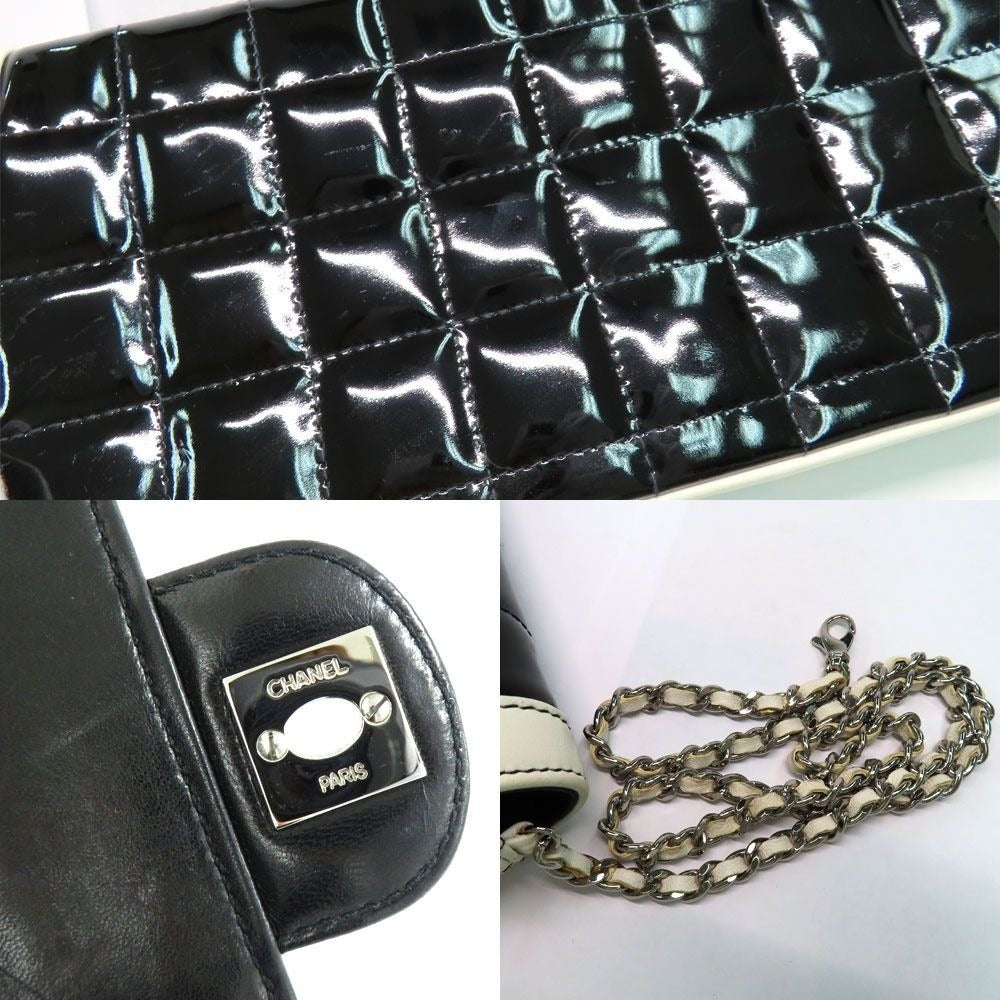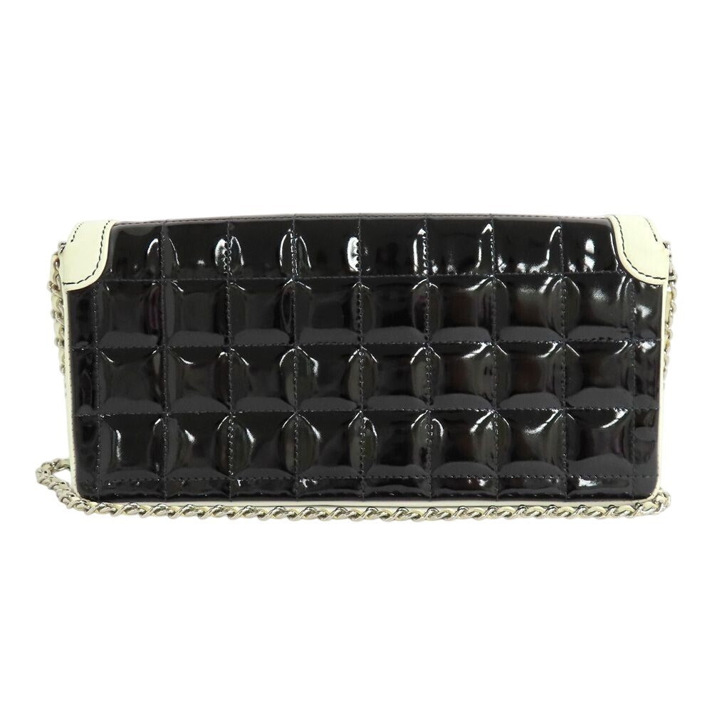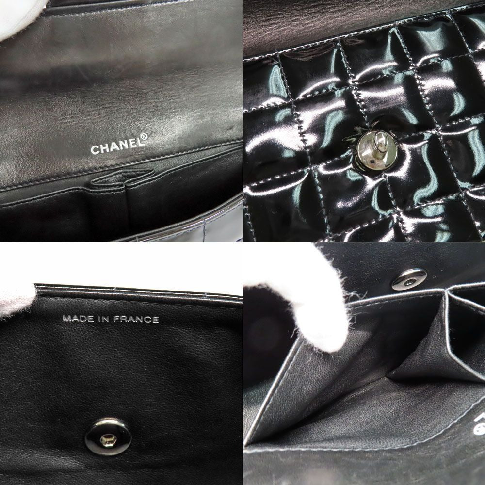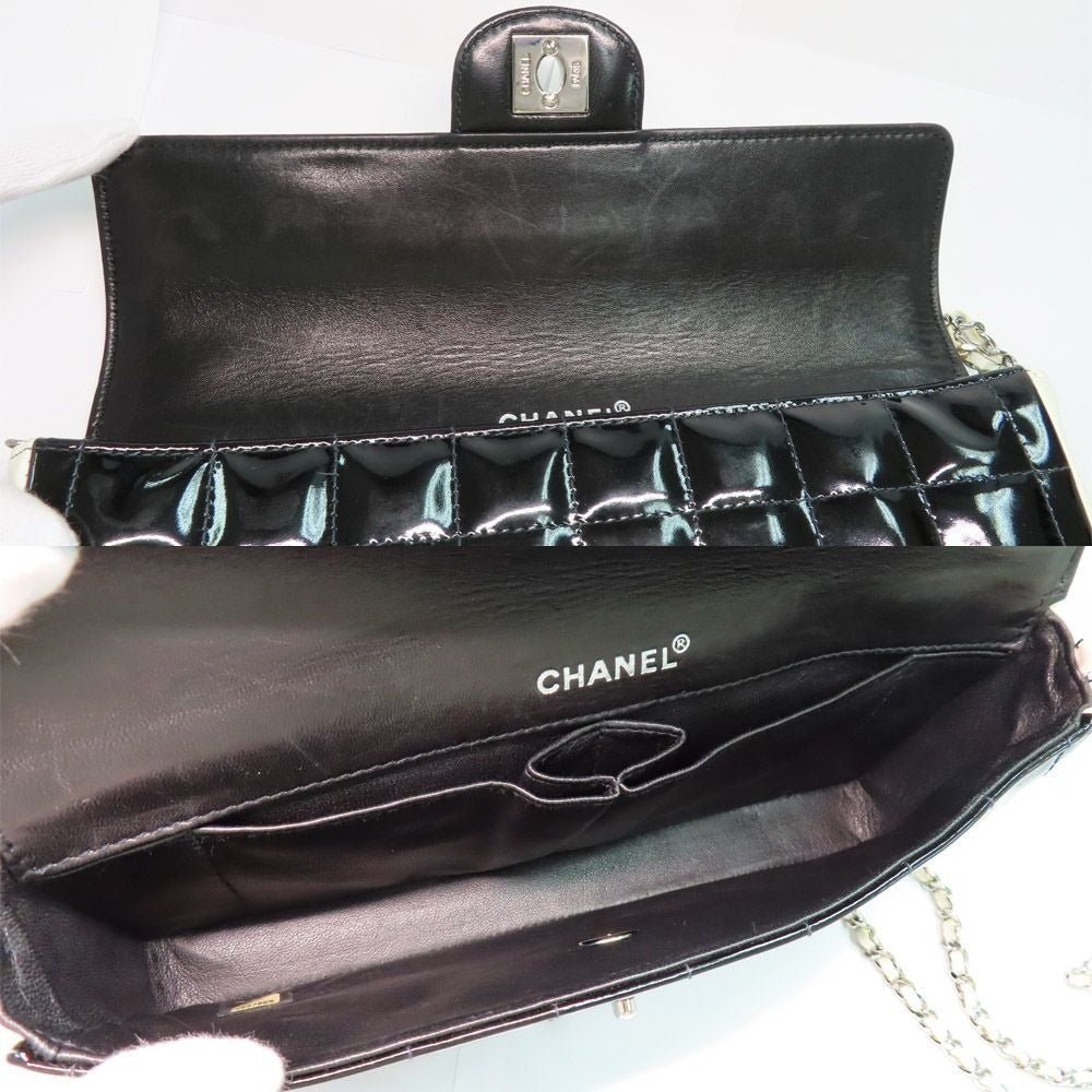 CHANEL Vintage Chocolate Bar Lambskin Patent Purse Bag Black Chain