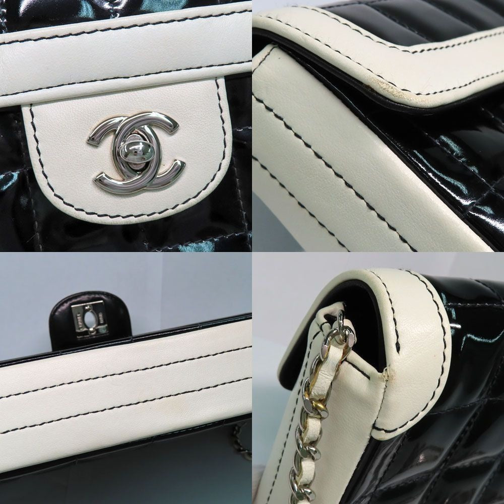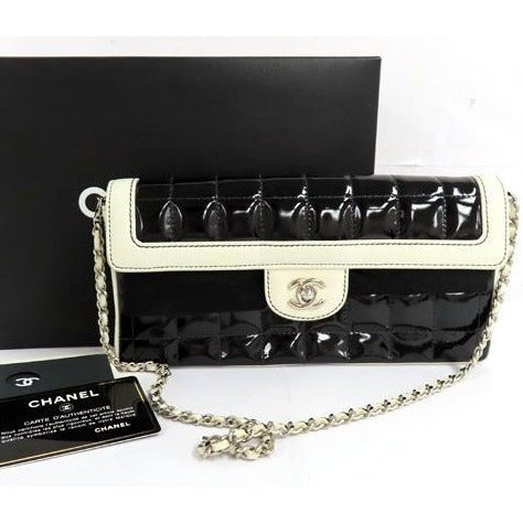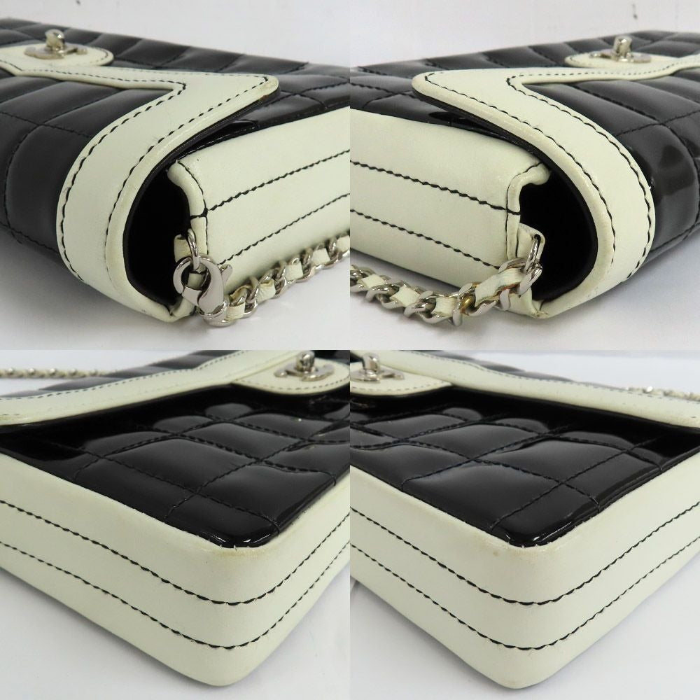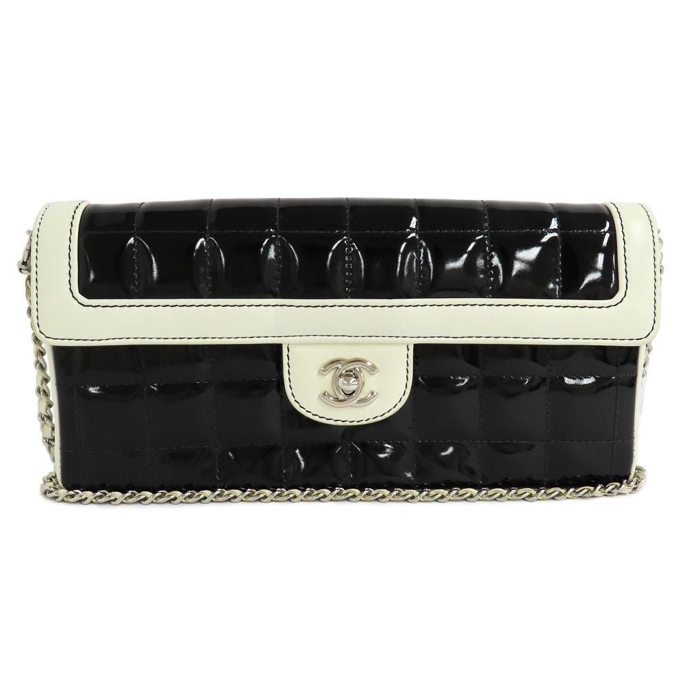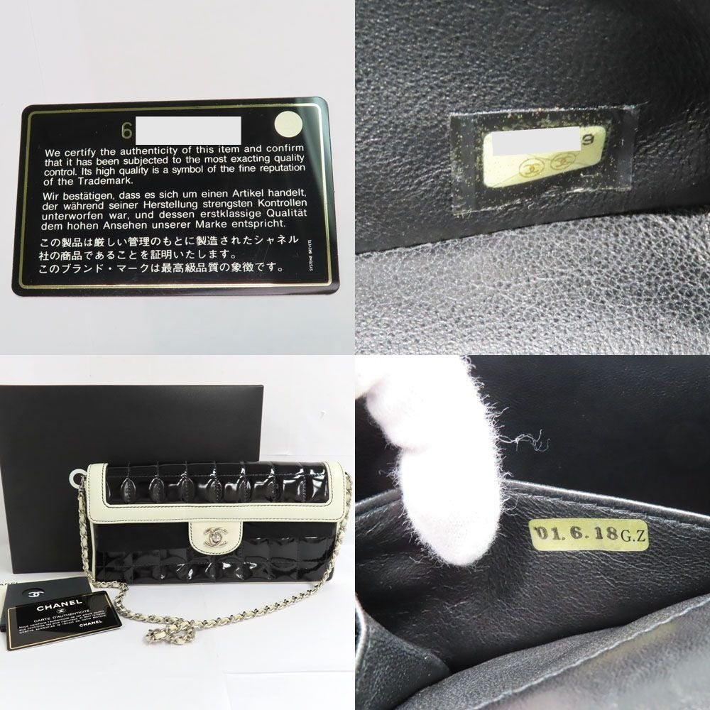 CHANEL Vintage Chocolate Bar Lambskin Patent Purse Bag Black Chain