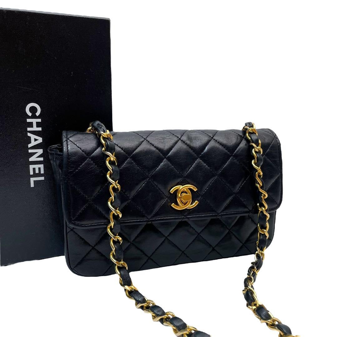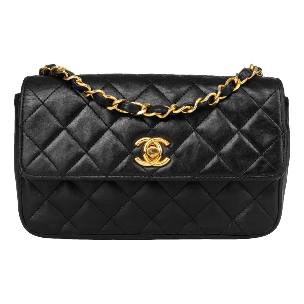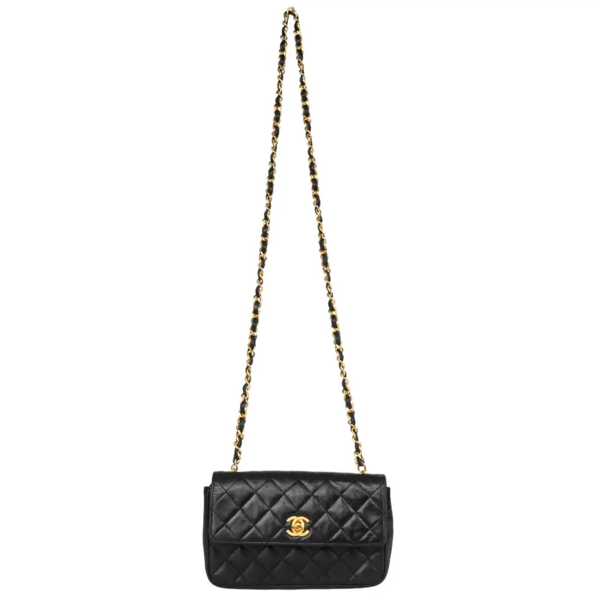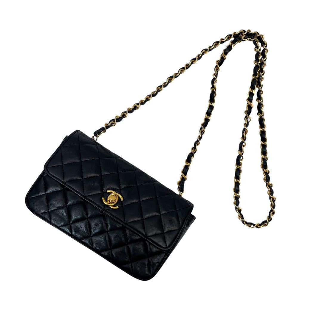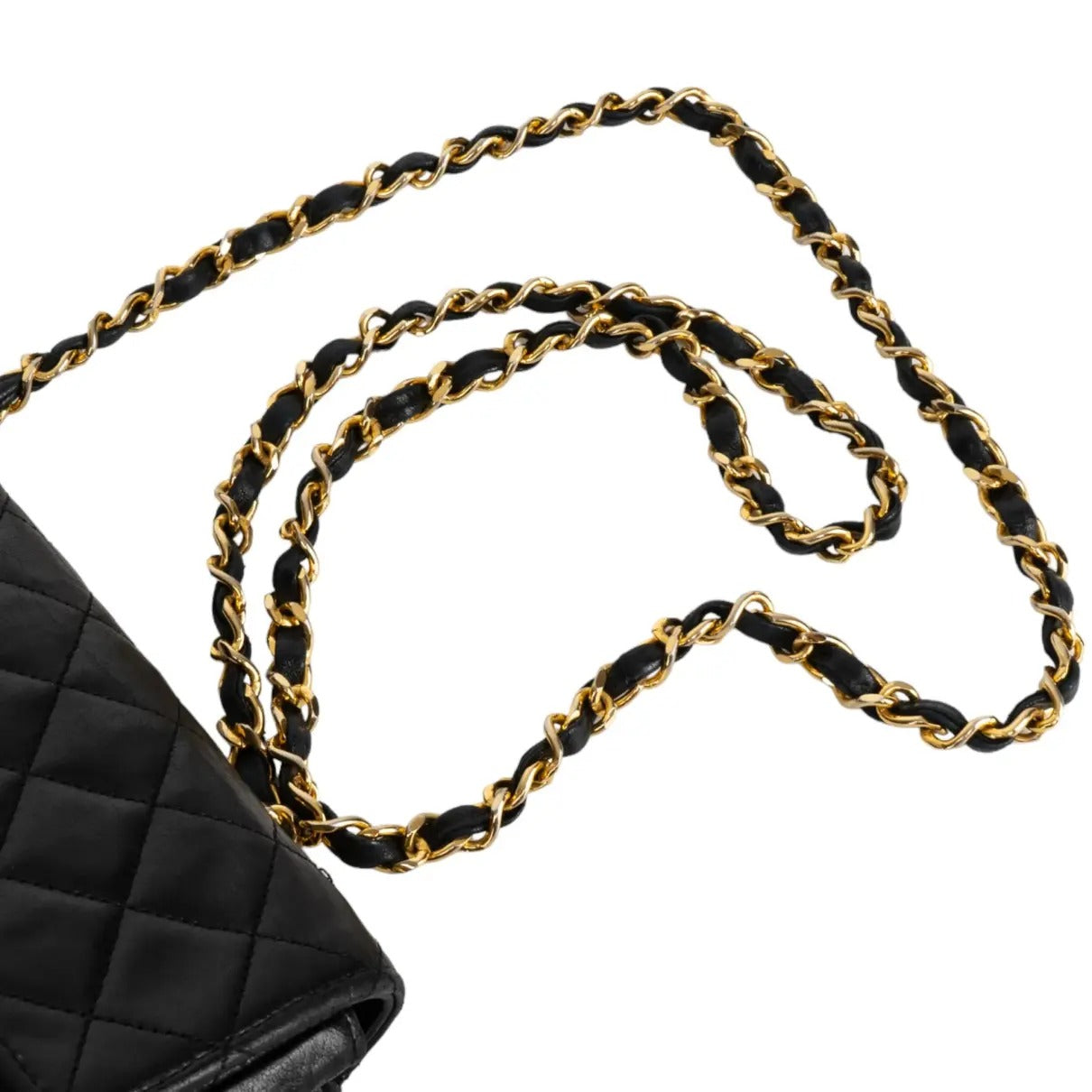 CHANEL Vintage Classic Single Flap Quilted Lambskin Chain Bag Black