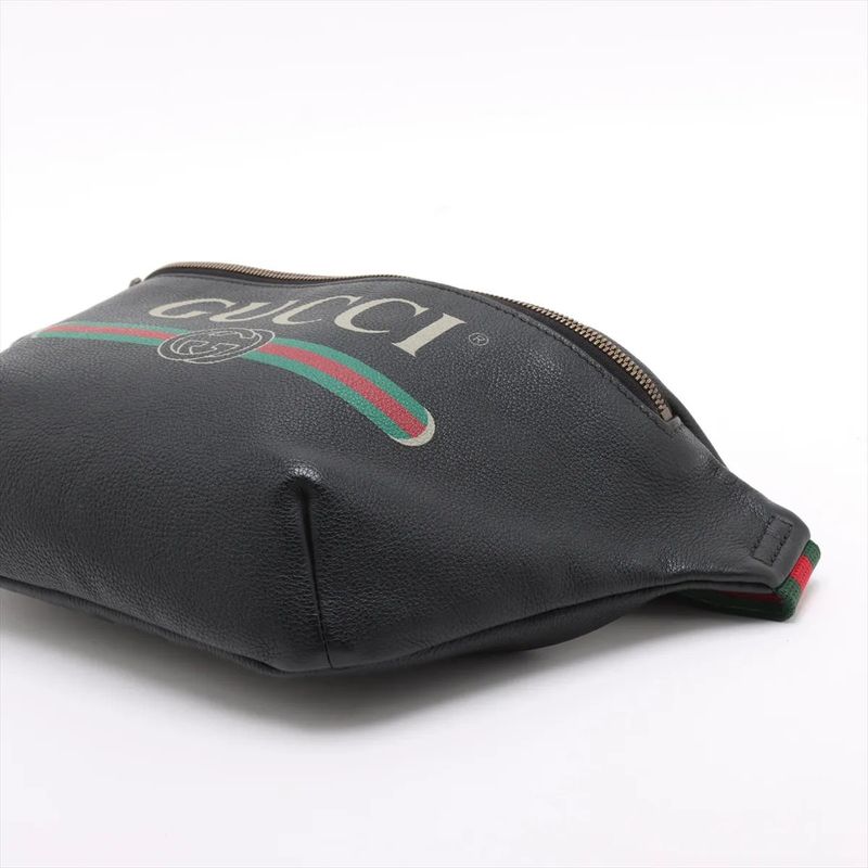 Gucci Leather 2way Body Bag Crossbody Sherry Line 530412 Waist Pouch Black Men