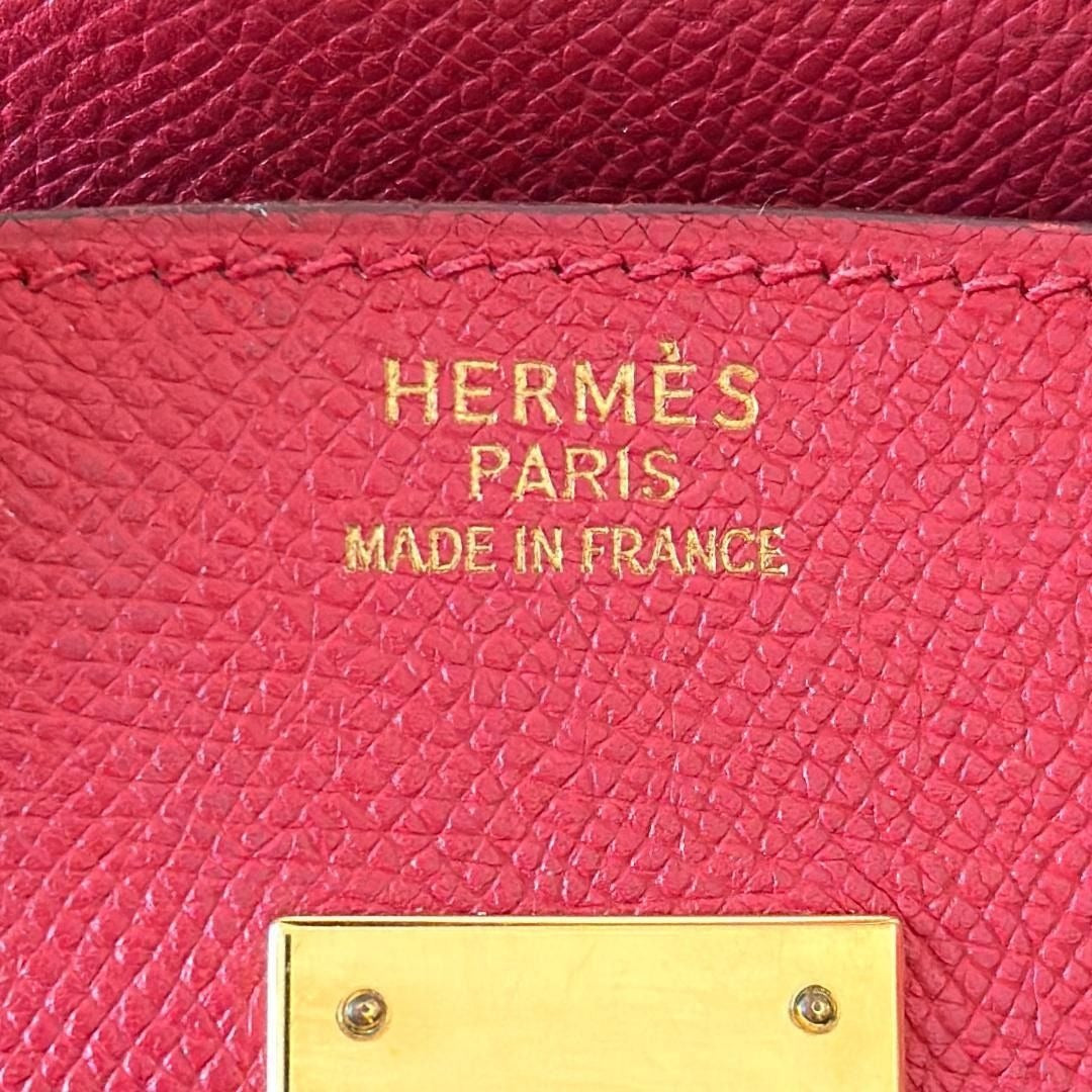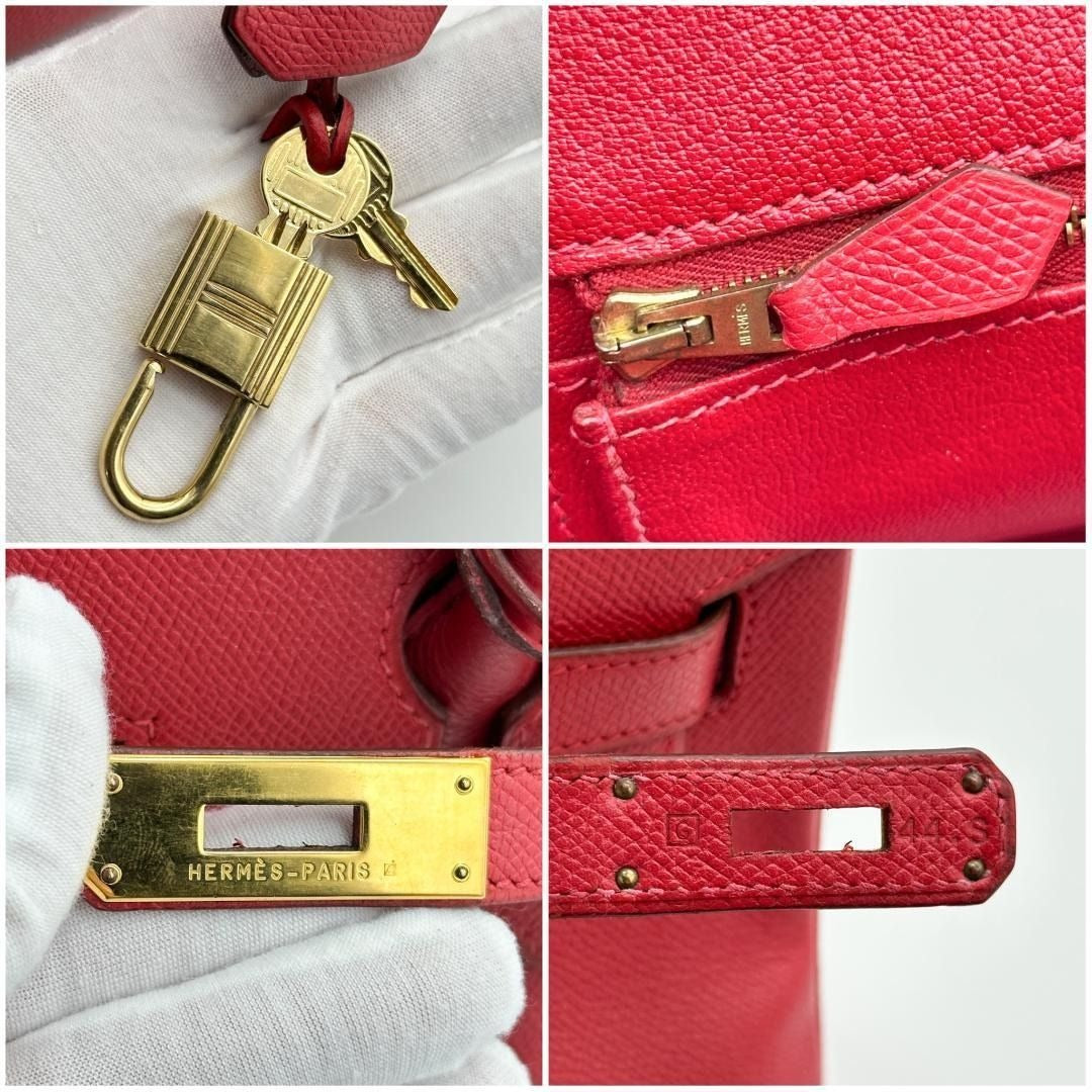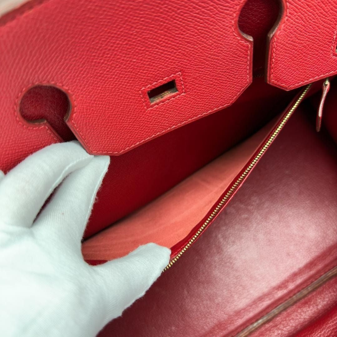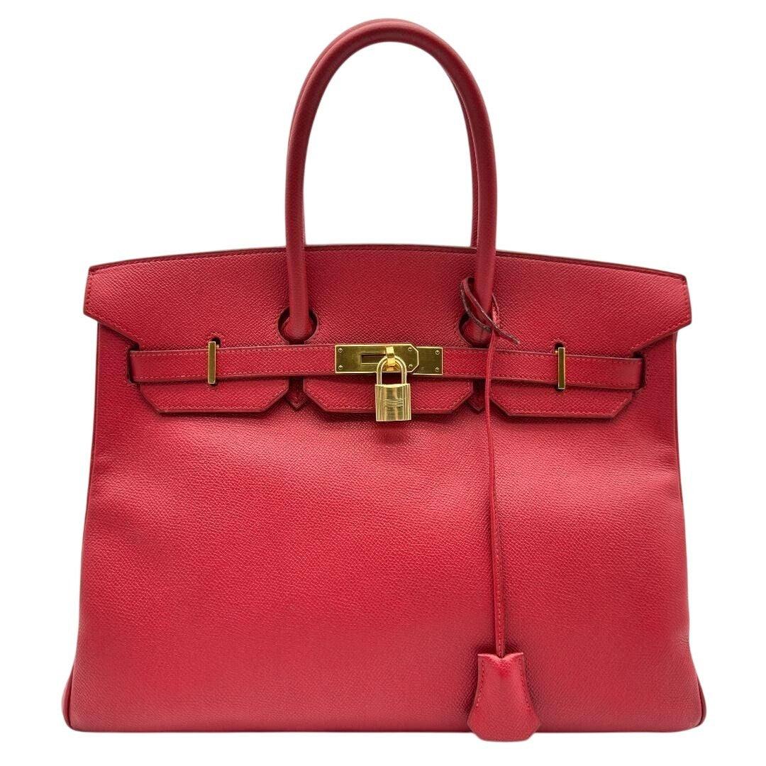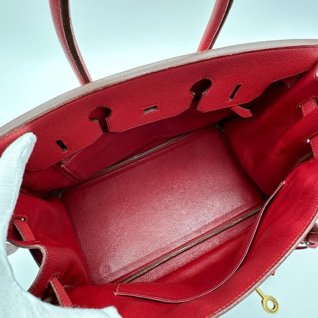 HERMES Birkin 35 GHW Vintage Rouge Vif Epsom Leather Shoulder Bag