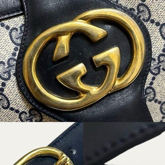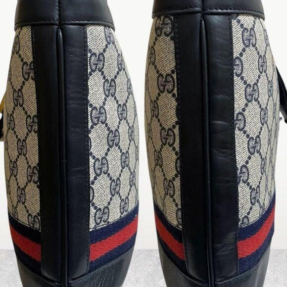 Authentic Gucci GG Sherry Navy Canvas Ophidia Crossbody Shoulder Bag Messenger
