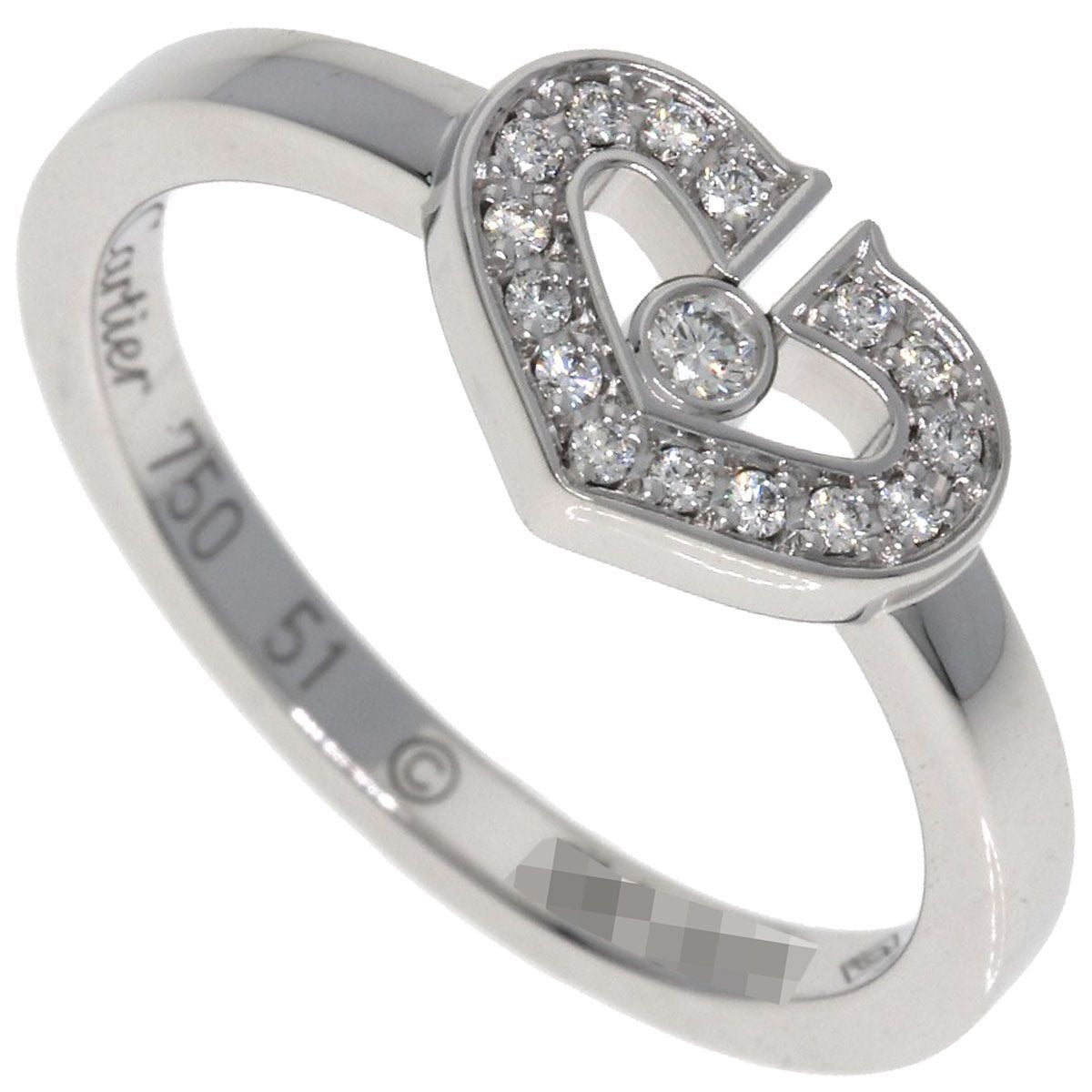 CARTIER C Heart Diamond 51 Ring K18WG Ladies White Gold