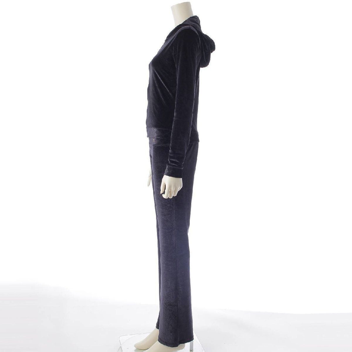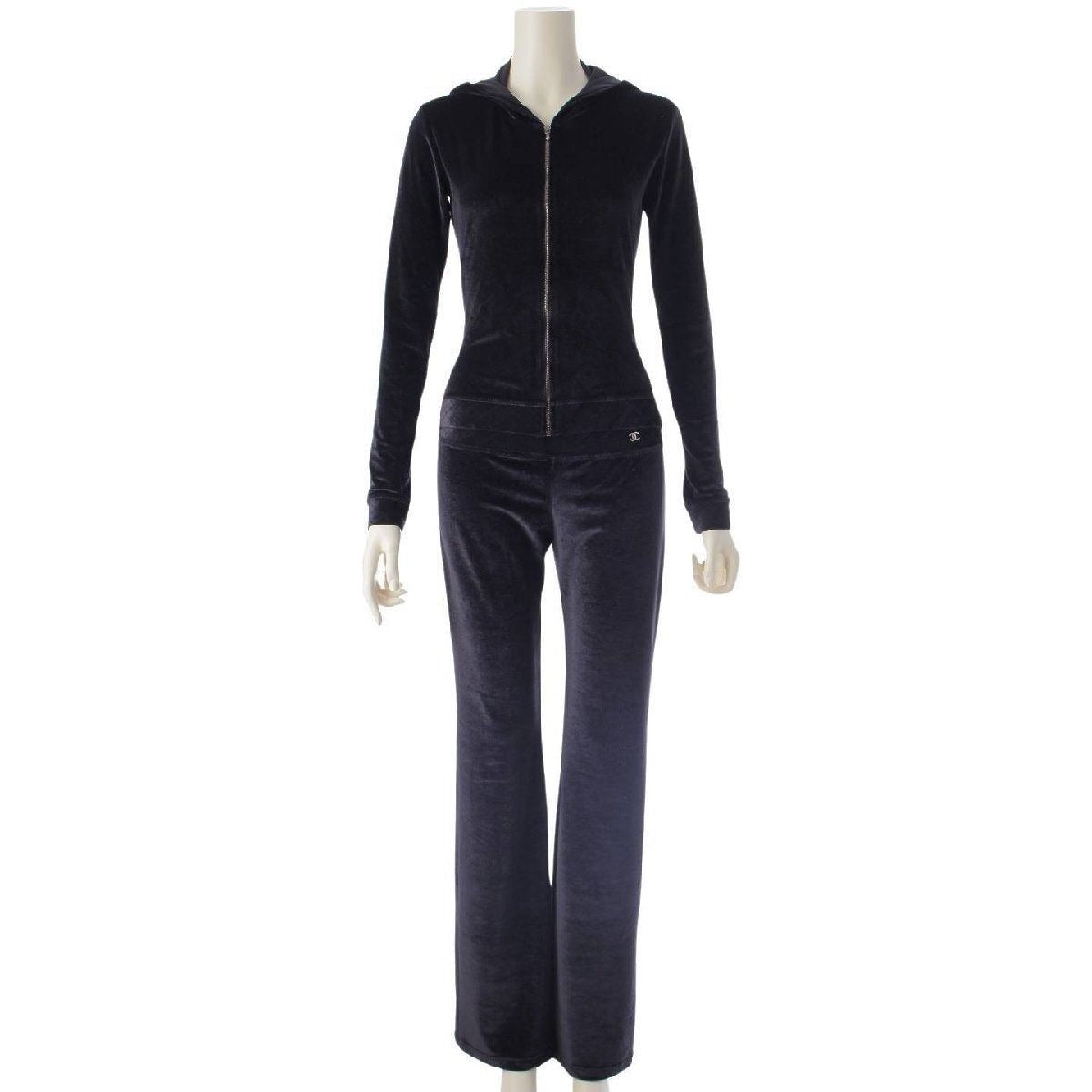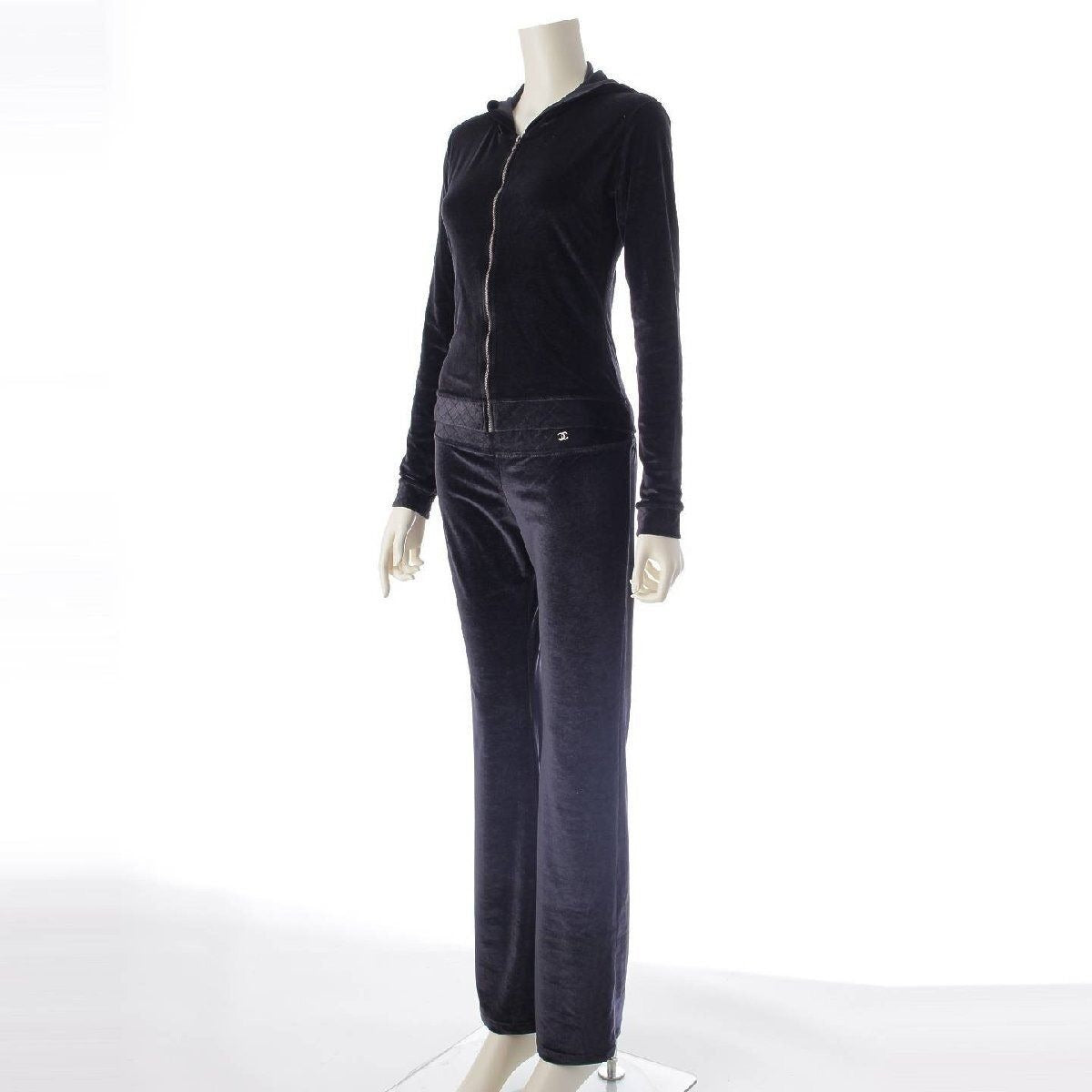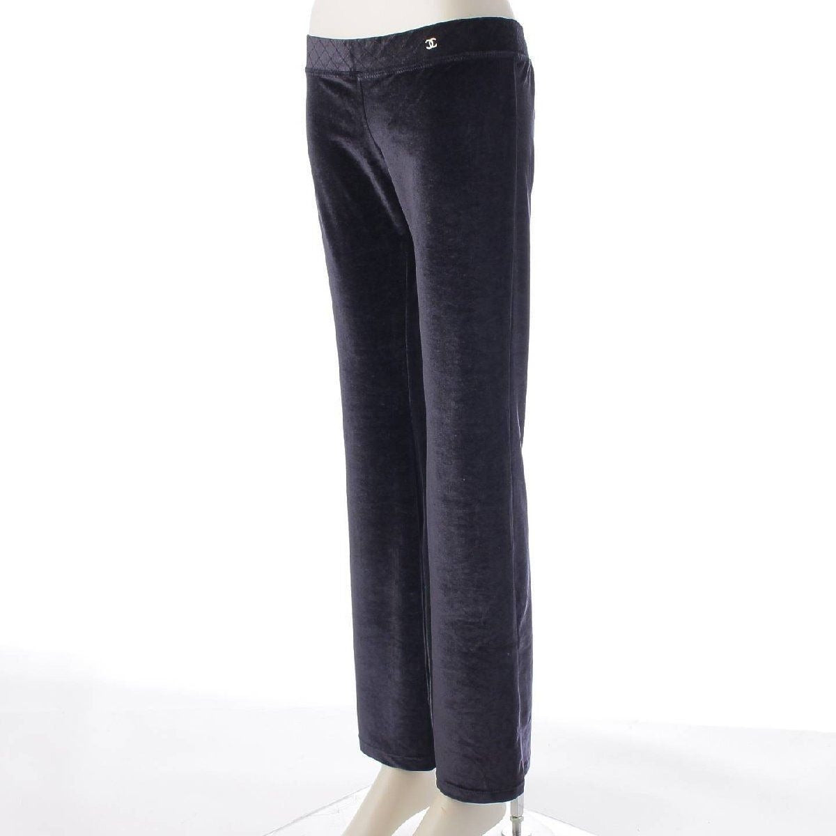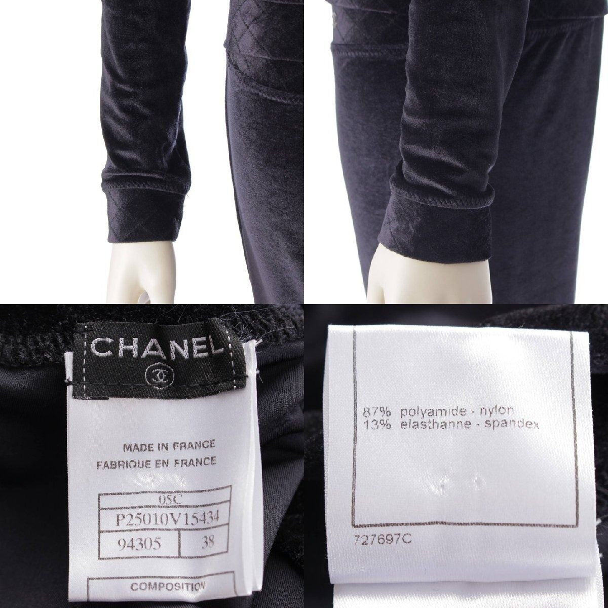 CHANEL 05C Velour Track Suit Pants Set Top Y2K Black 38