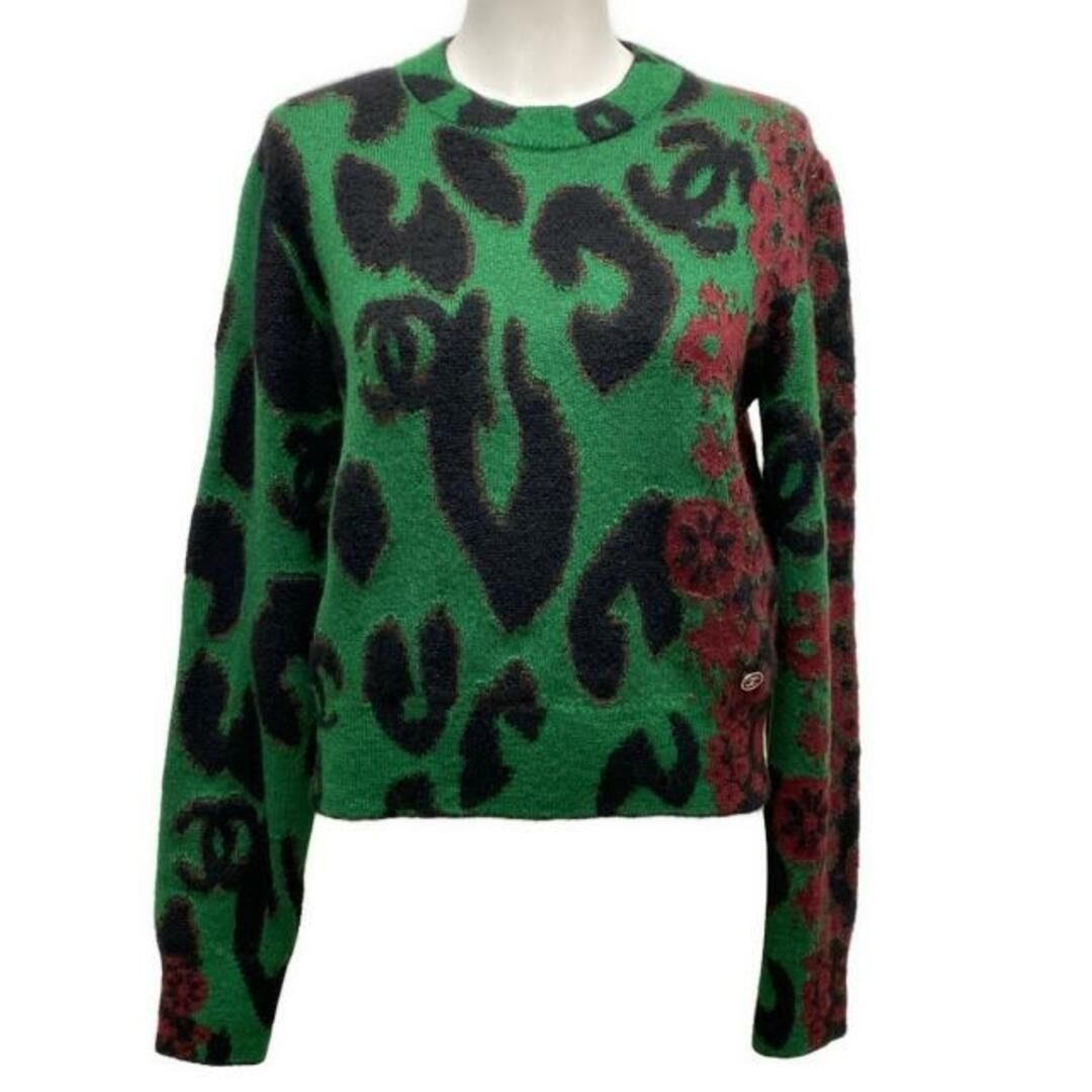 CHANEL 2023 Cashmere Animal Print Sweater CC Logo Top 36