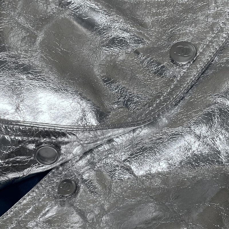 Chanel Blouson Size 38 M Women's - P53732 Silver X Navy Lambskin 2016 Spring