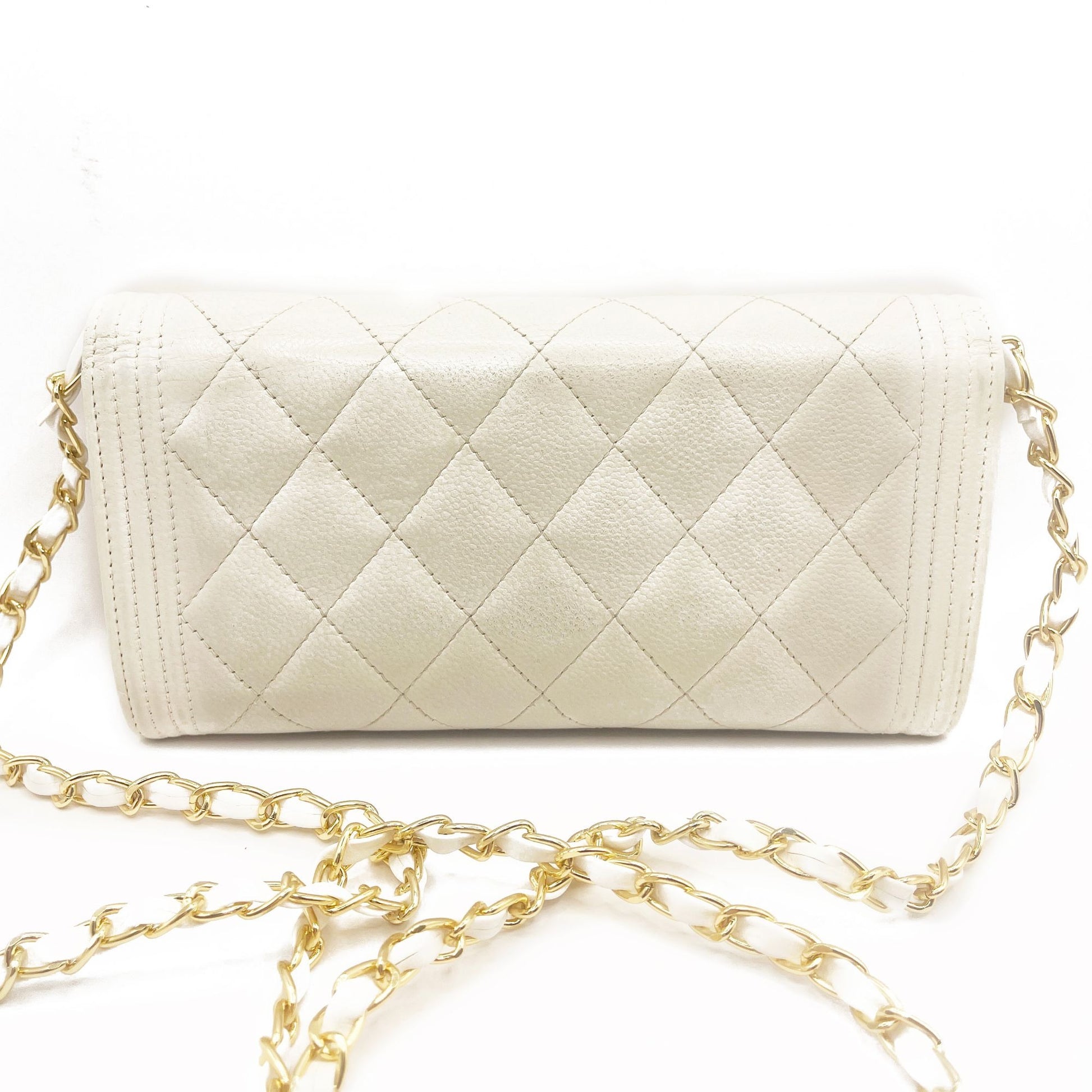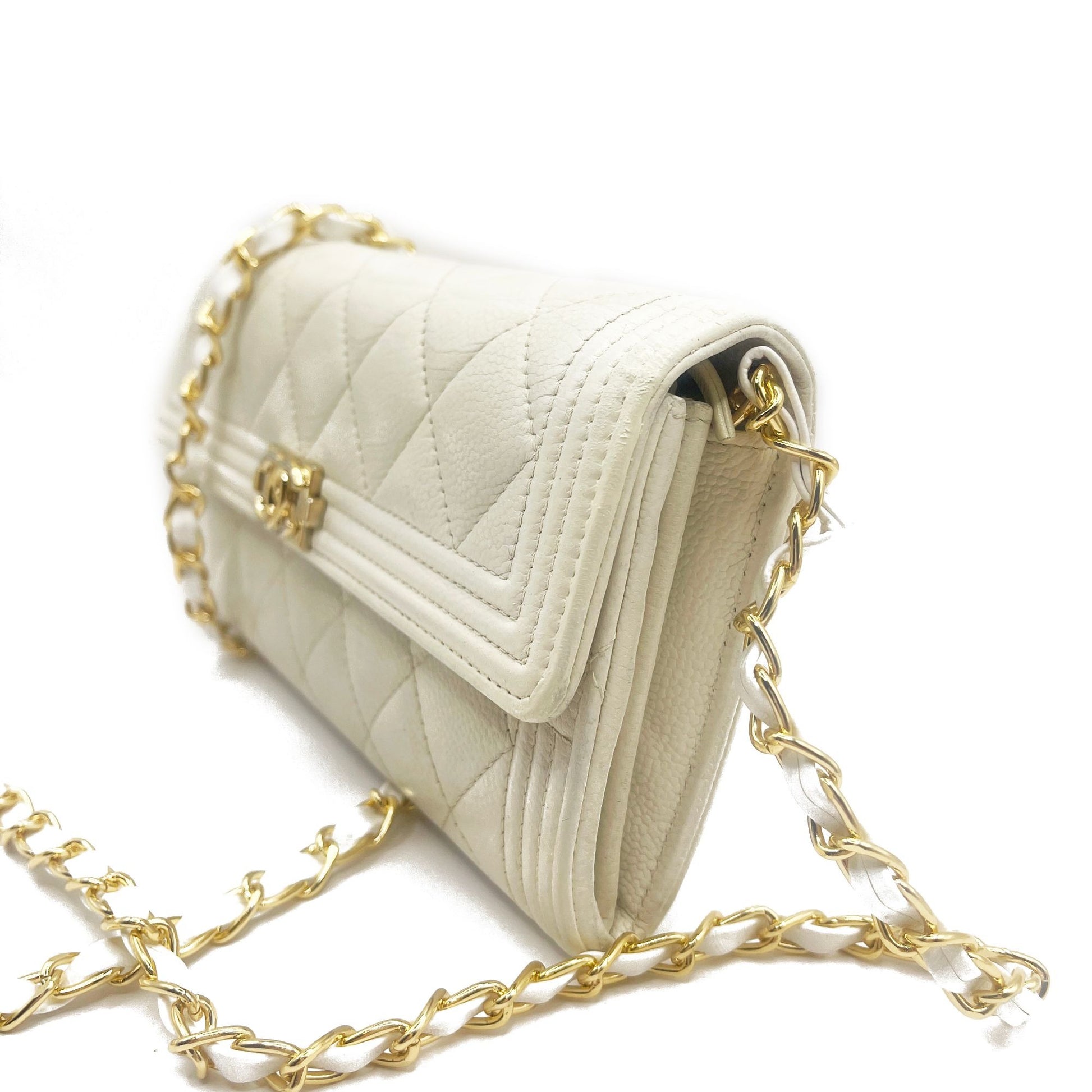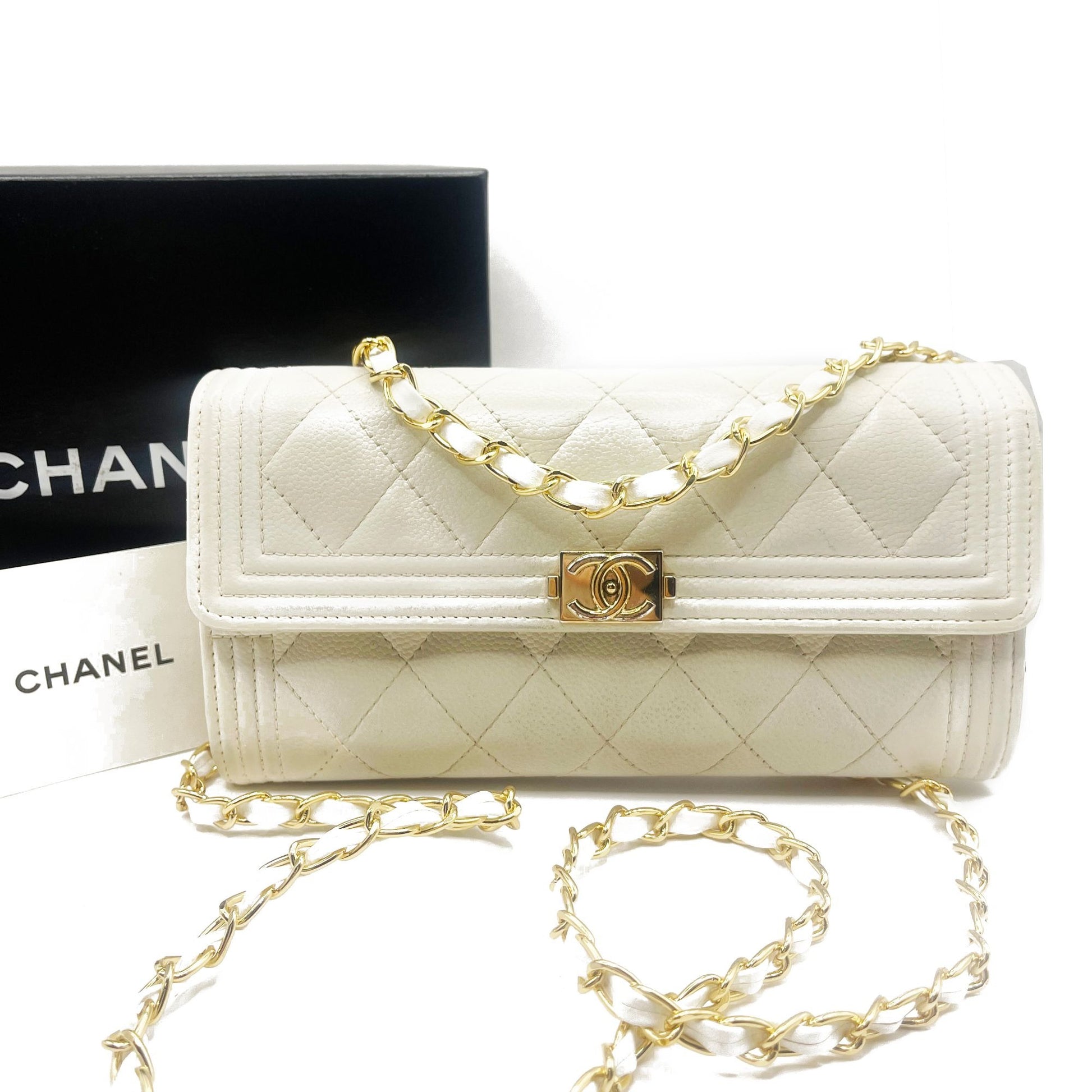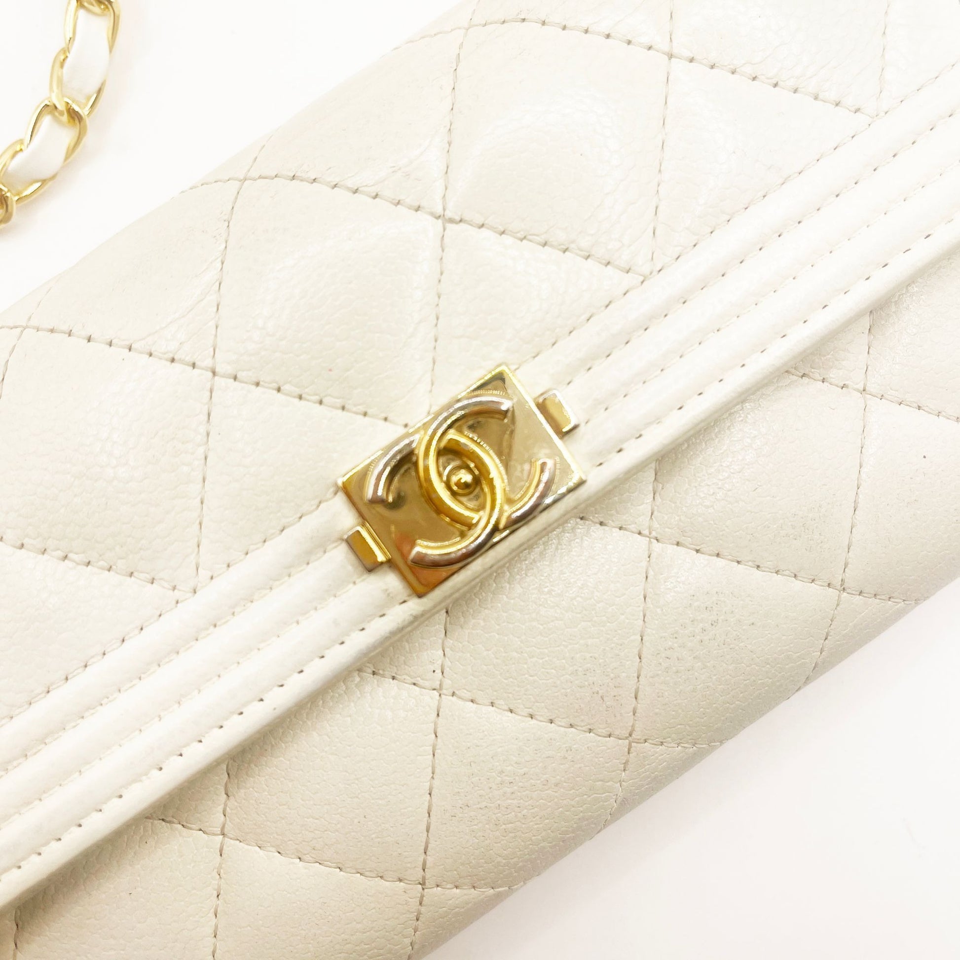 CHANEL Boy CC Flap Lambskin Wallet Chain Shoulder Crossbody Ivory Gold