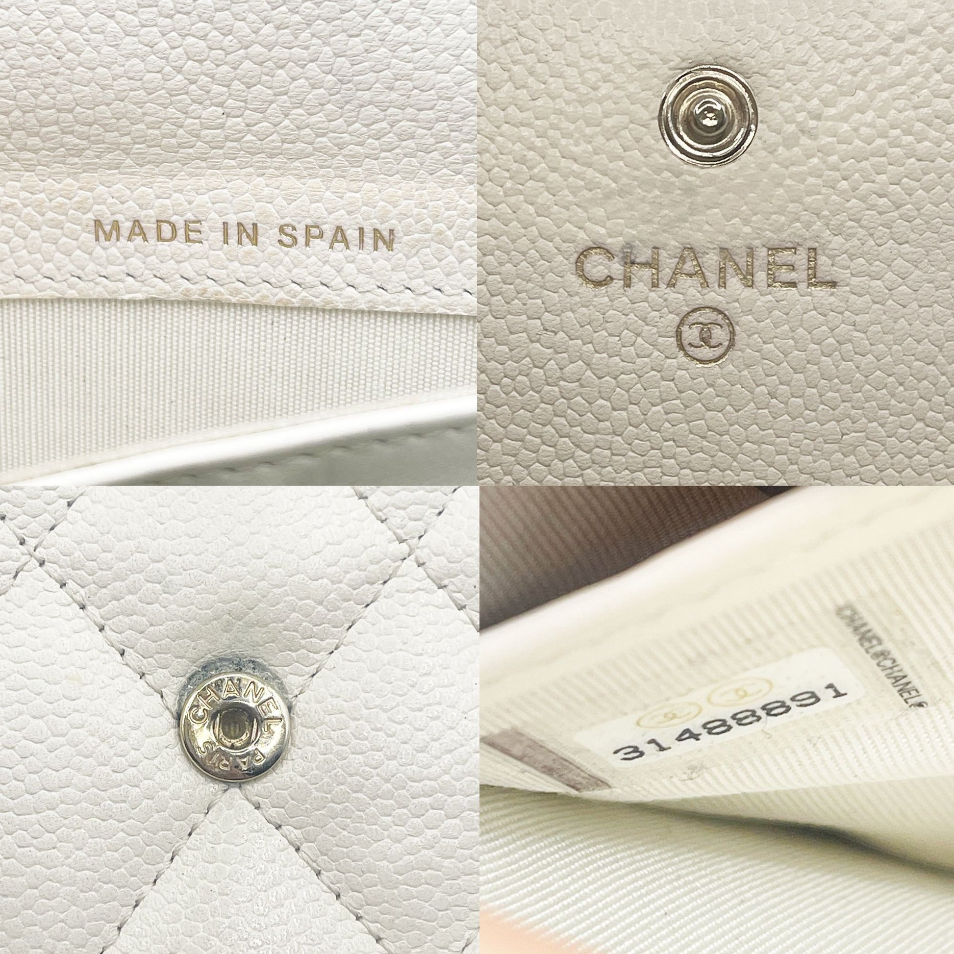 CHANEL CC Chevron Timeless Caviar Flap Wallet Chain Purse Silver Bag