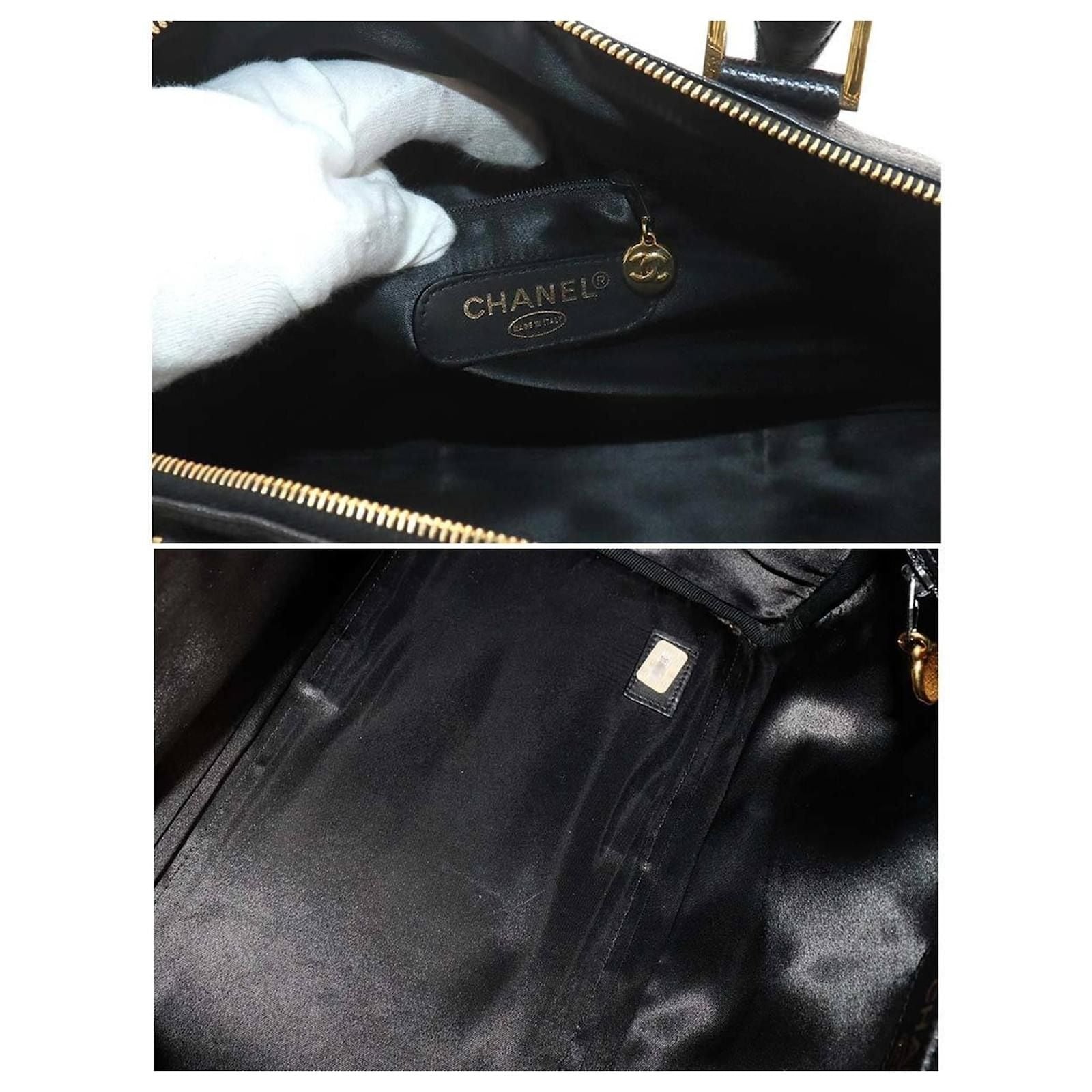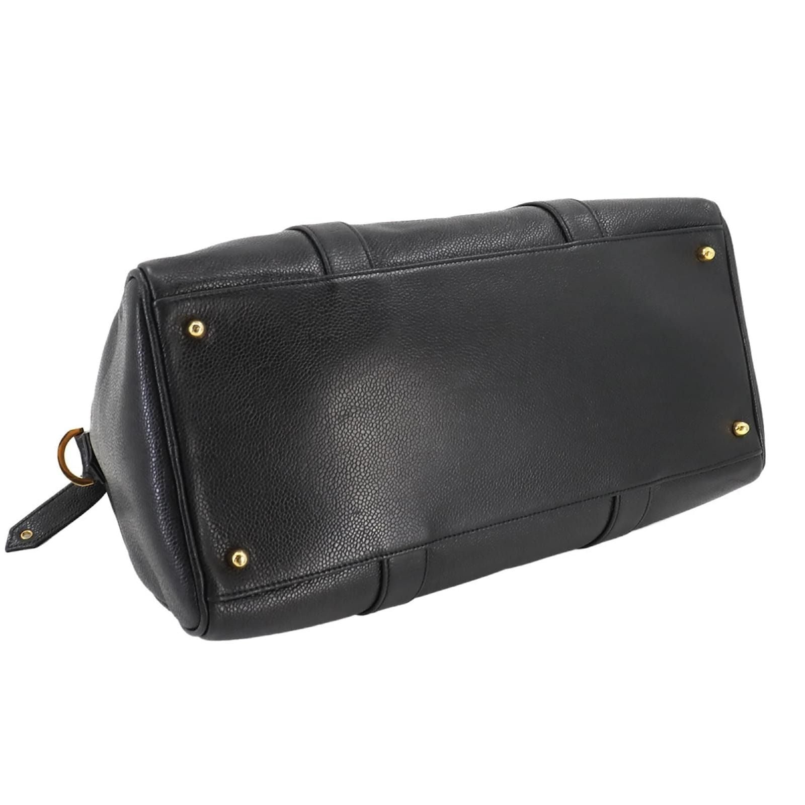 CHANEL Caviar Leather Large Bowler Bag Travel Bag Duffle Black CC Tote