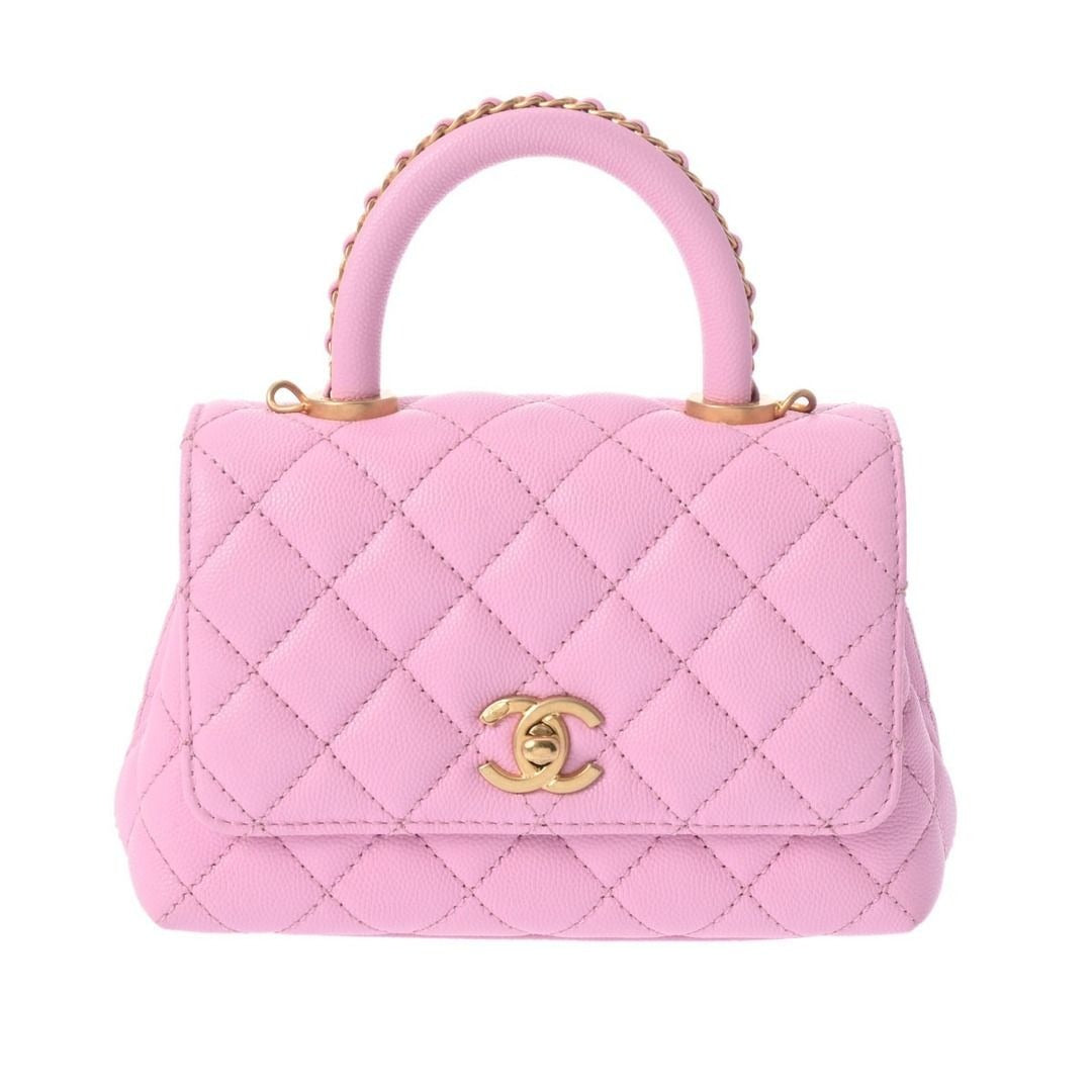 CHANEL Caviar Quilted Mini Coco Chain Handle Flap Bag Pink