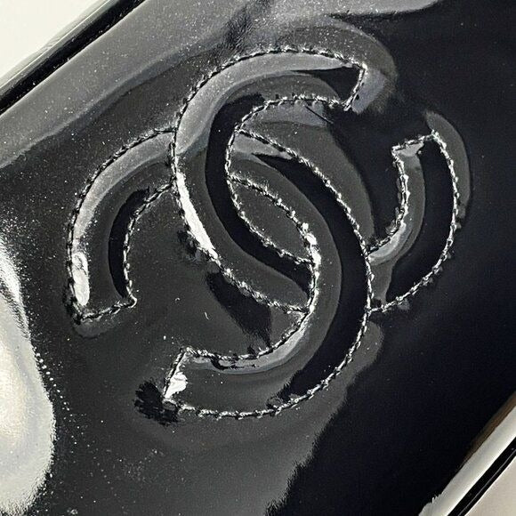 CHANEL CC Patent Leather Vanity Cosmetic Makeup Case Pouch Black Bag