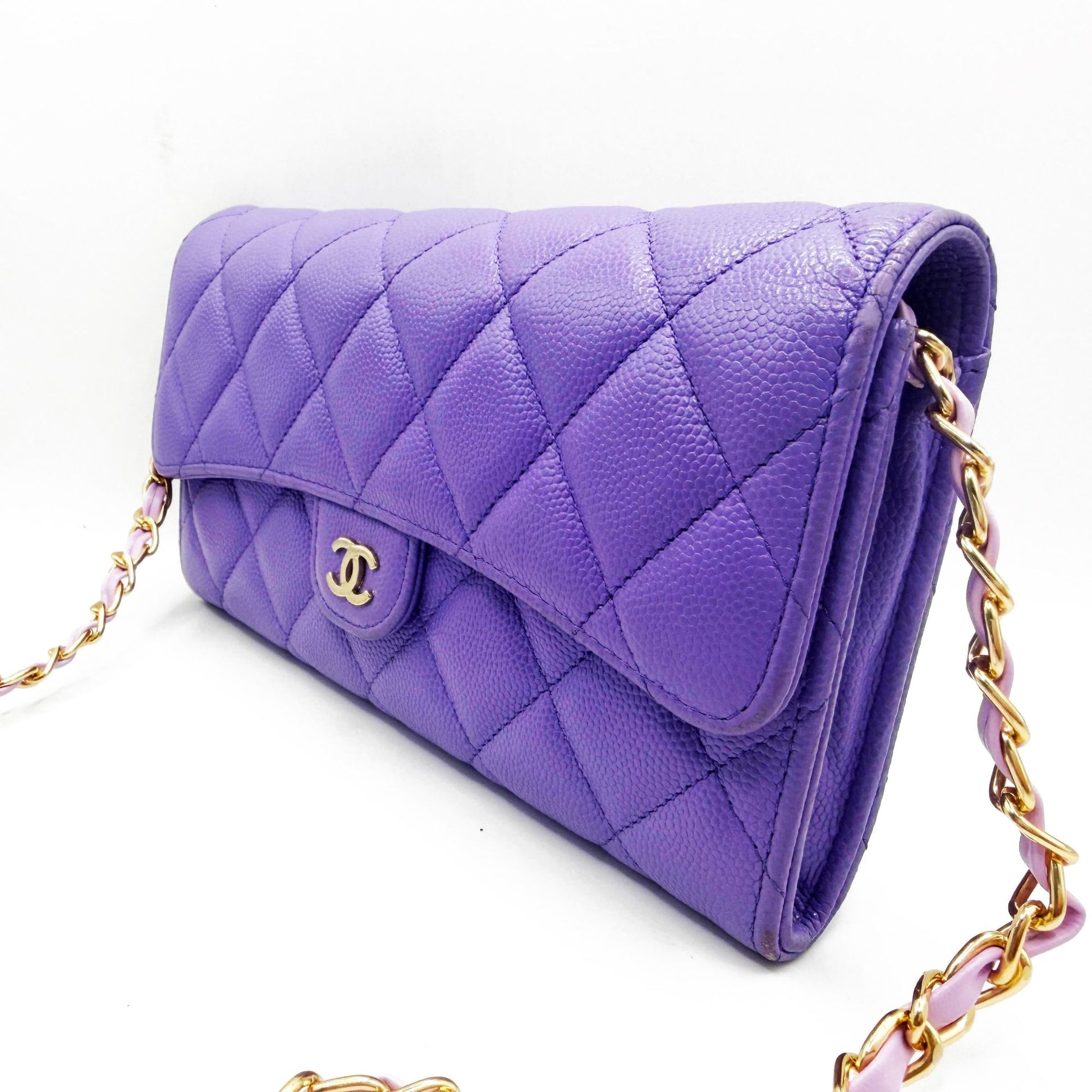 CHANEL CC Timeless Caviar Flap Wallet Chain Purse Purple Bag