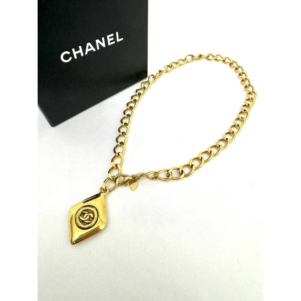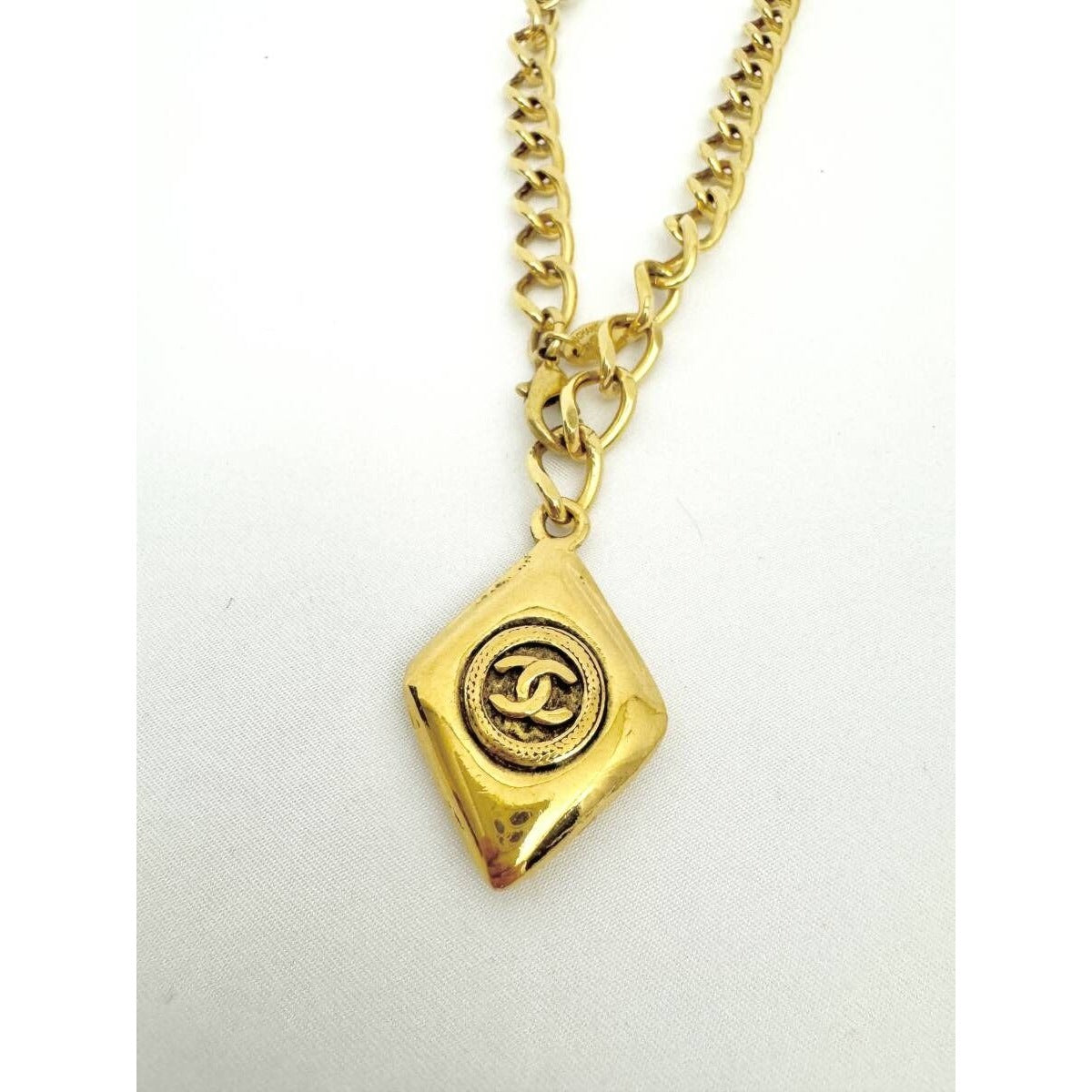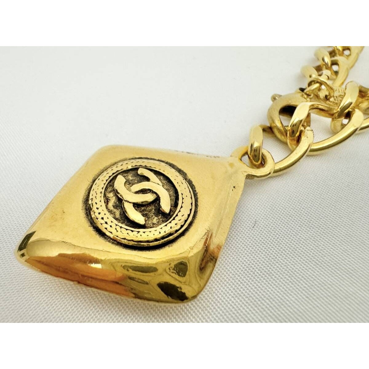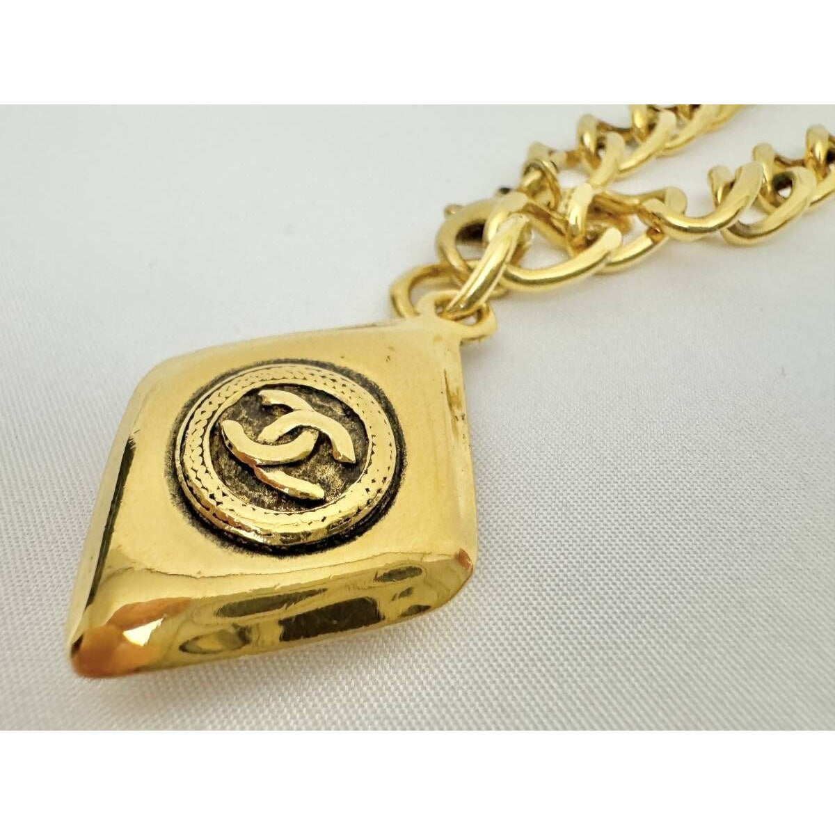 This is an authentic CHANEL Vintage Gold Necklace CC Logo, Paris Rhombus Lozenge Medallion Pendant. Vintage and rare item. From the 1993P collection.