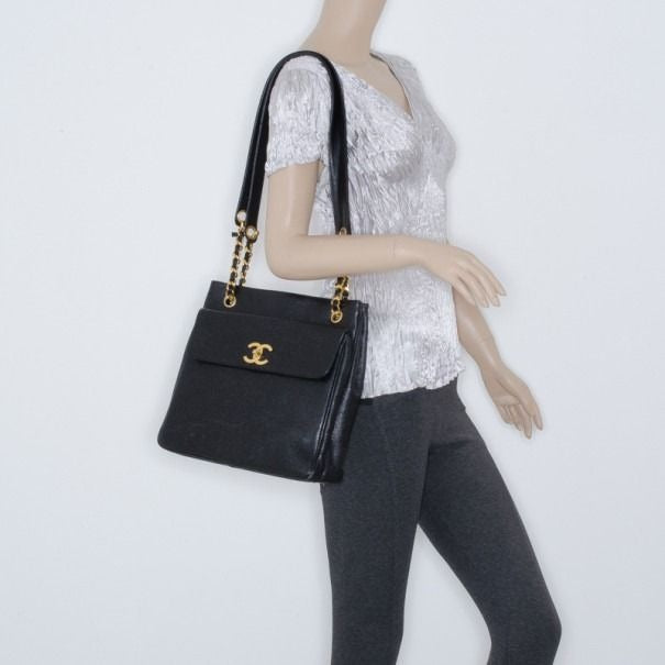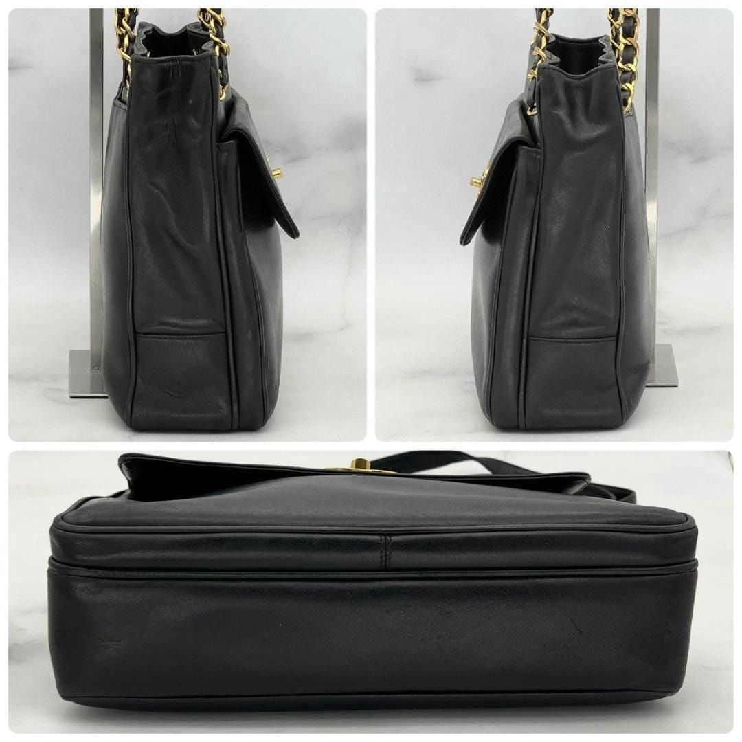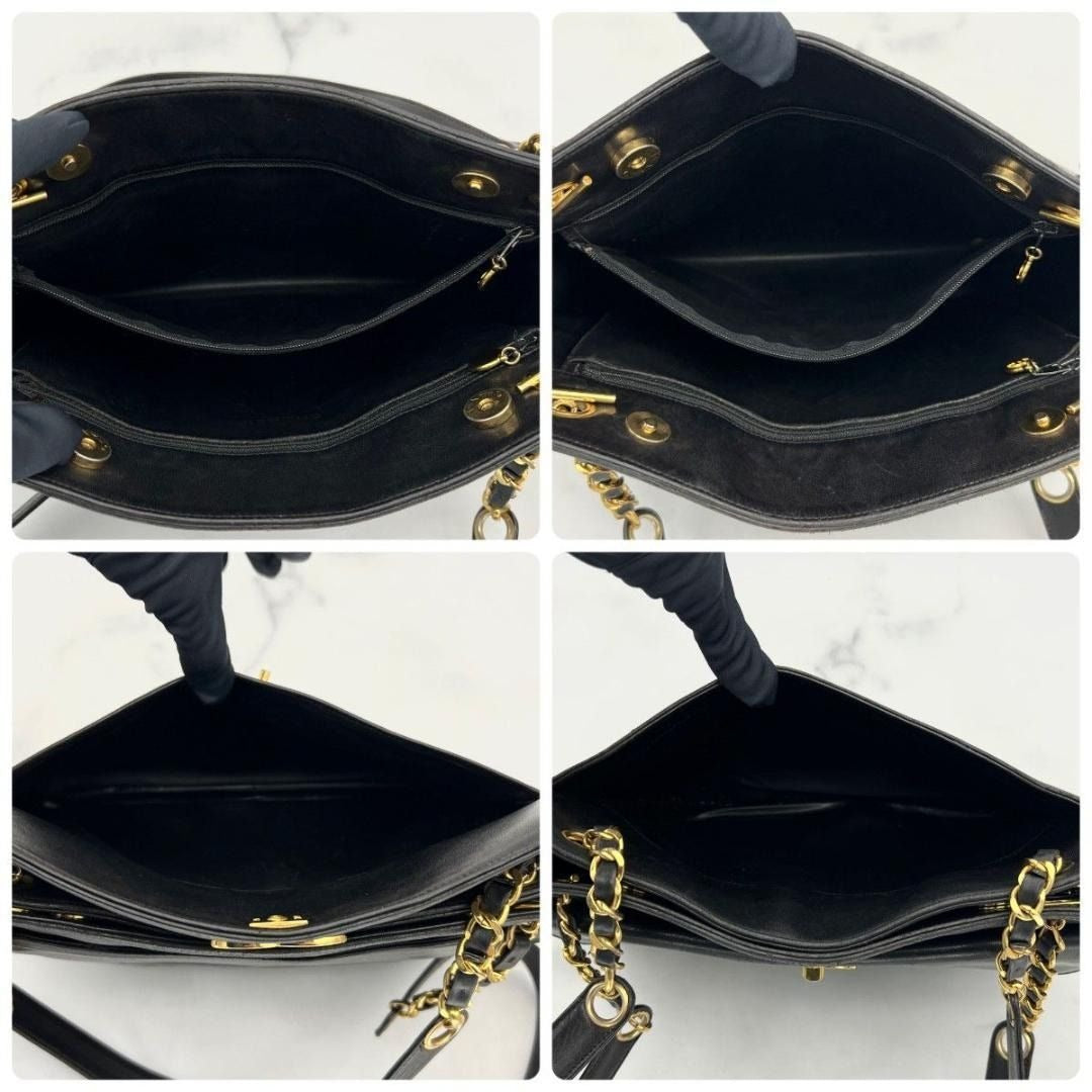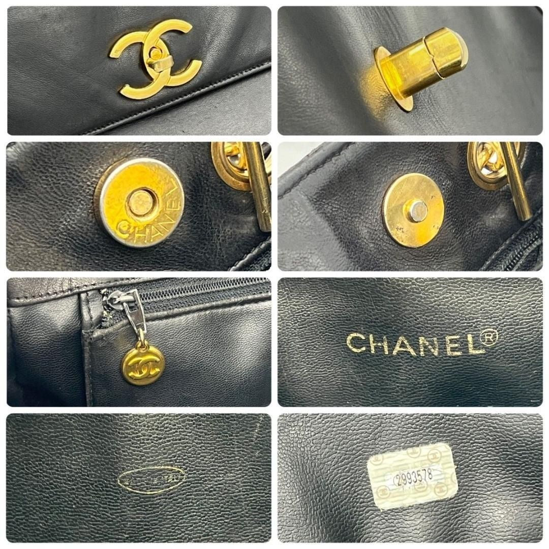 CHANEL CC Vintage Lambskin Black Gold Purse Bag Tote Chain Turnlock
