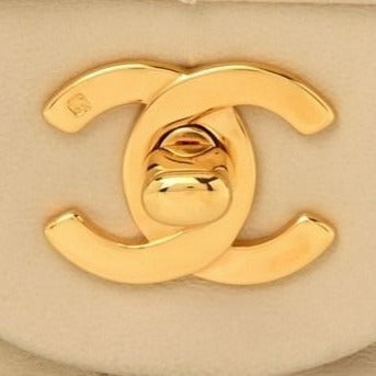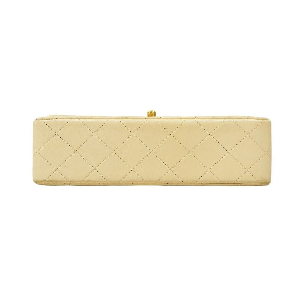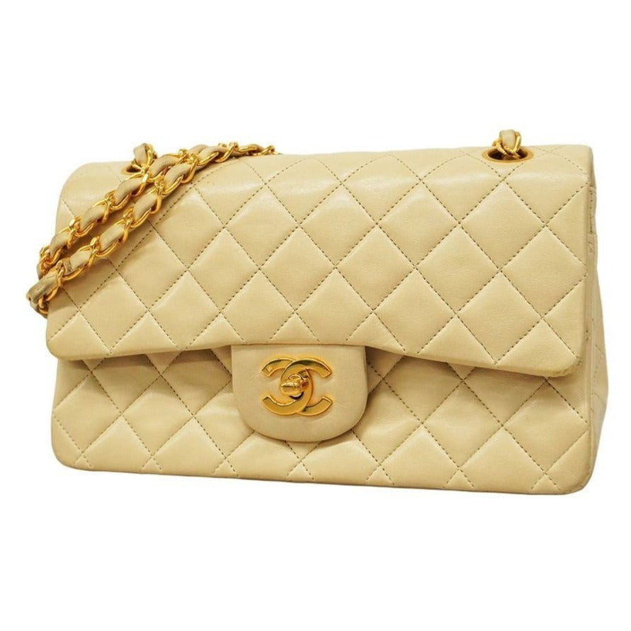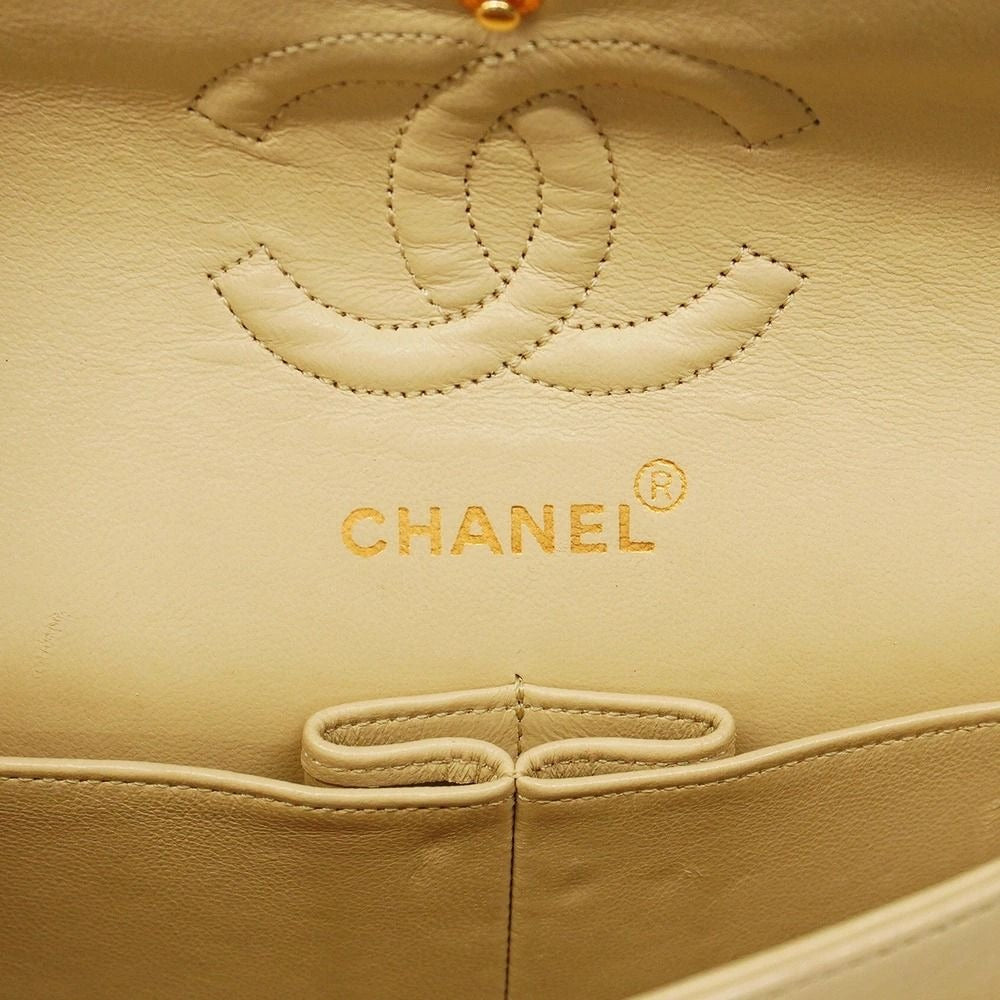 CHANEL Classic Double Flap Bag Beige Lambskin Chain Shoulder Purse