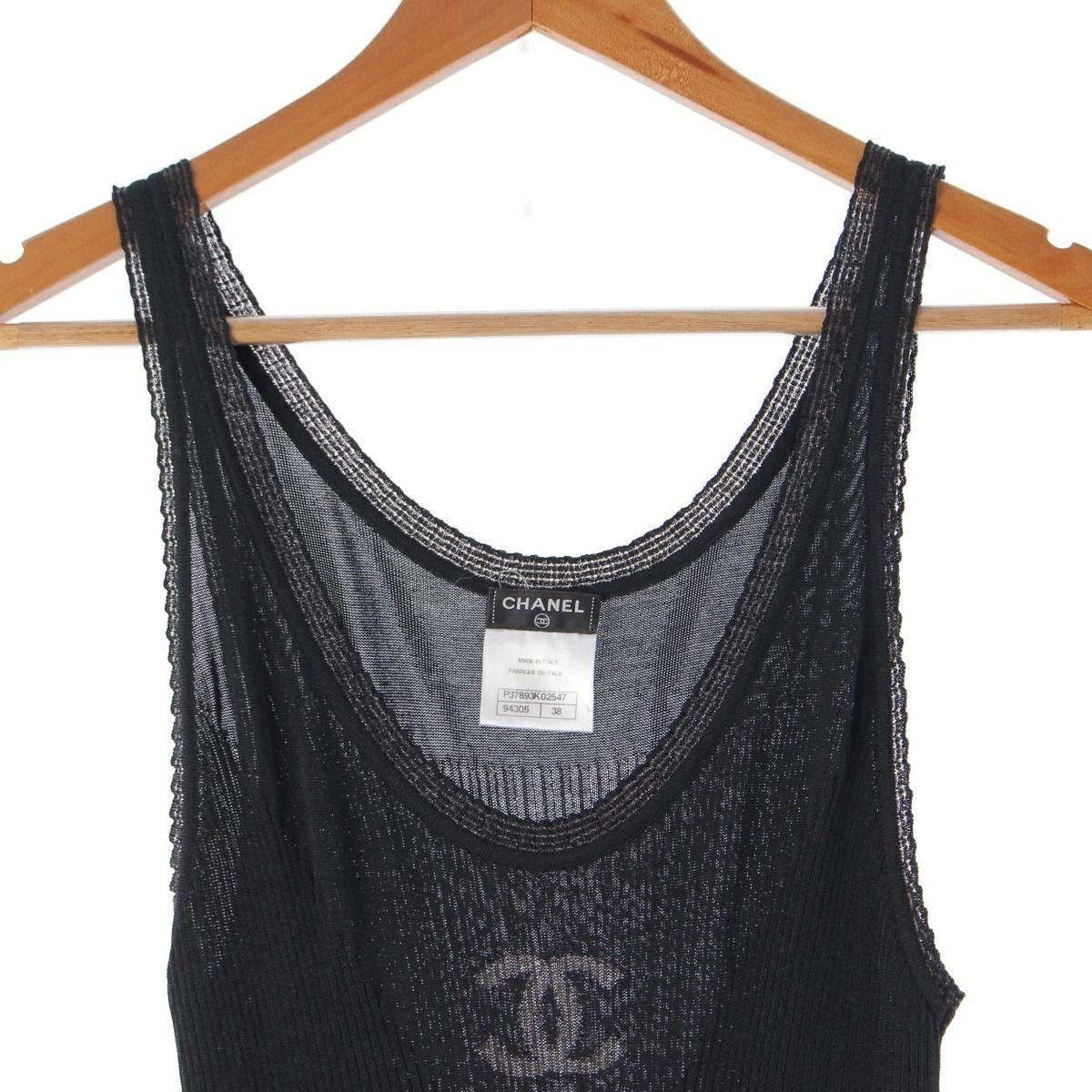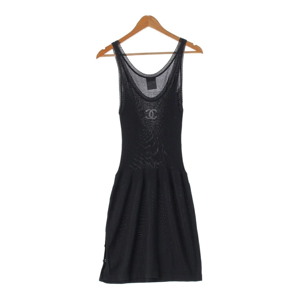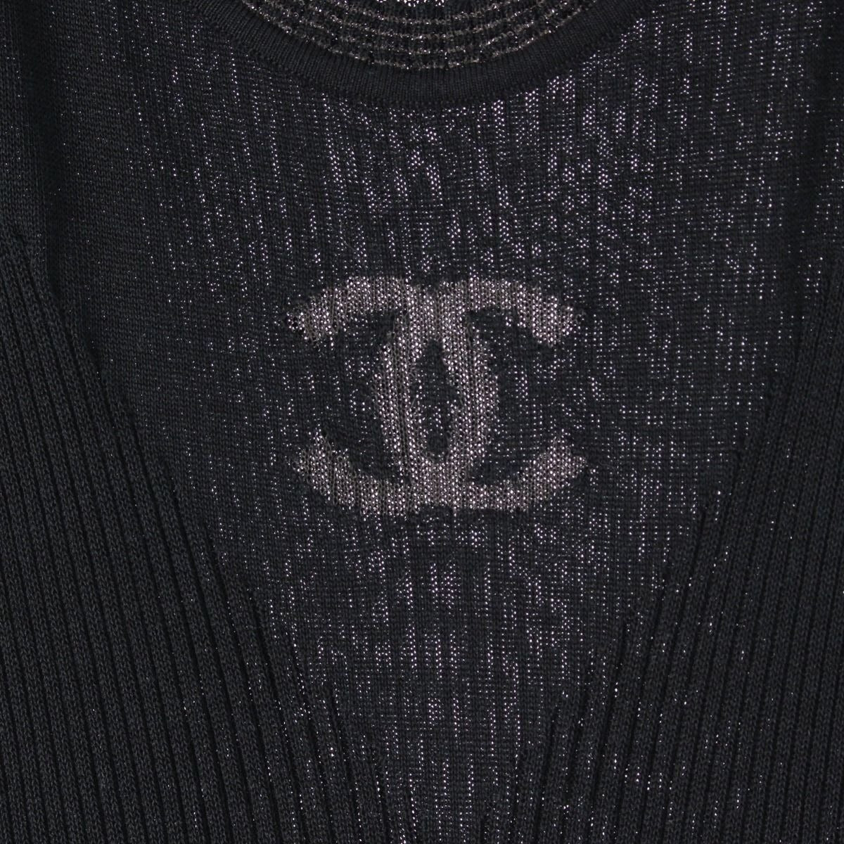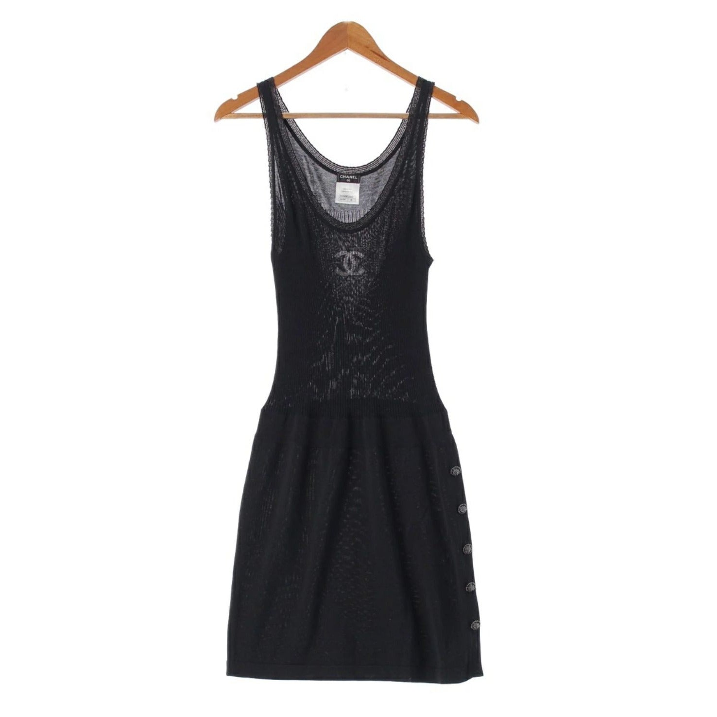 CHANEL Cotton Silk Coco Rib Knit Mini Dress Sleeveless Tank Top Black 38