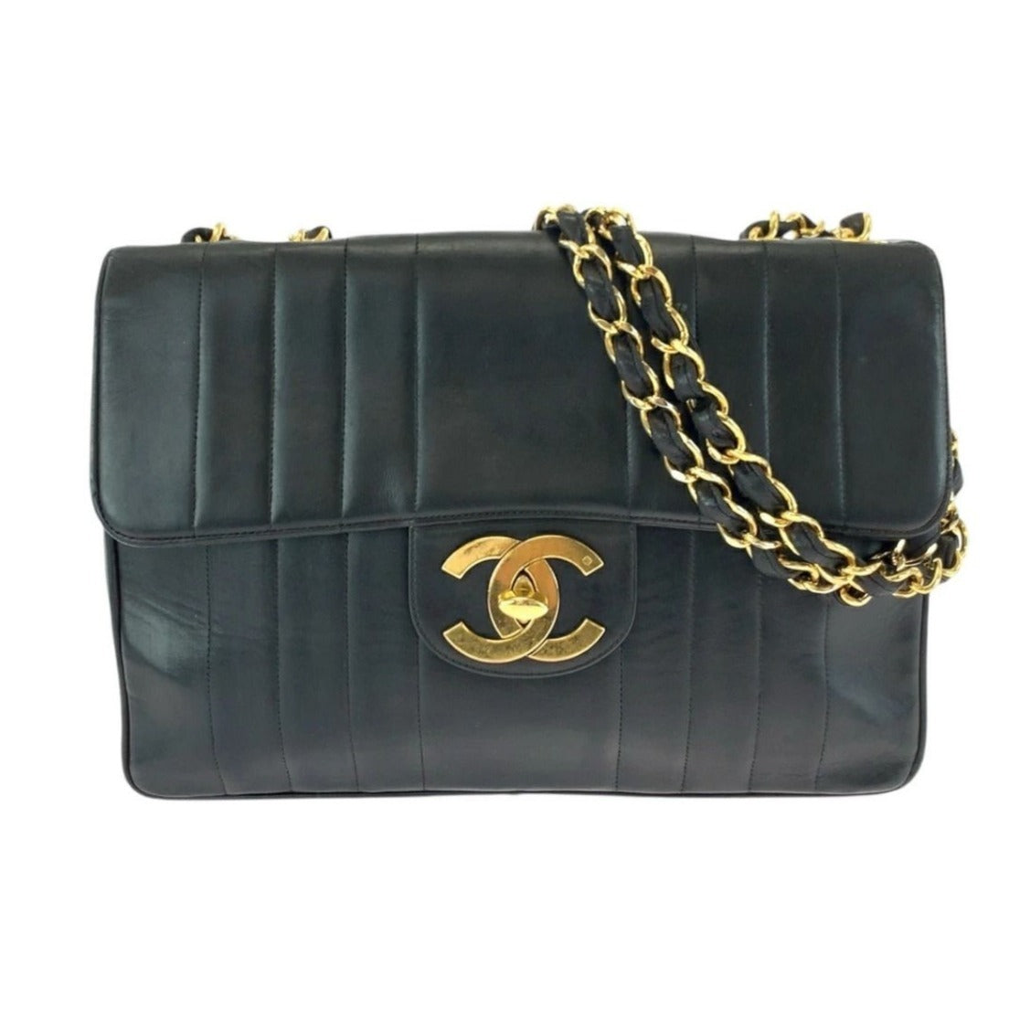 CHANEL Jumbo Flap Bag Lambskin Vertical Quilt Chain Shoulder Bag Black