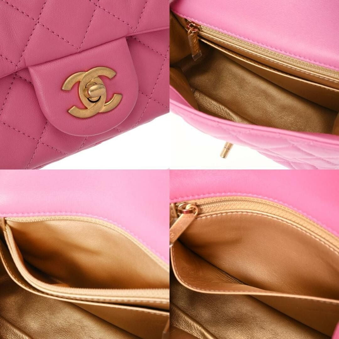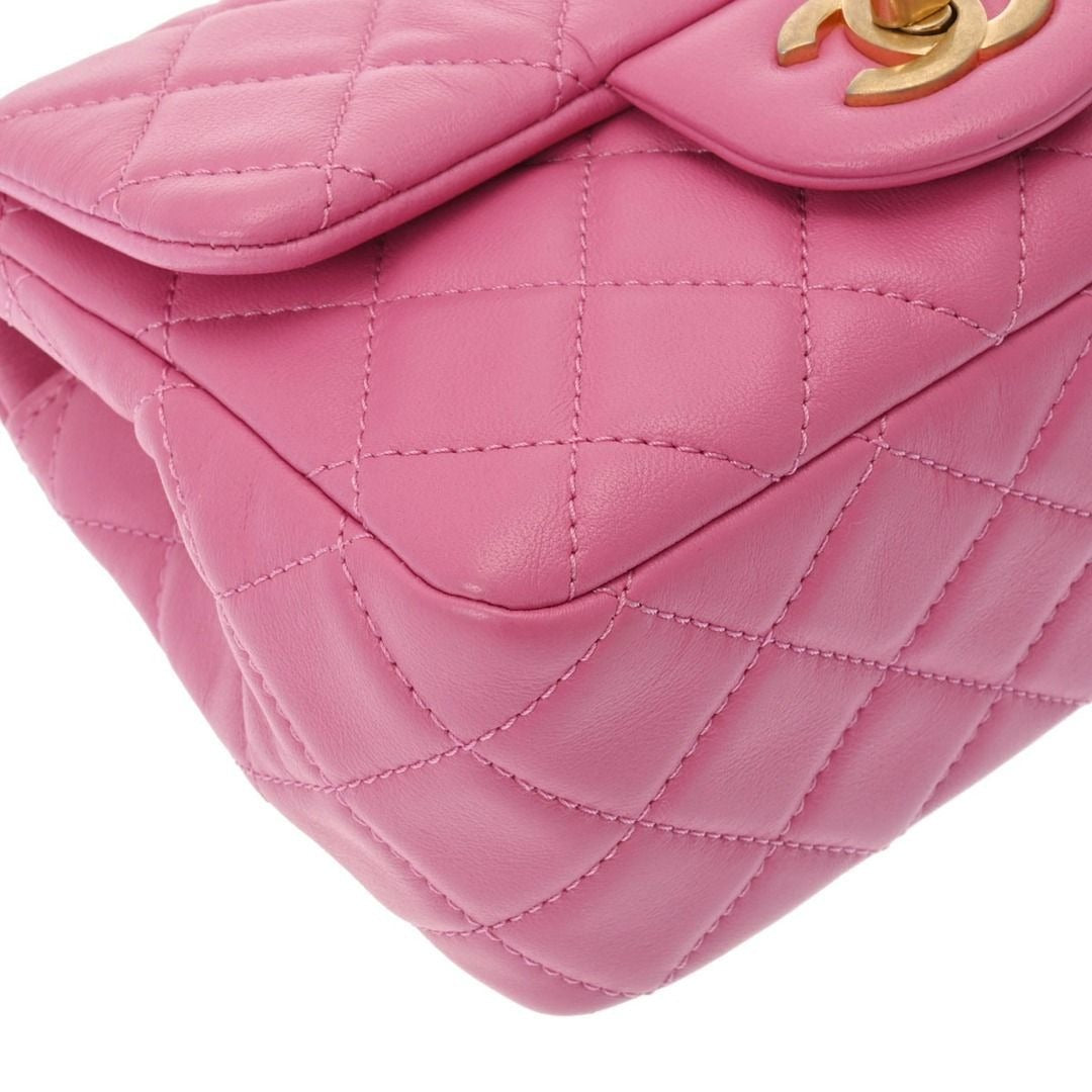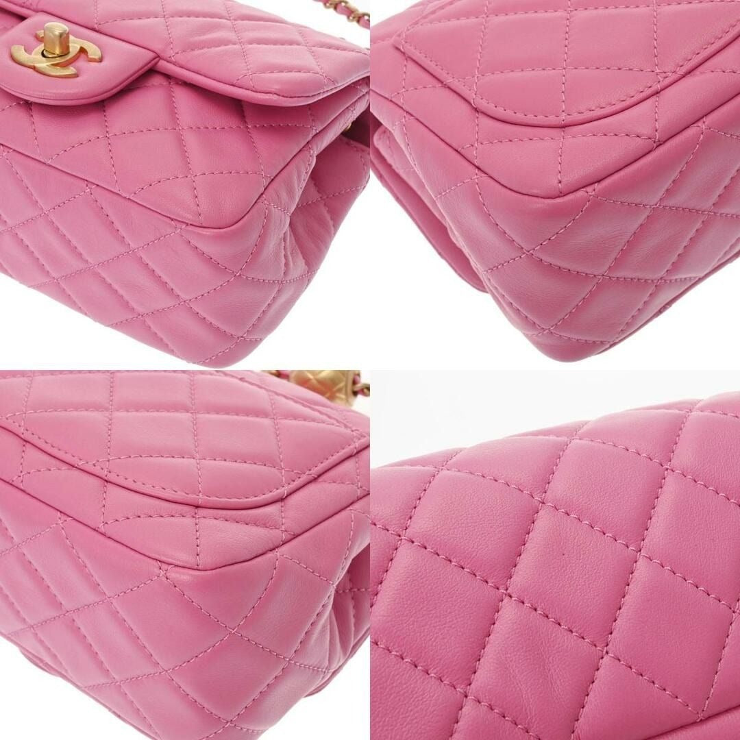 CHANEL Lambskin Quilted Mini Pearl Crush Flap Bag Chain Purse Pink