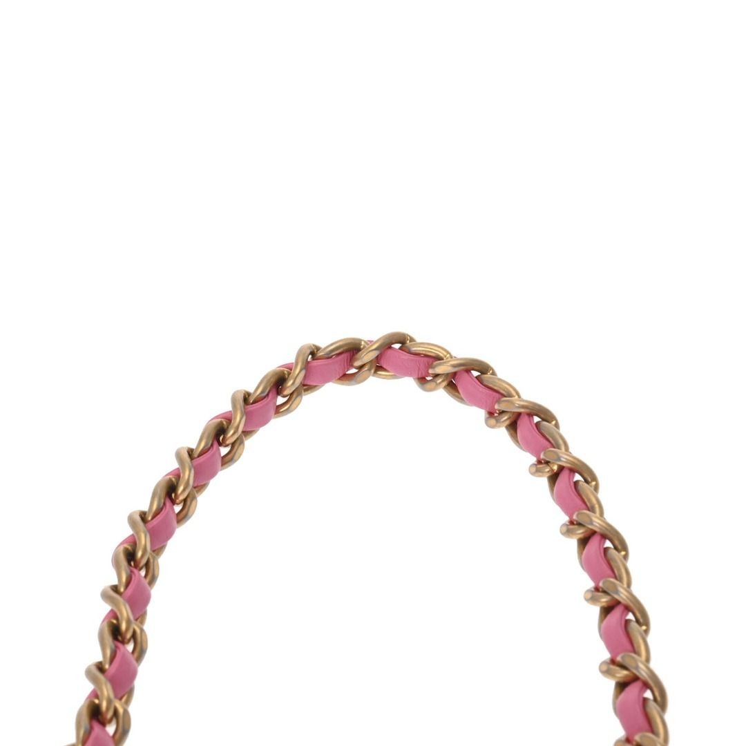 This is an authentic CHANEL Lambskin Quilted Mini Pearl Crush Flap in Pink. This chic crossbody flap bag is crafted of soft diamond-quilted lambskin leather in pink. The bag features an aged gold chain-link shoulder strap threaded with leather that has a round gold cinch adjustment. The crossover flap opens with a Chanel CC turn-lock to a metallic gold leather interior with zipper and patch pockets.