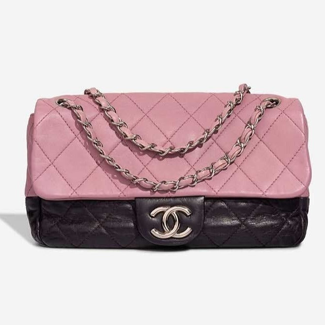 CHANEL Quilted Single Flap Bag Large Lambskin Quilted Bi-Color Purple