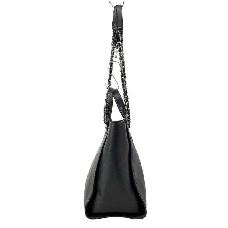 Chanel Tote Bag Deauville Line MM Black Chain Shoulder Silver Hardware 2way