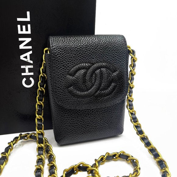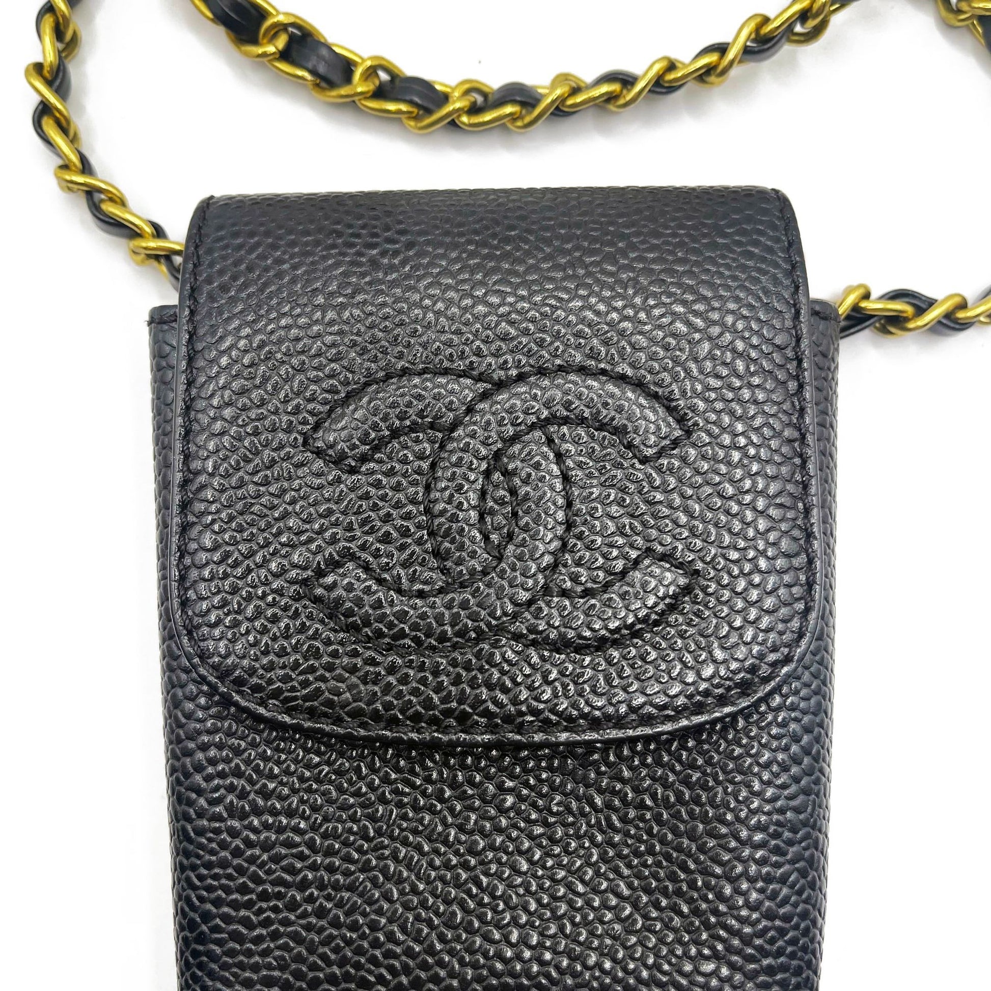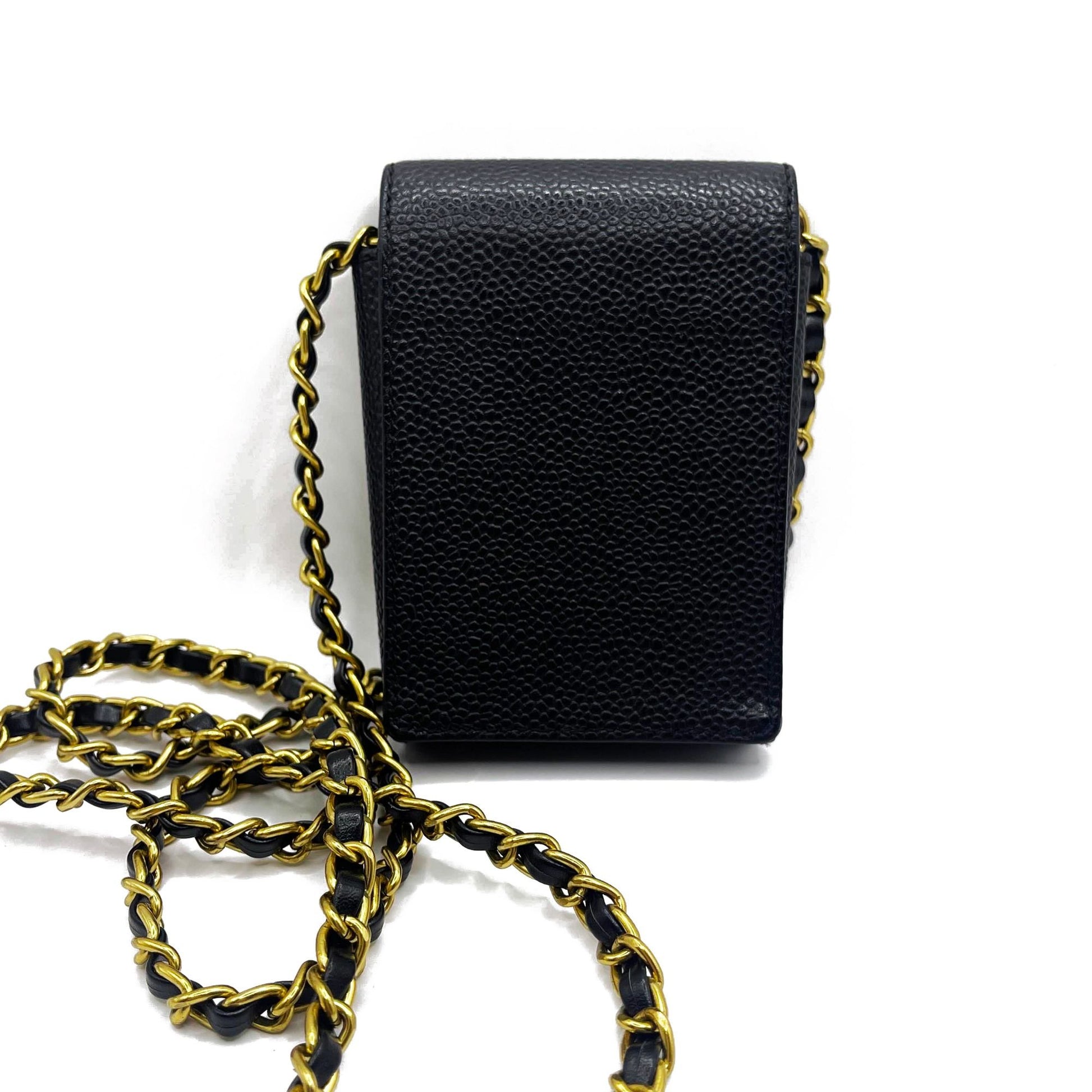 CHANEL Vintage Mini Flap Caviar Leather Pouch Cigarette Case Crossbody