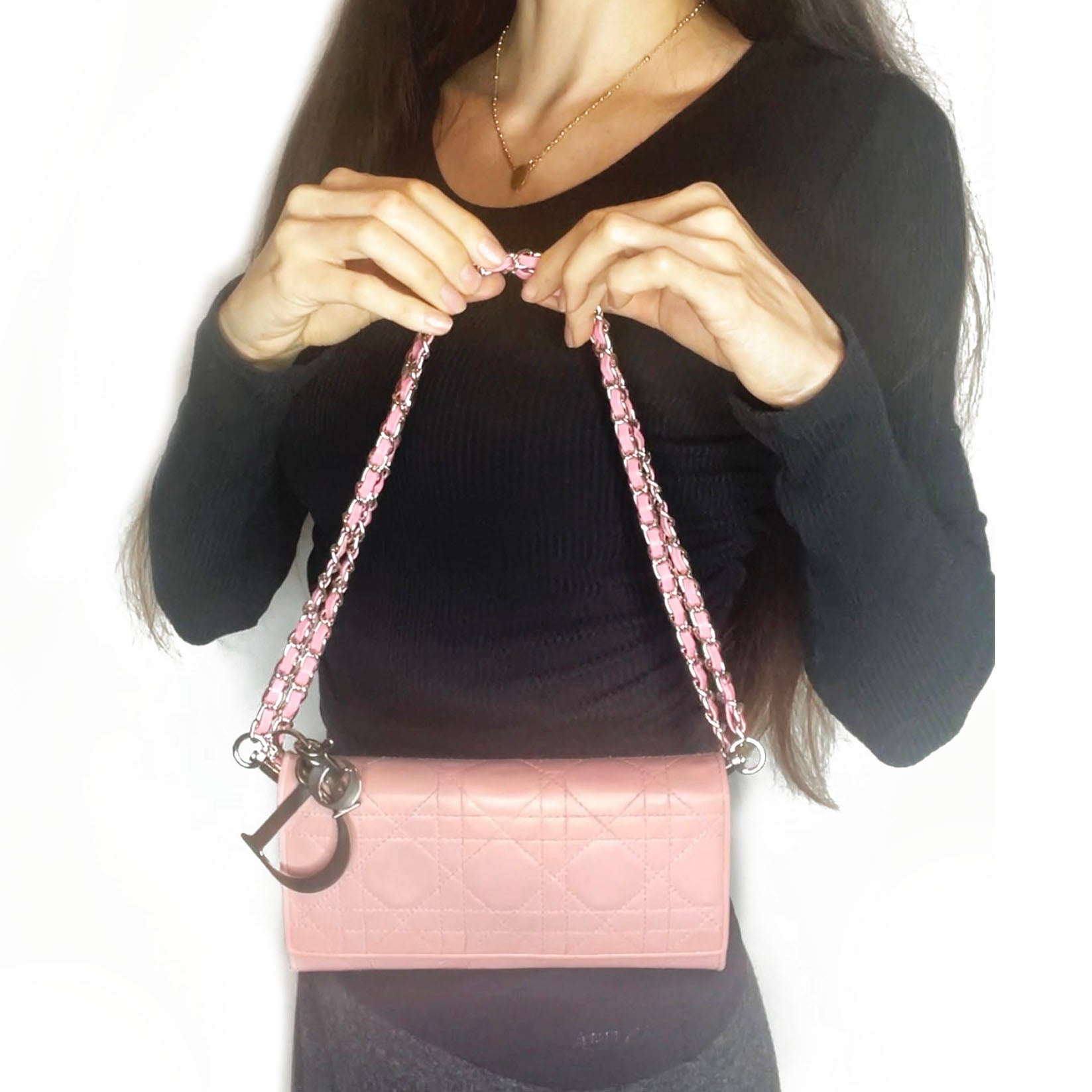DIOR Lady Dior Long Flap Wallet on Chain Pink Lotus Cannage Lambskin Leather