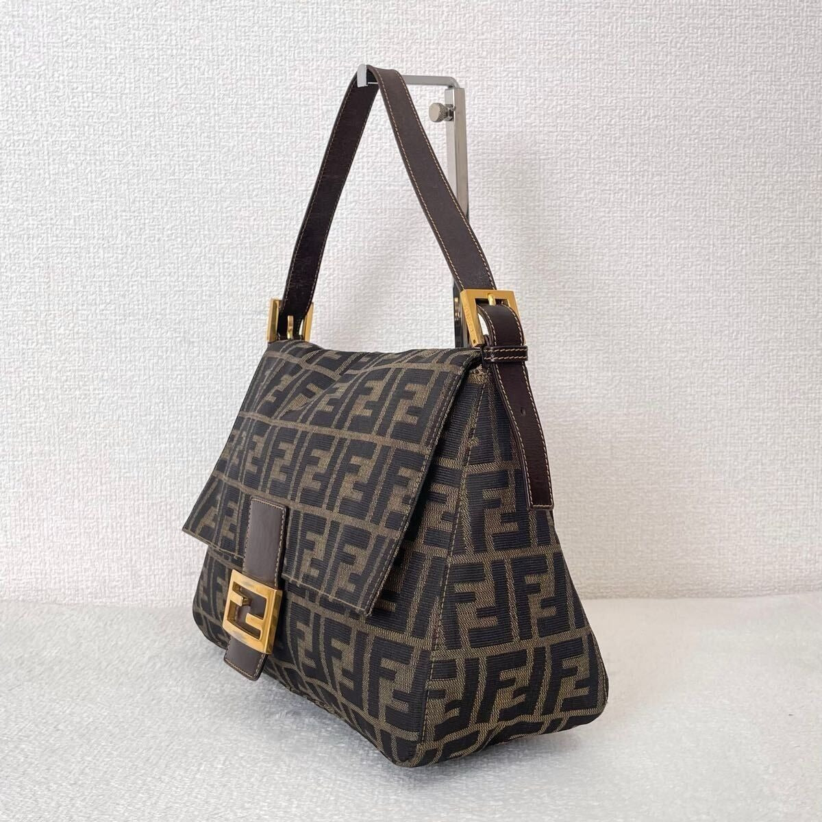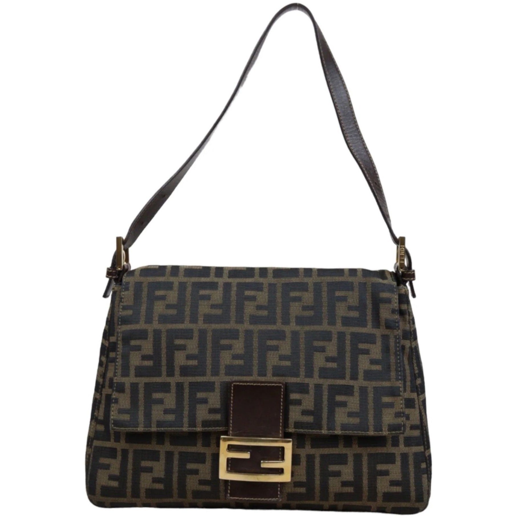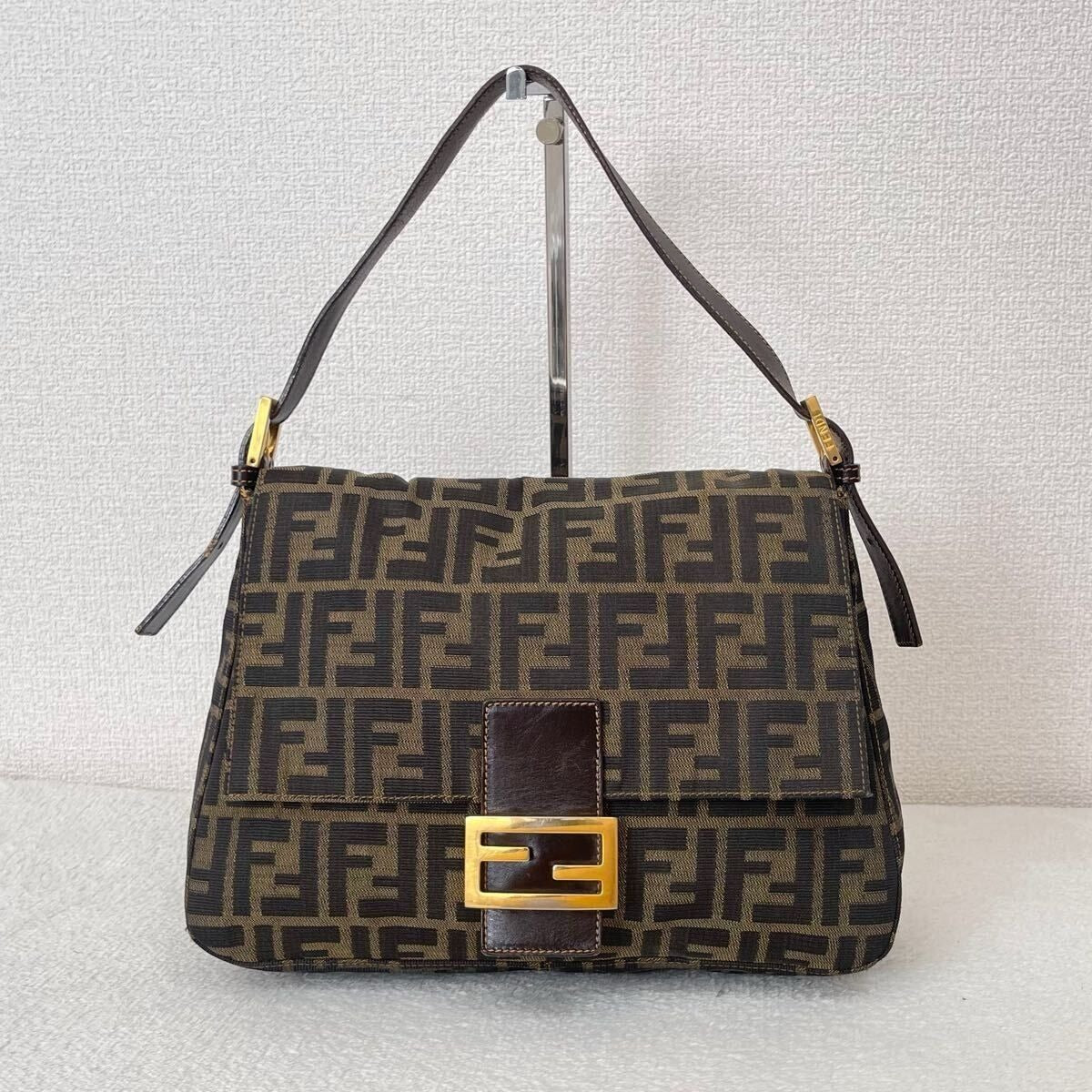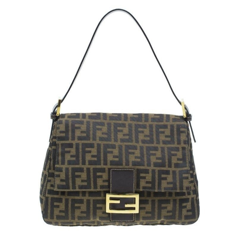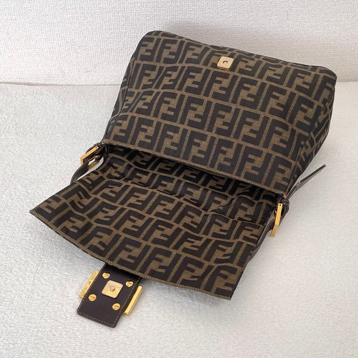 FENDI Mamma Zucca Bucket Baguette Tan Tobacco Flap Bag Purse Shoulder GHW