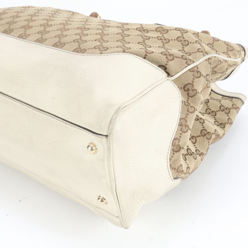Gucci GG Canvas Bamboo Handbag 282317 Leather Tote Genuine Leather Brown