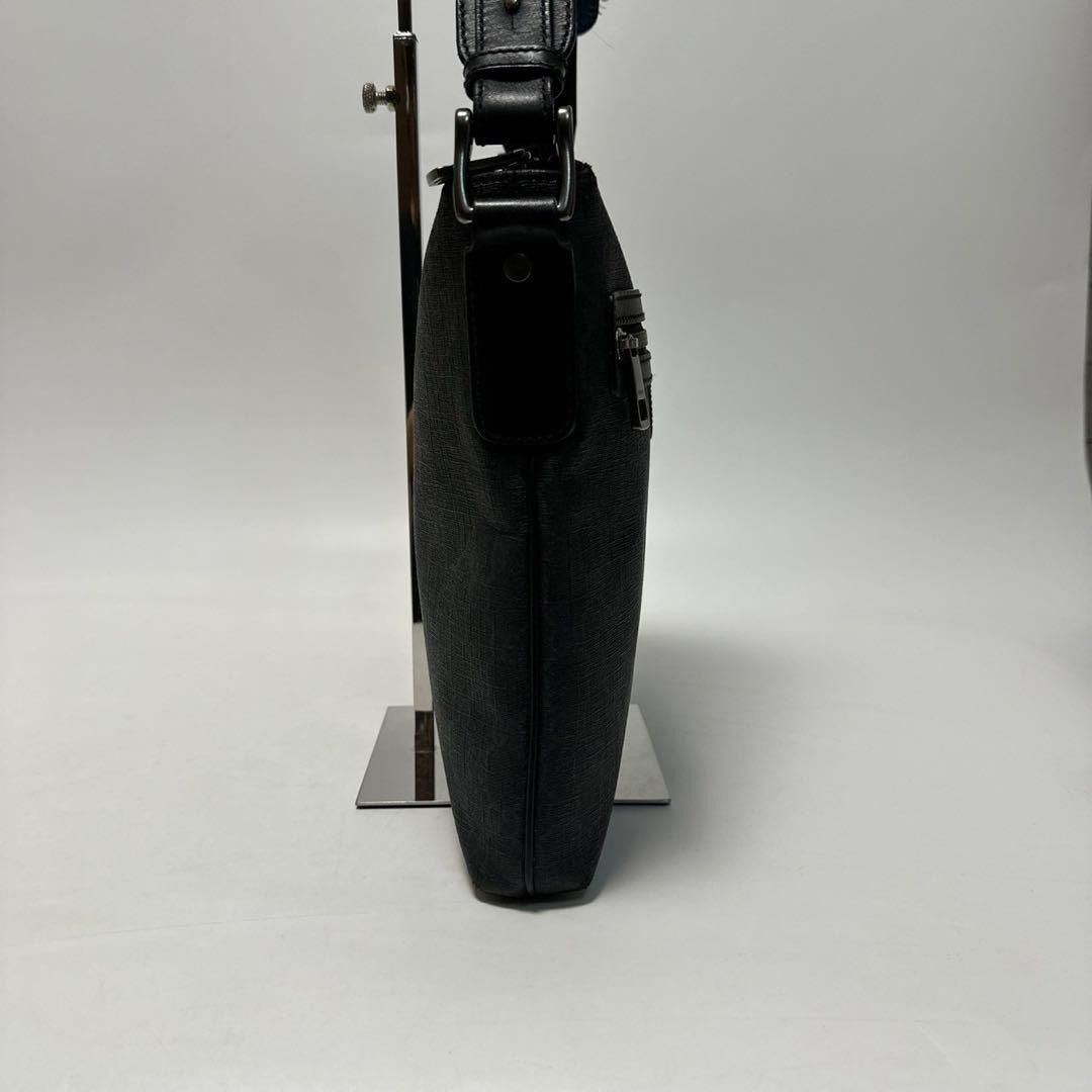 This is an authentic GUCCI GG Supreme Monogram Crossbody Messenger Bag in Black and Grey. This chic messenger bag is crafted of black Gucci GG monogram coated canvas. The bag features a black canvas adjustable body strap, front zipper pocket, and aged silver hardware. The top zipper opens to a black nylon interior with zipper and patch pockets.
