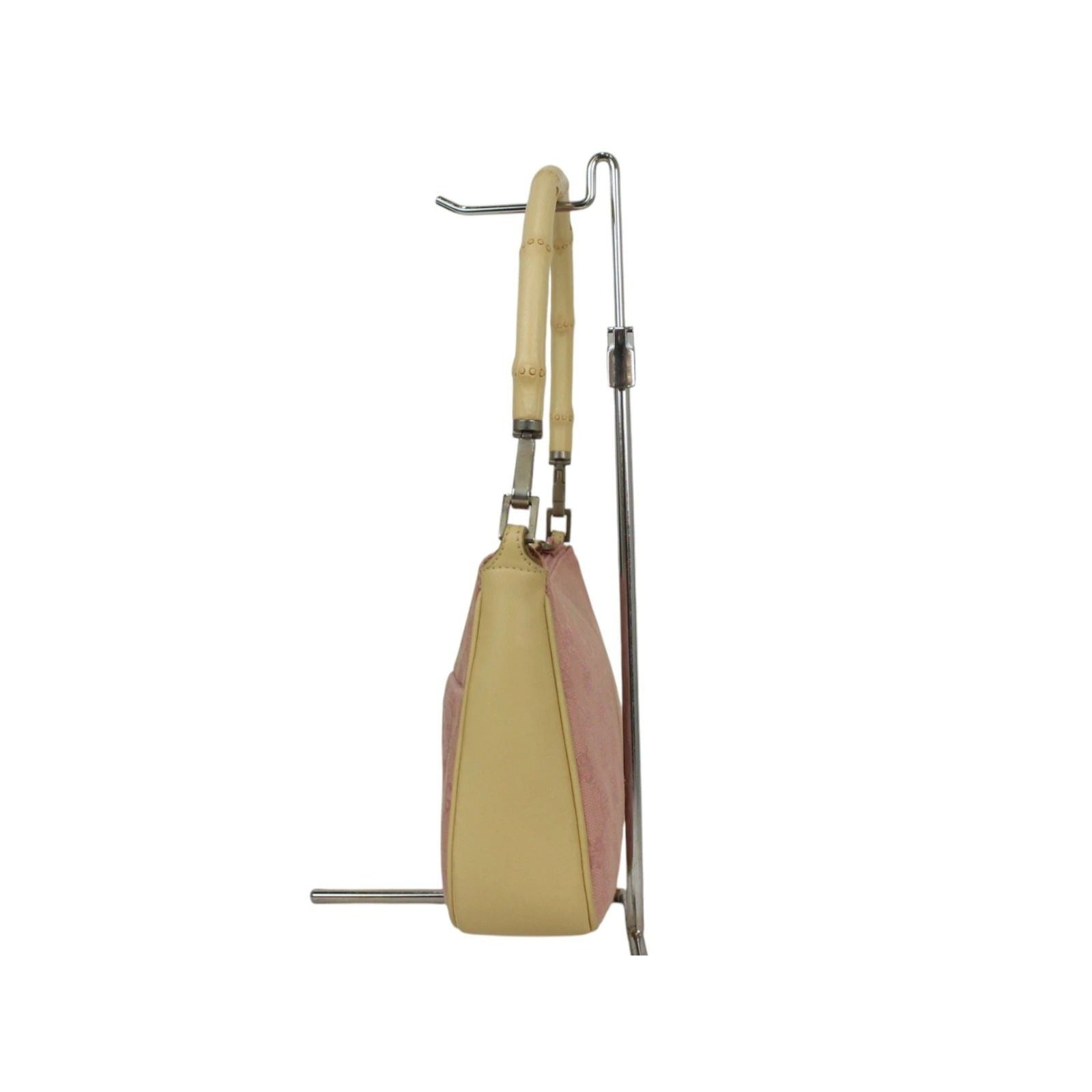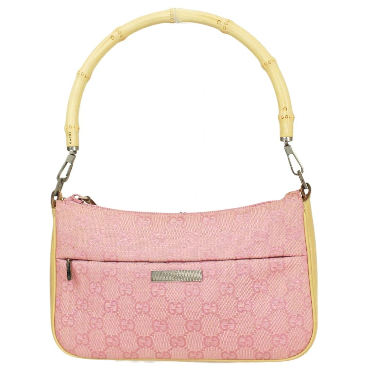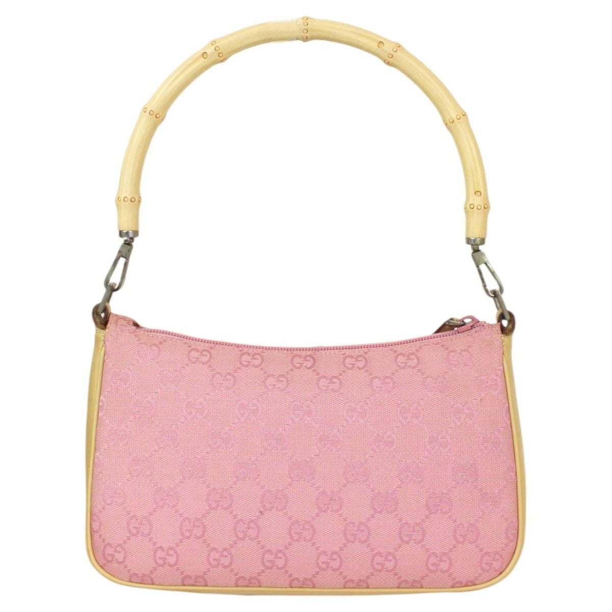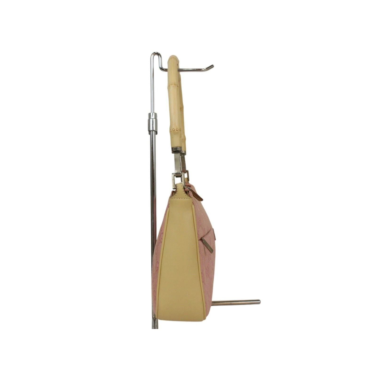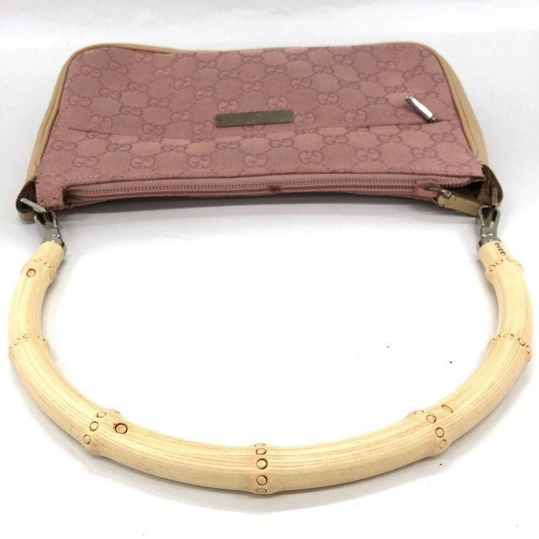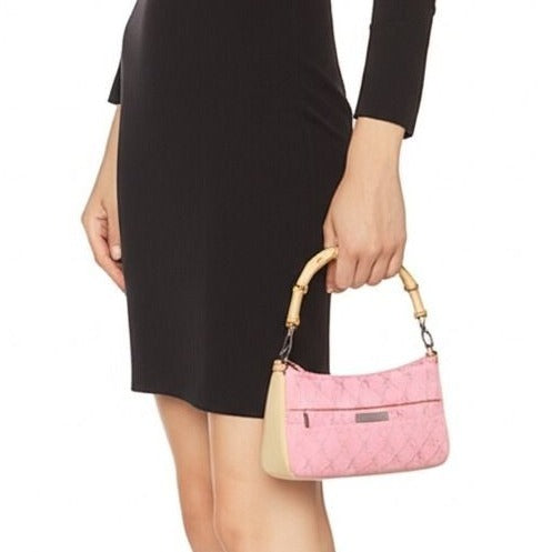 Gucci GG Sherry Bamboo Pochette Baguette Shoulder Bag Purse Tote Pink