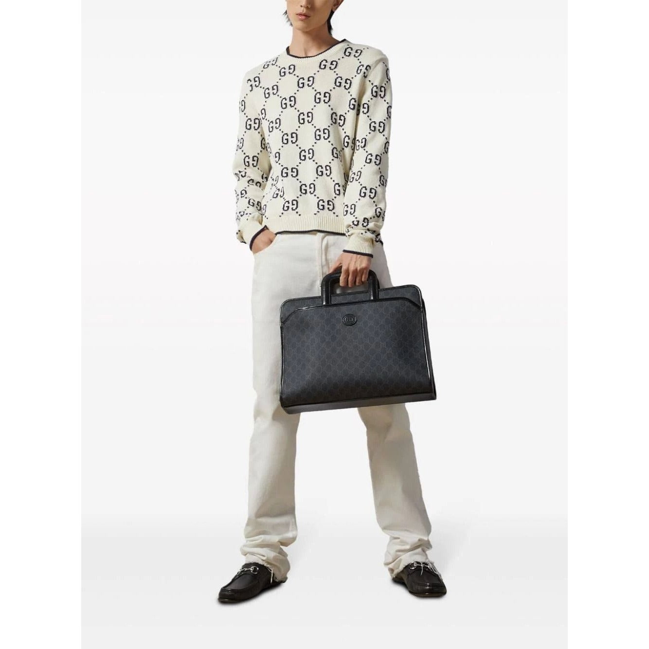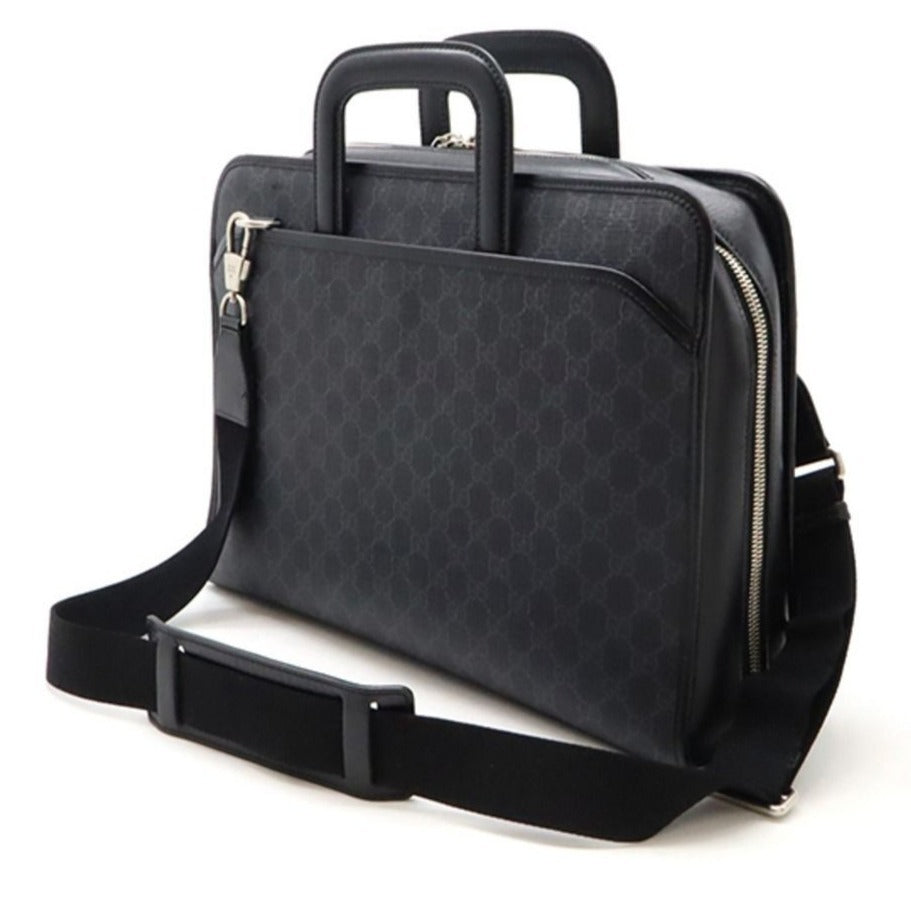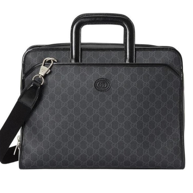 Gucci GG Supreme Briefcase Monogram Medium Messenger Bag Black Mens