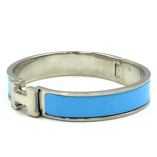 Hermes Click Metal Silver Blue Bangle Bracelet