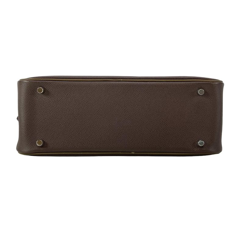 Hermes Plume 32 Chocolat And Khaki Silver Hardware Bi-color Handbag