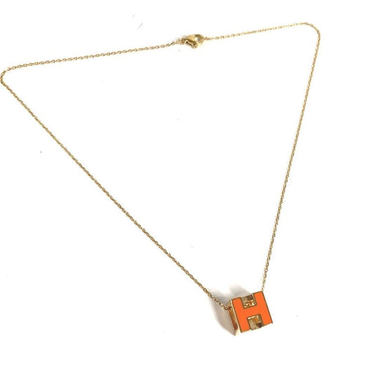 Hermes Necklace Cage Ash Cube Metal Orange