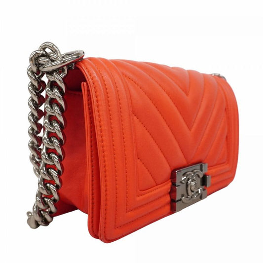 Chanel Shoulder Bag Stitch Lambskin Red Silver