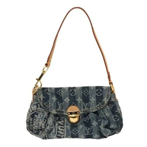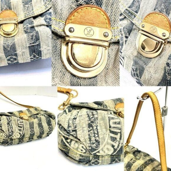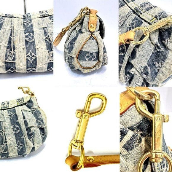 Louis Vuitton Denim Mini Pleaty Vintage Pouch Pochette Bag Monogram